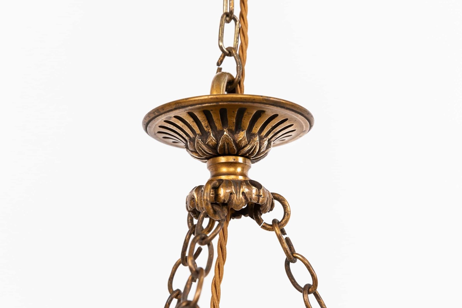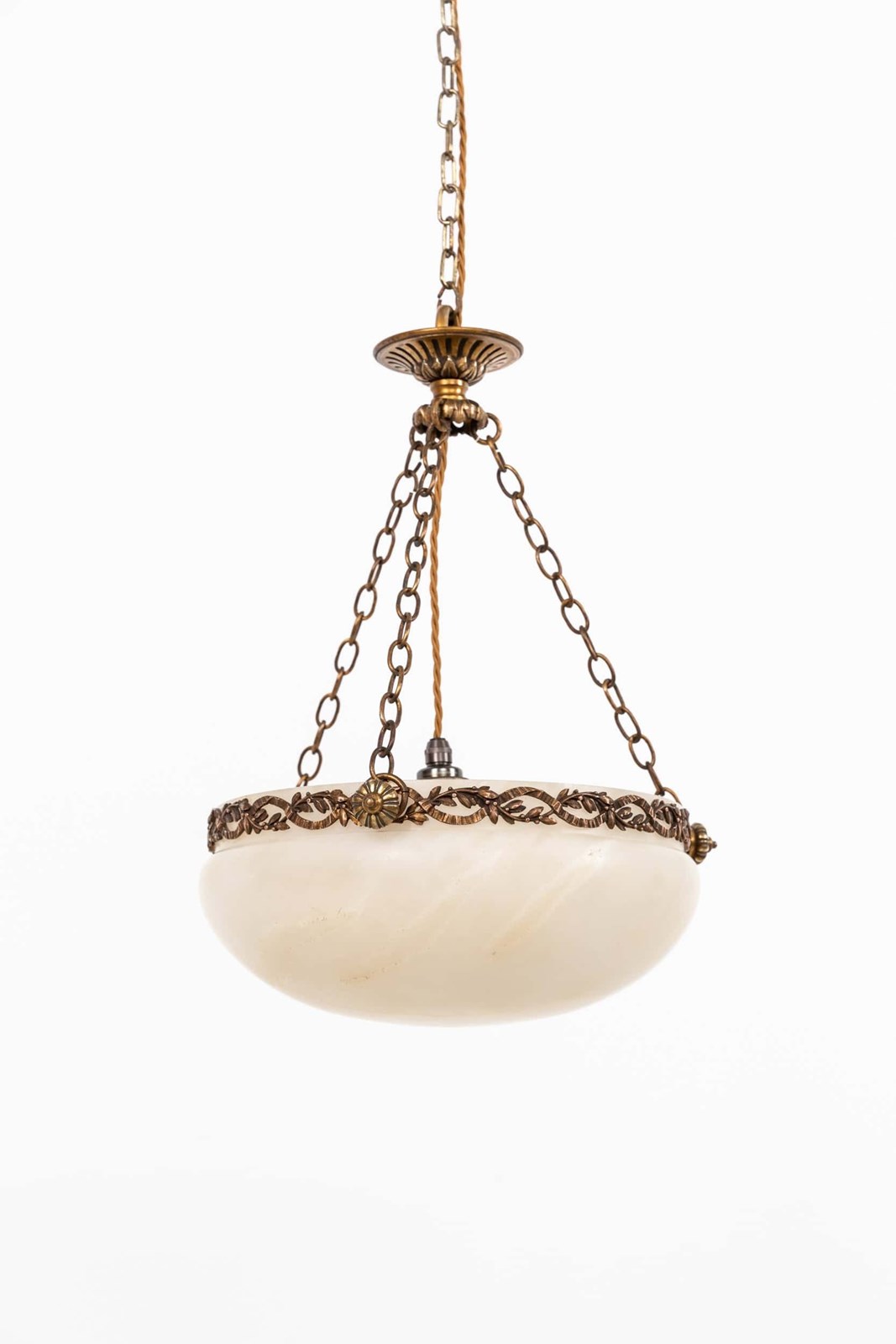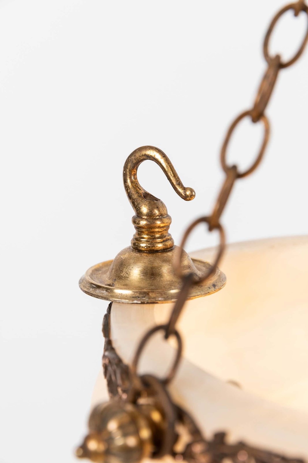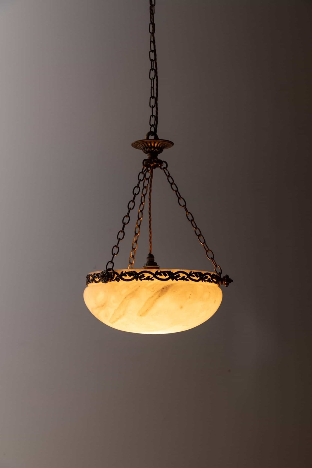 A neatly proportioned French alabaster plafonnier pendant light, c.1920.