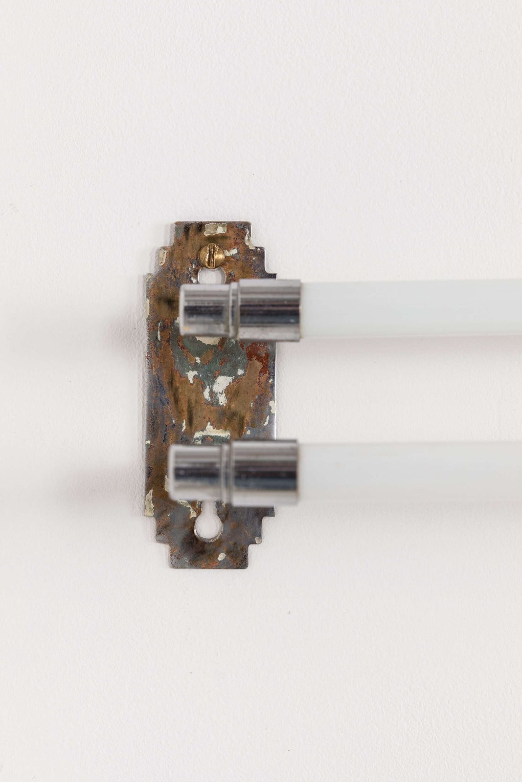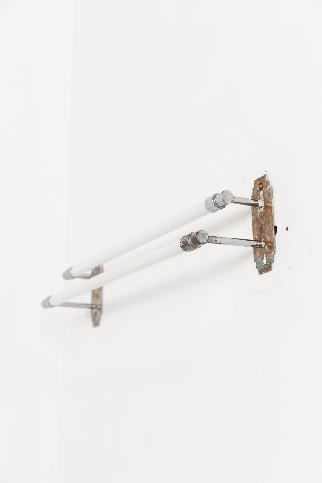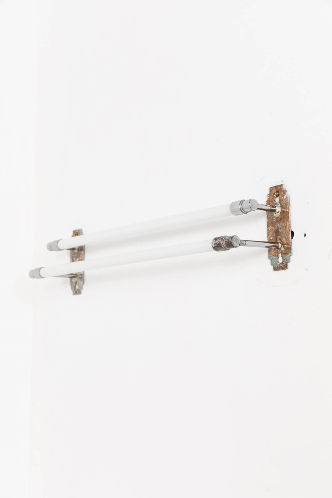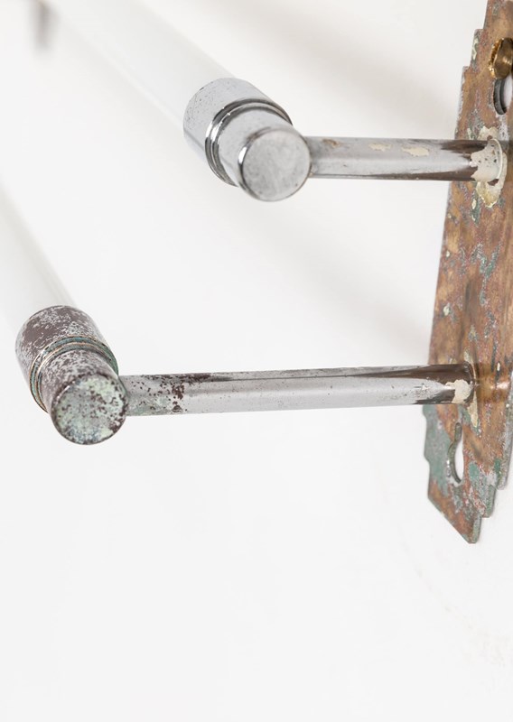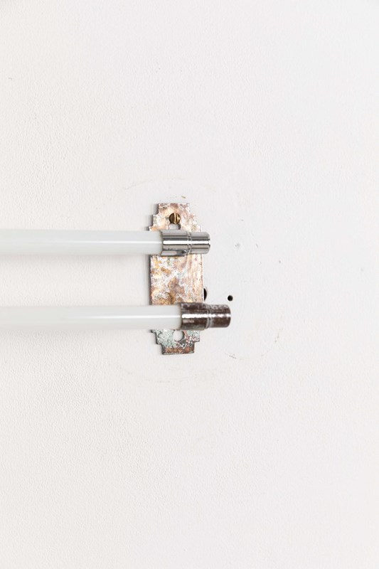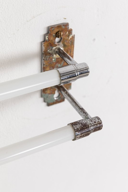 Lifted straight out of the Art Deco era, chrome plated brass wall mounts, connected by two white opaline glass tubes for draping towels over. Both practical and stylish, it makes a refined addition to any bathroom or kitchen.