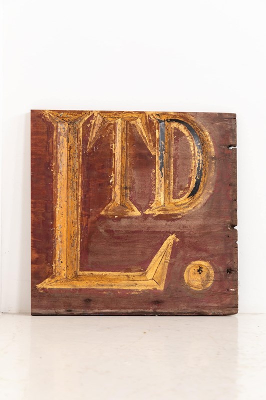 A hand carved and gilt 'LTD' shop sign. c.1900