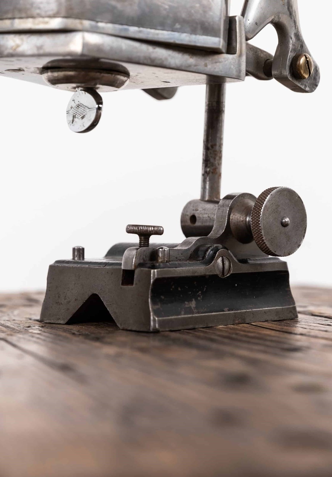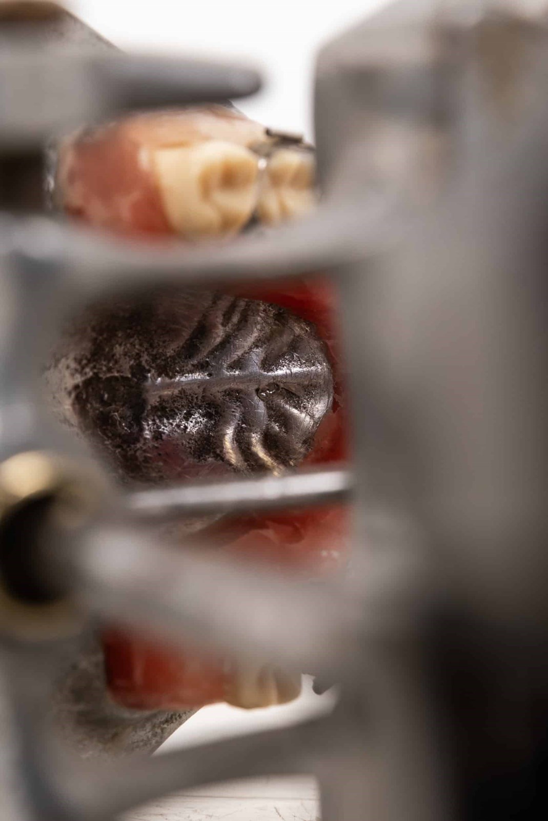 Engineered to a very high quality, designed for orthodontists to practise procedures with precision, it now possesses an undeniably macabre, almost sinister presence. The model is mounted on a period engineer’s scribe tool, allowing it to be positioned and displayed with the jaw either open or closed. A striking and unusual object with real visual impact, perfect for those drawn to the curious. A great conversation starter.