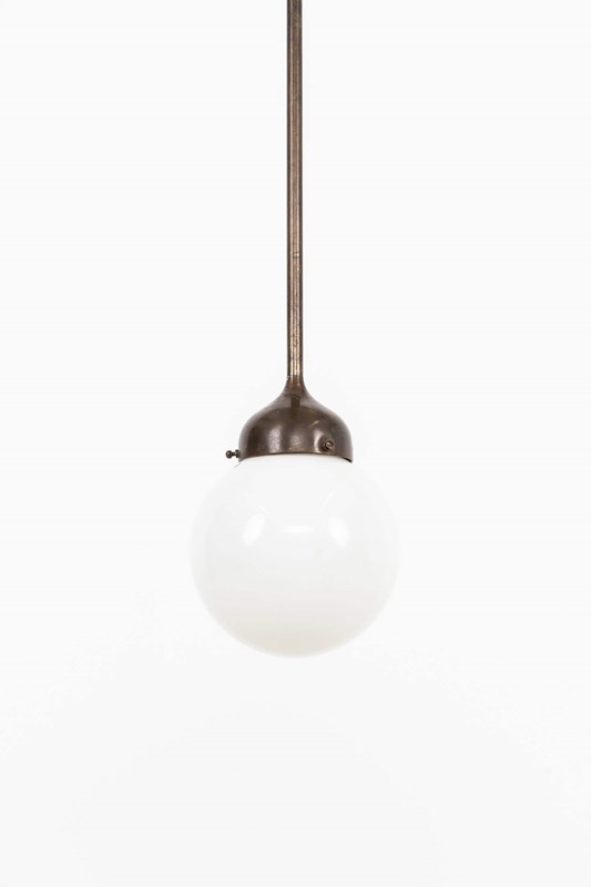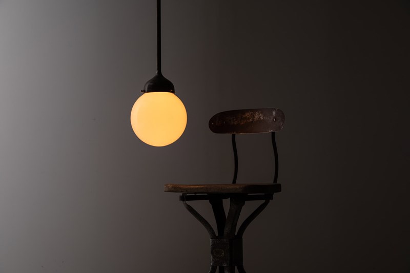 A beautifully crafted globe-shaped opaline glass pendant light, c.1930.