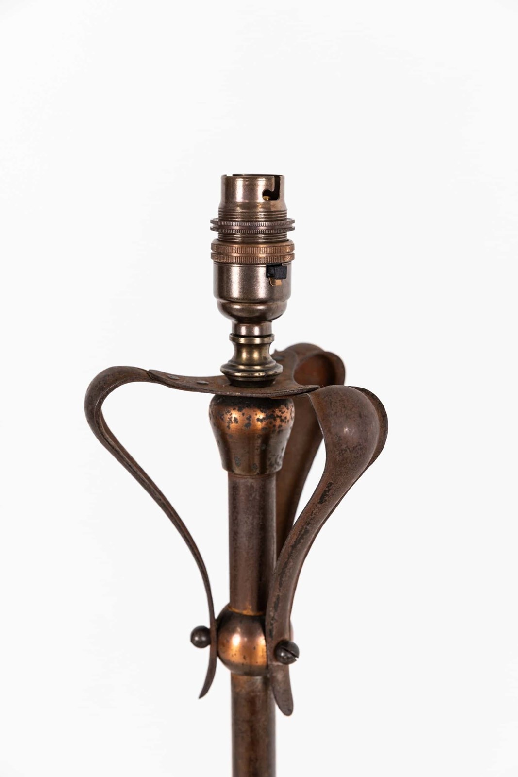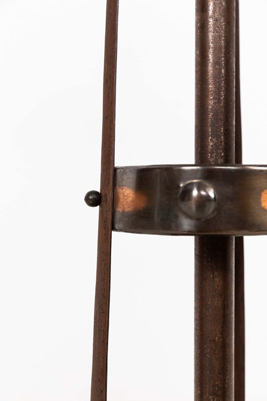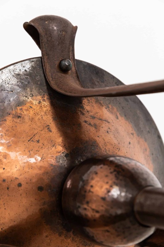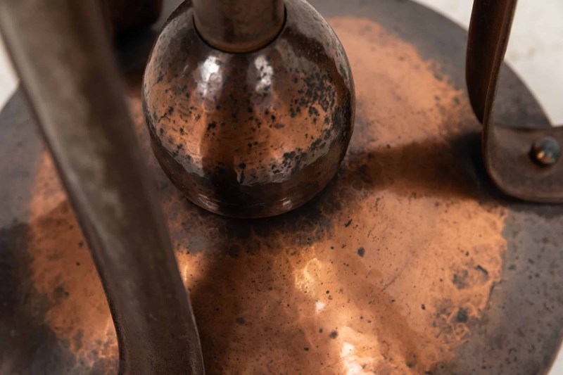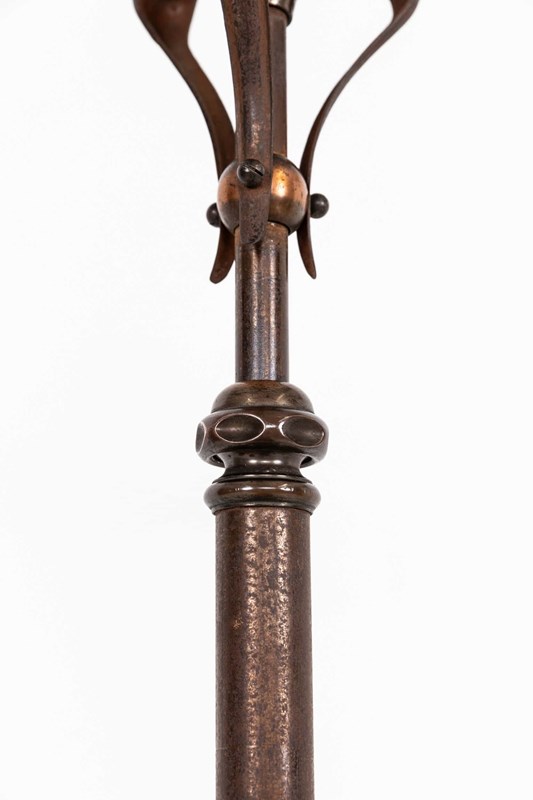 Constructed by hand from a mixture of copper and iron in the typical Arts & Crafts style, both of which has mellowed to a wonderful patina. The height can be extended.
