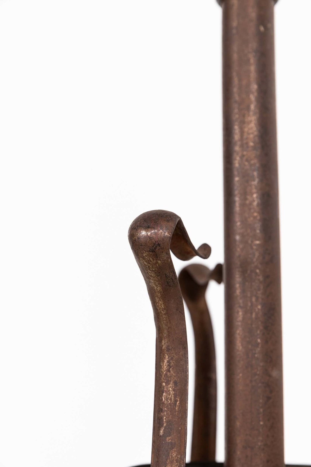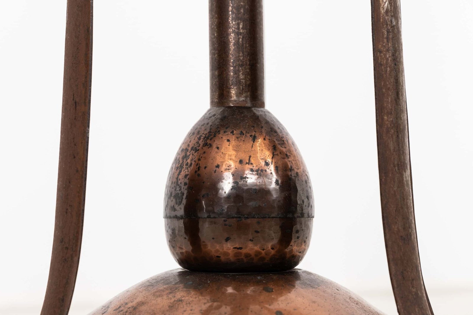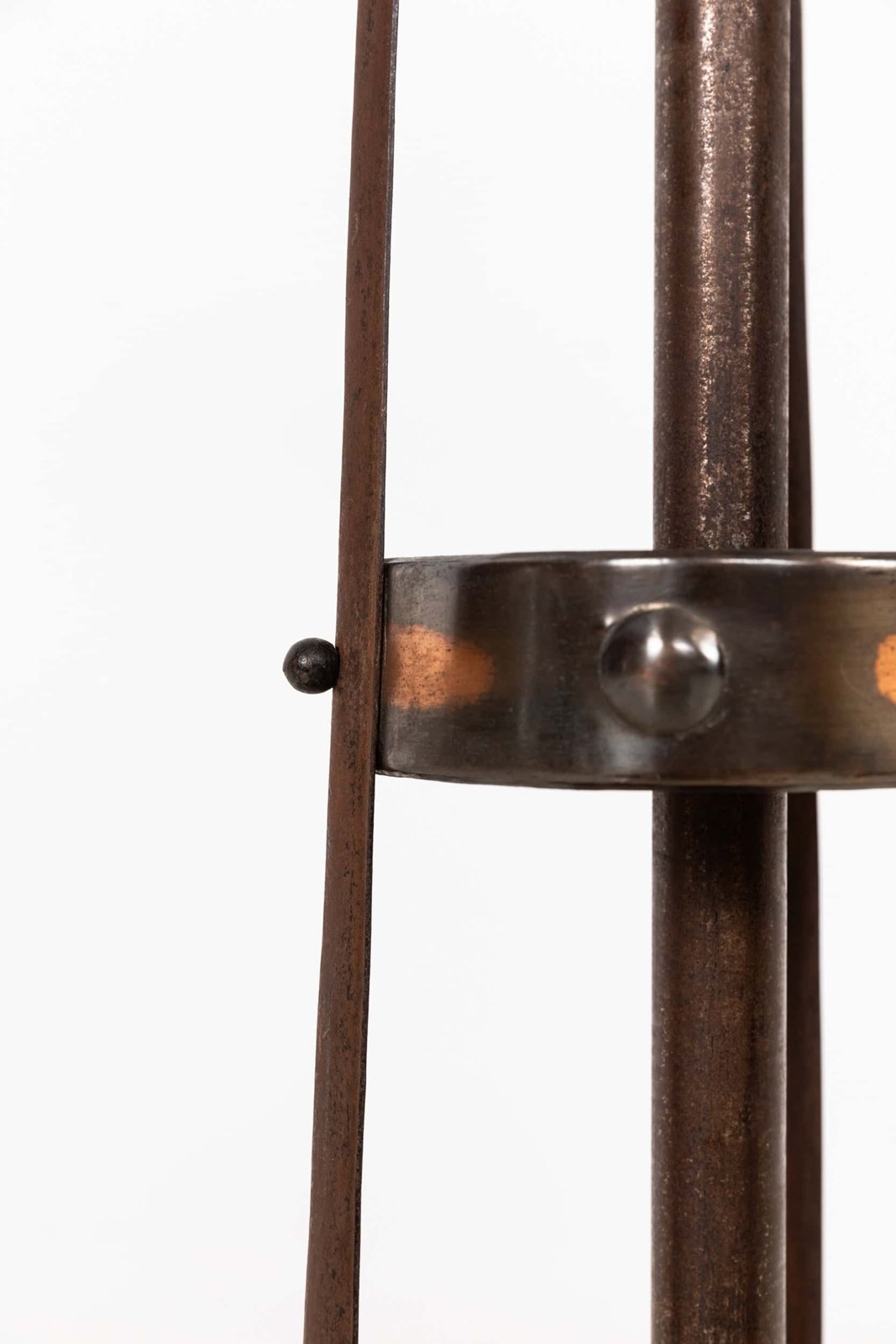 Constructed by hand from a mixture of copper and iron in the typical Arts & Crafts style, both of which has mellowed to a wonderful patina. The height can be extended.