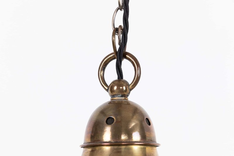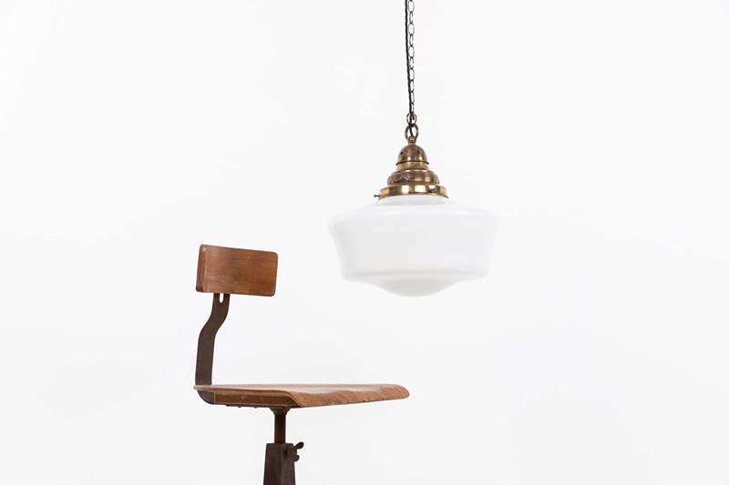 Blown opaline glass shade, this shape of lamp were often found in churches and chapels up and down the country. Complete with its original decorative brass gallery.