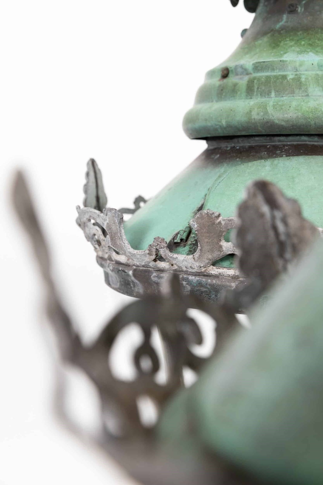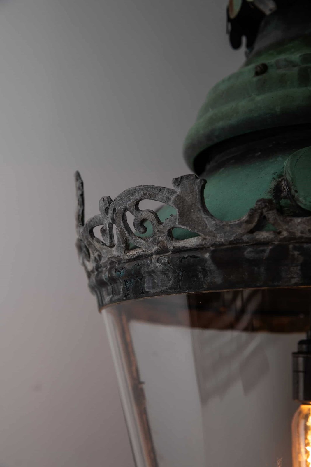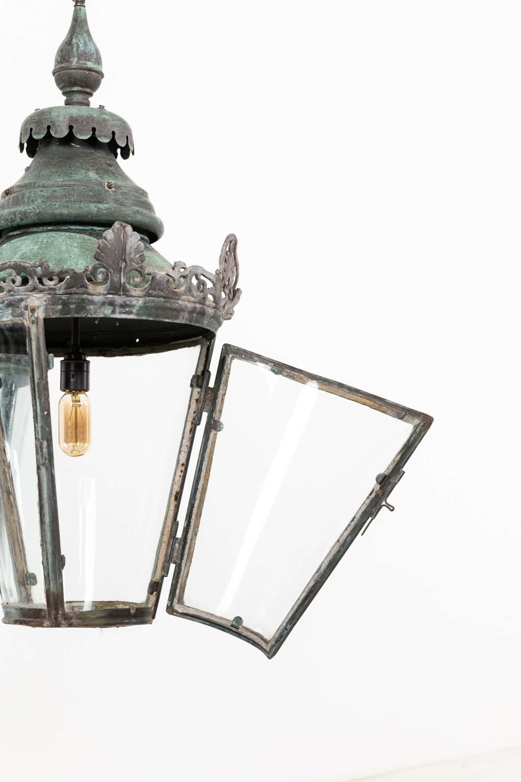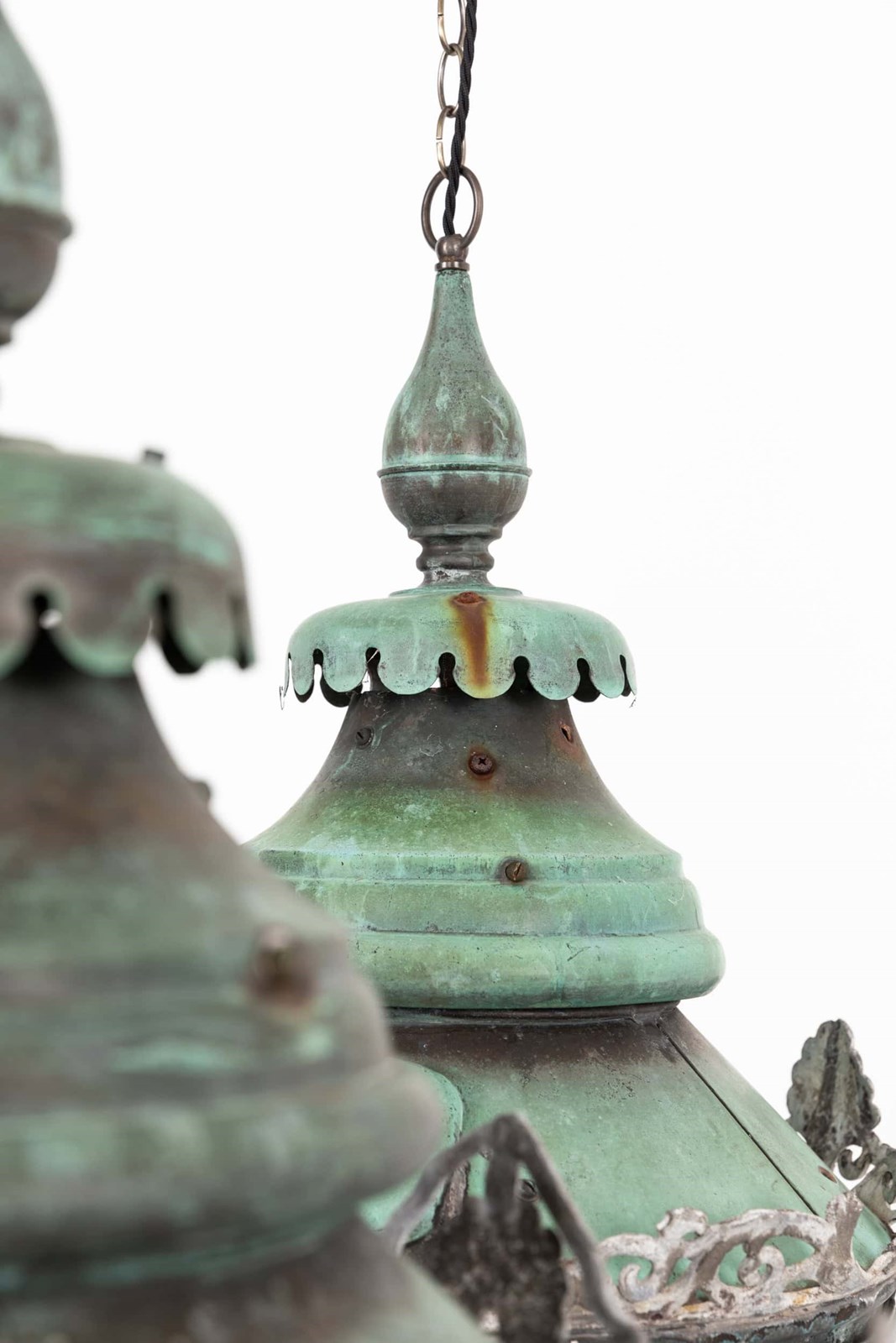 A pair of beautifully formed glazed copper lanterns with natural verdigris. c.1890