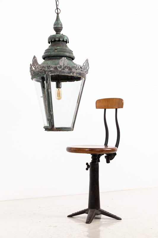 Large Antique Conical Glazed Copper Hall Lantern