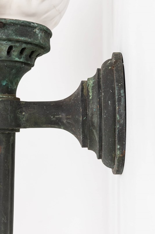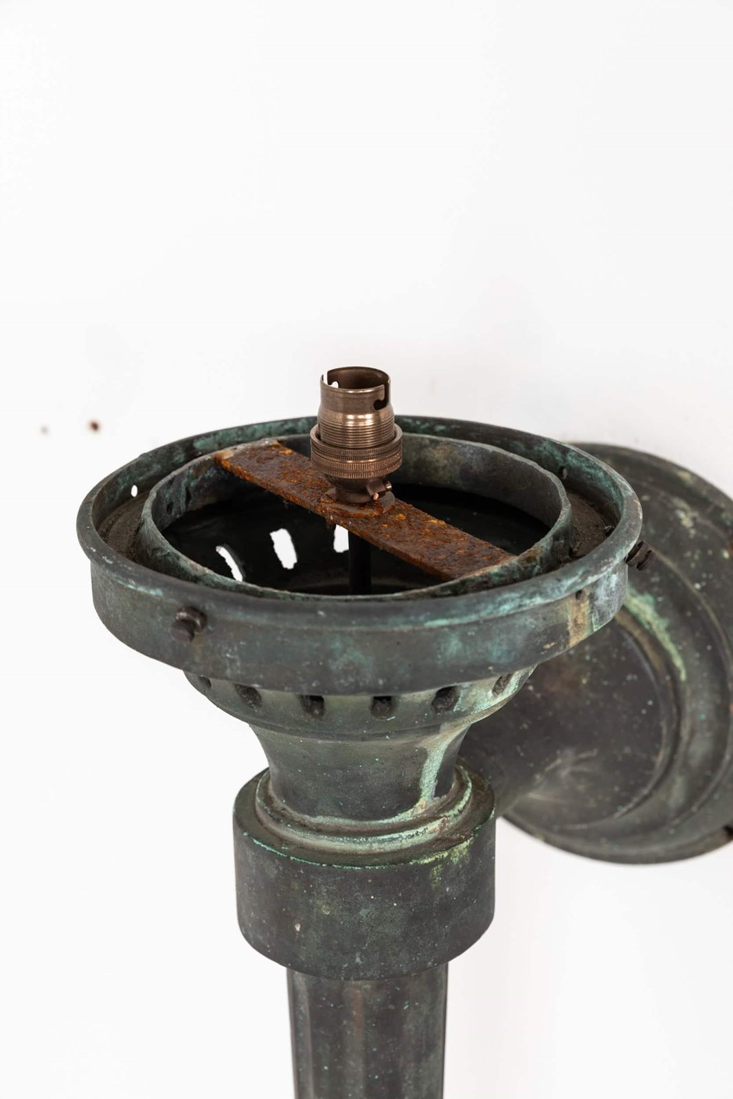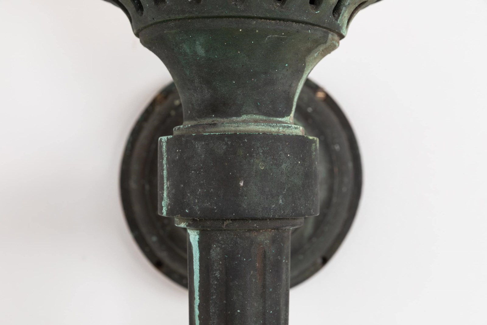 Large Antique Verdigris Bronze Torchiere Wall Lamps