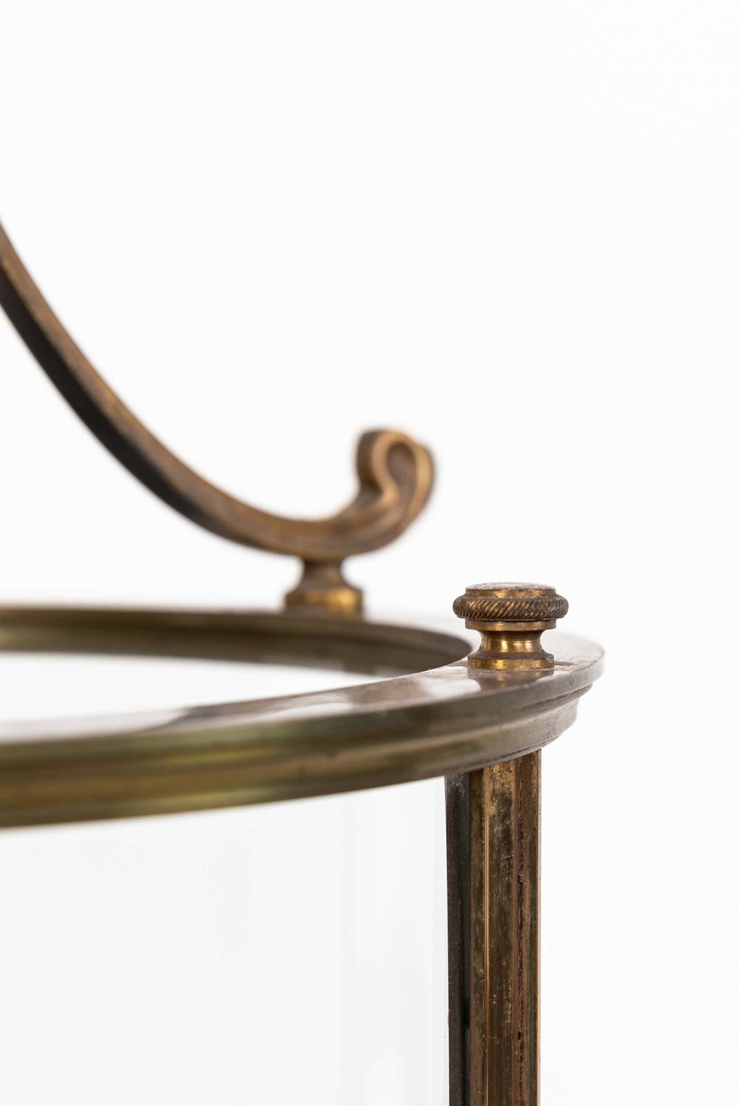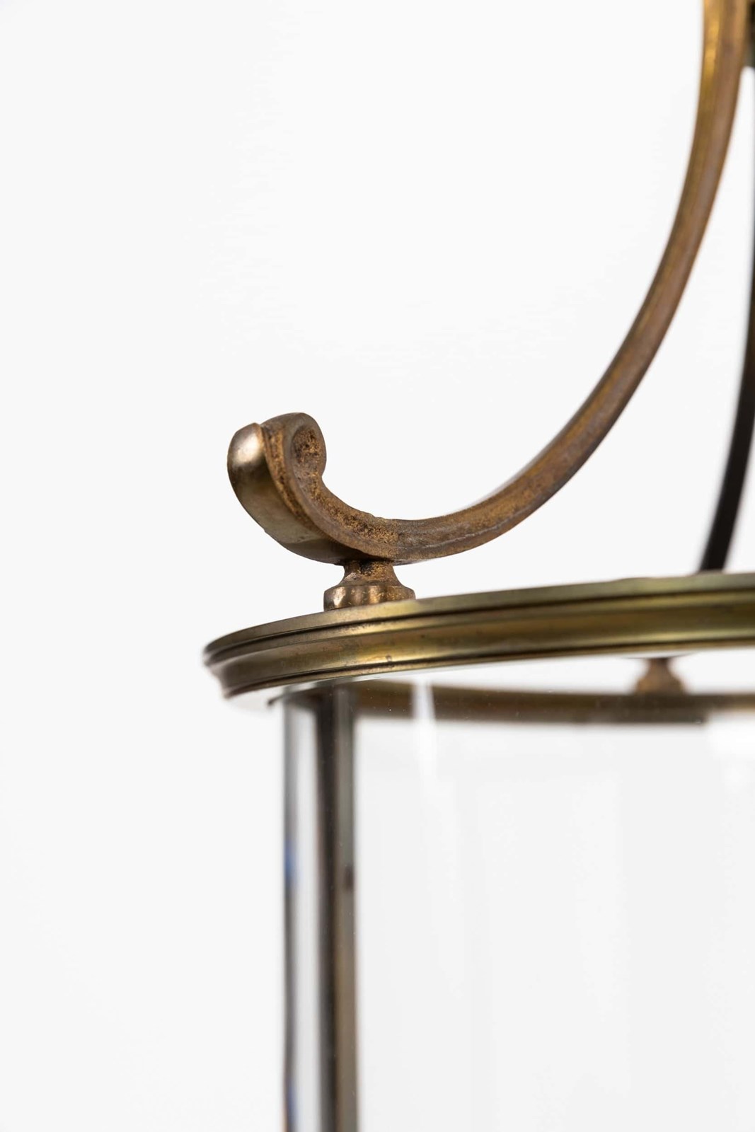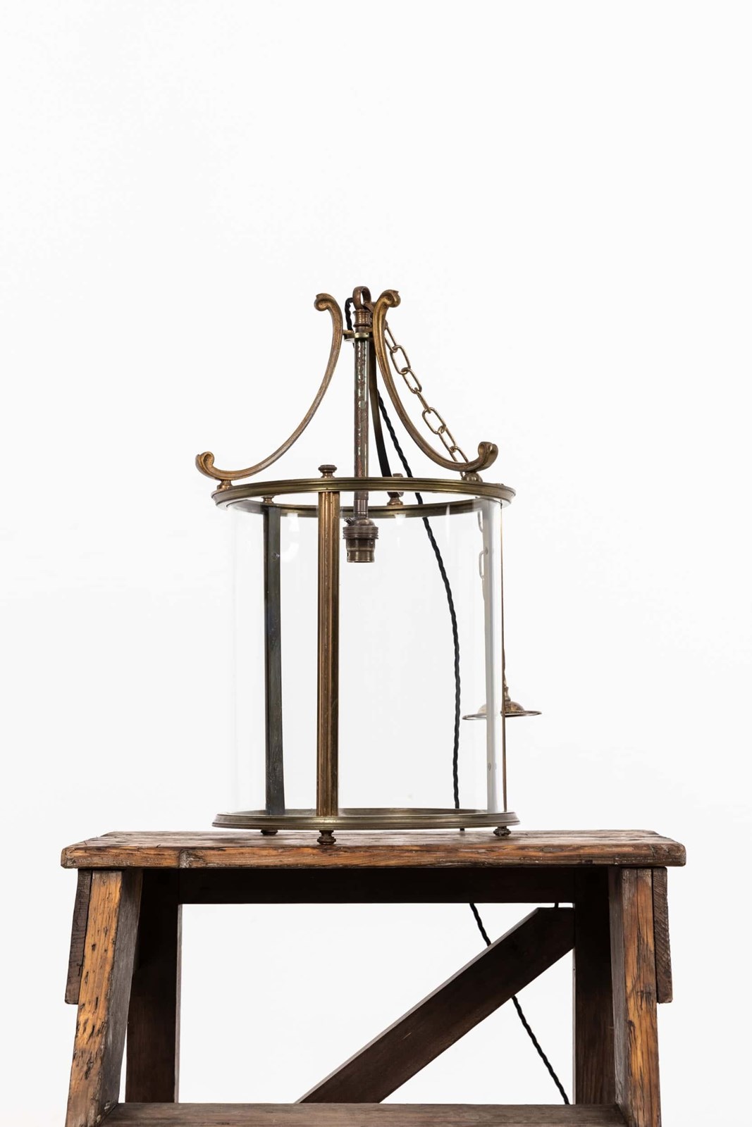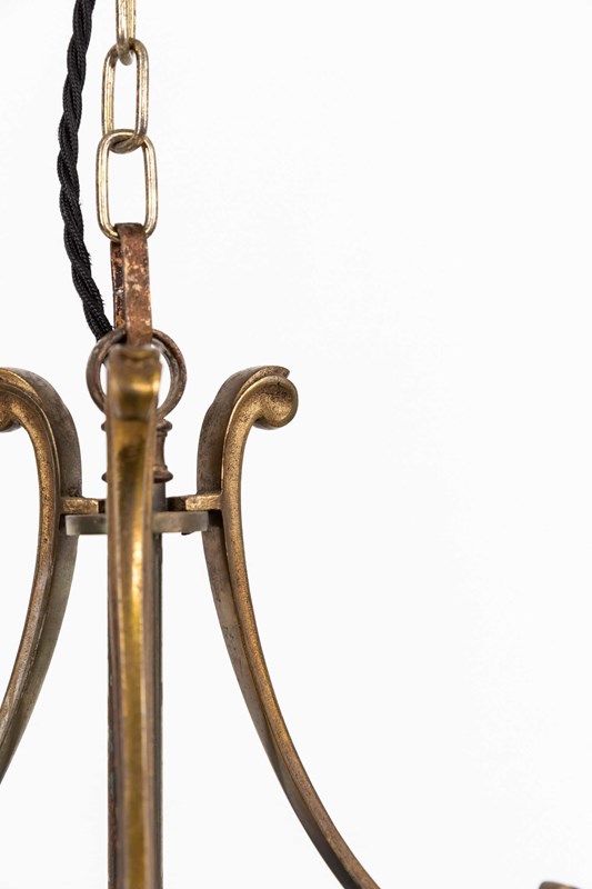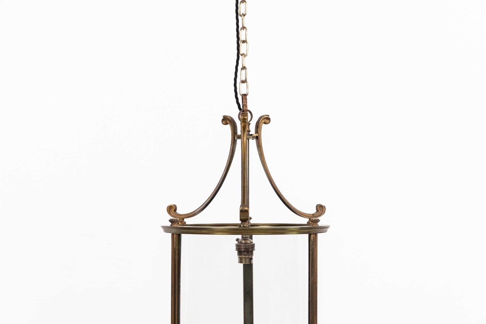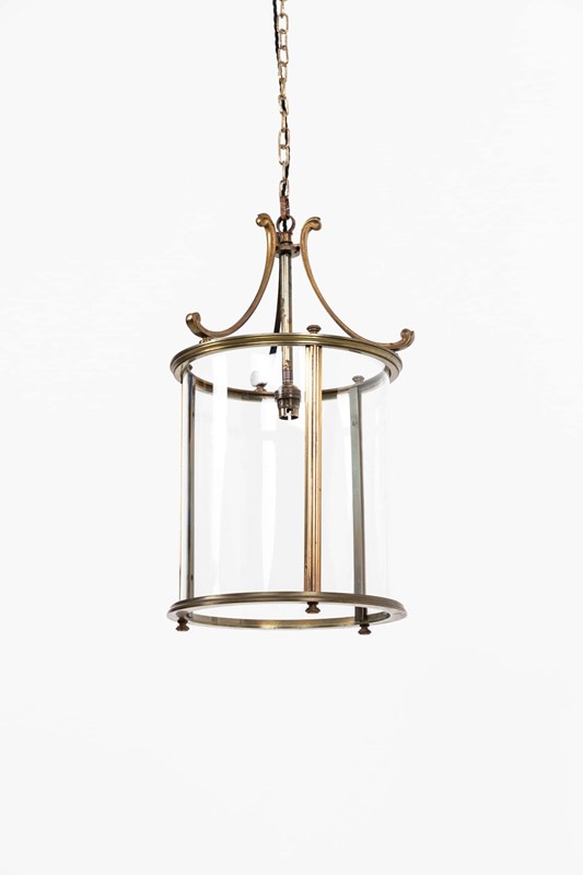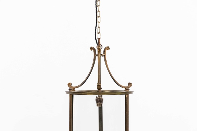 Made in cast brass with a notably fine, even finish, the lantern has elegant scrolled supports and a clean, well‑balanced frame. The cylindrical glass panels are all original and sit perfectly within the structure, giving the piece that quiet, early‑20th‑century refinement the French did so well. A classic, versatile lantern with real quality in the metalwork.