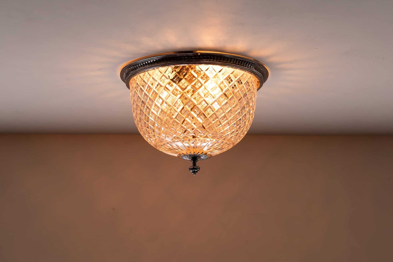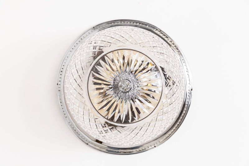 A flush mounted cut glass light shade made in England by GEC. c.1910