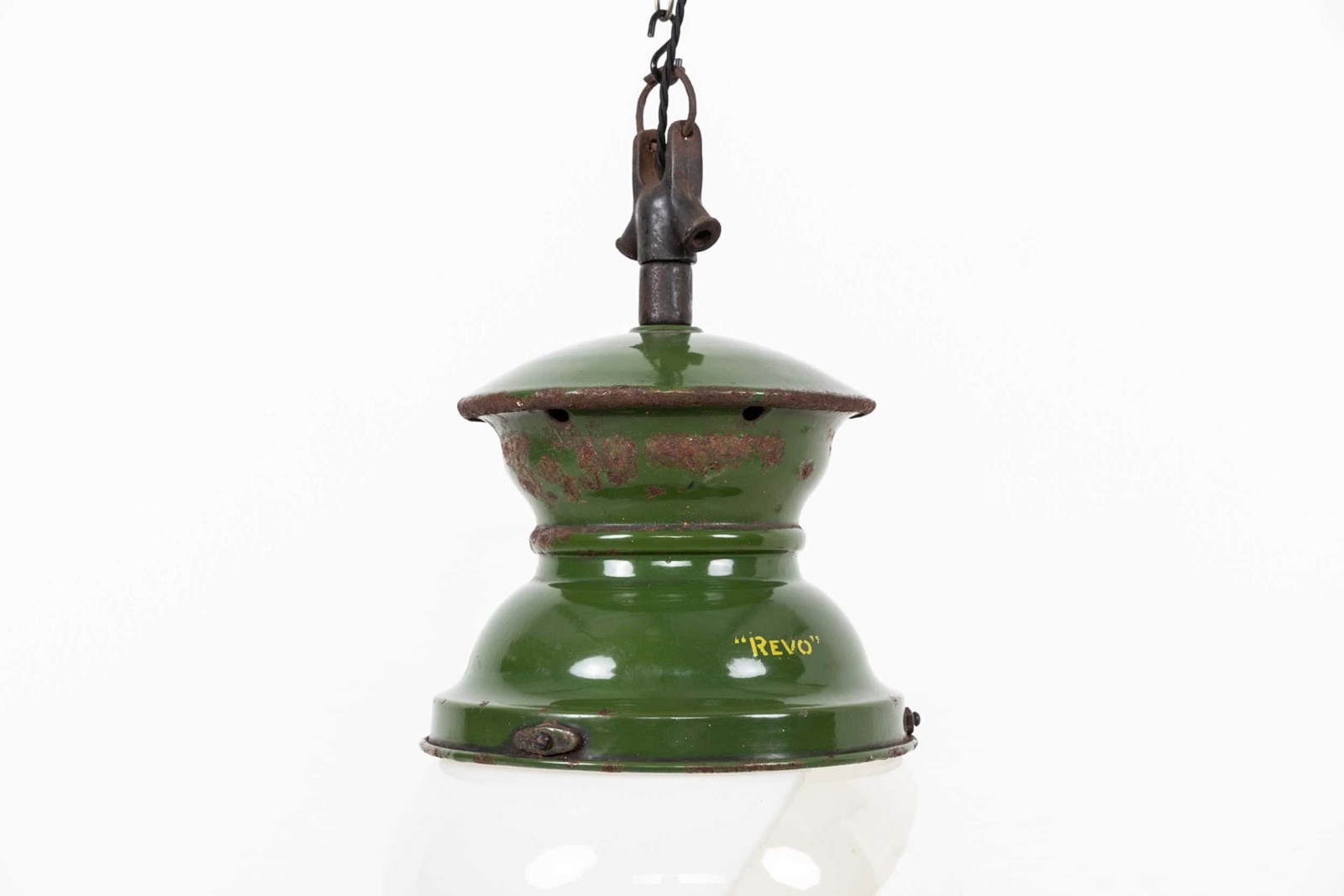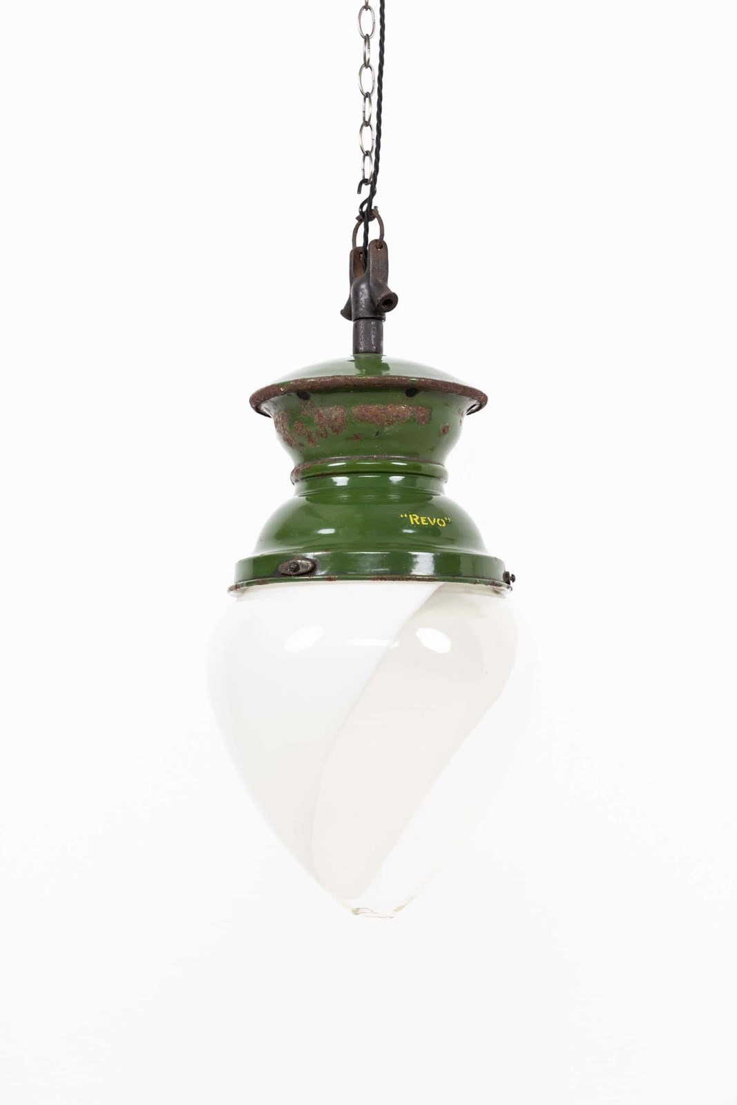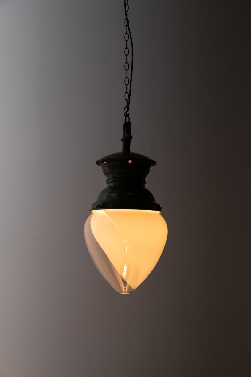 A large and early two-tone opaline glass pendant light made by REVO. c.1930