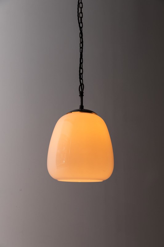 A beautiful tulip shaped opaline glass pendant light. c.1930