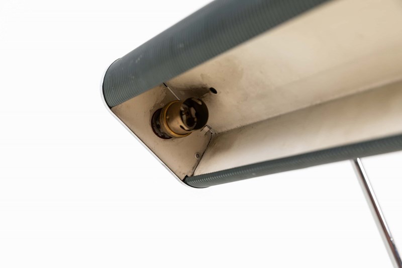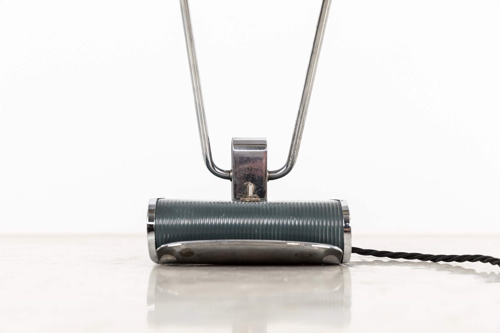Ahead of its time in terms of design - constructed from chrome-plated tubular steel with a grey lacquered metal shade and base, the swivelling shade allows for practical, directional light.