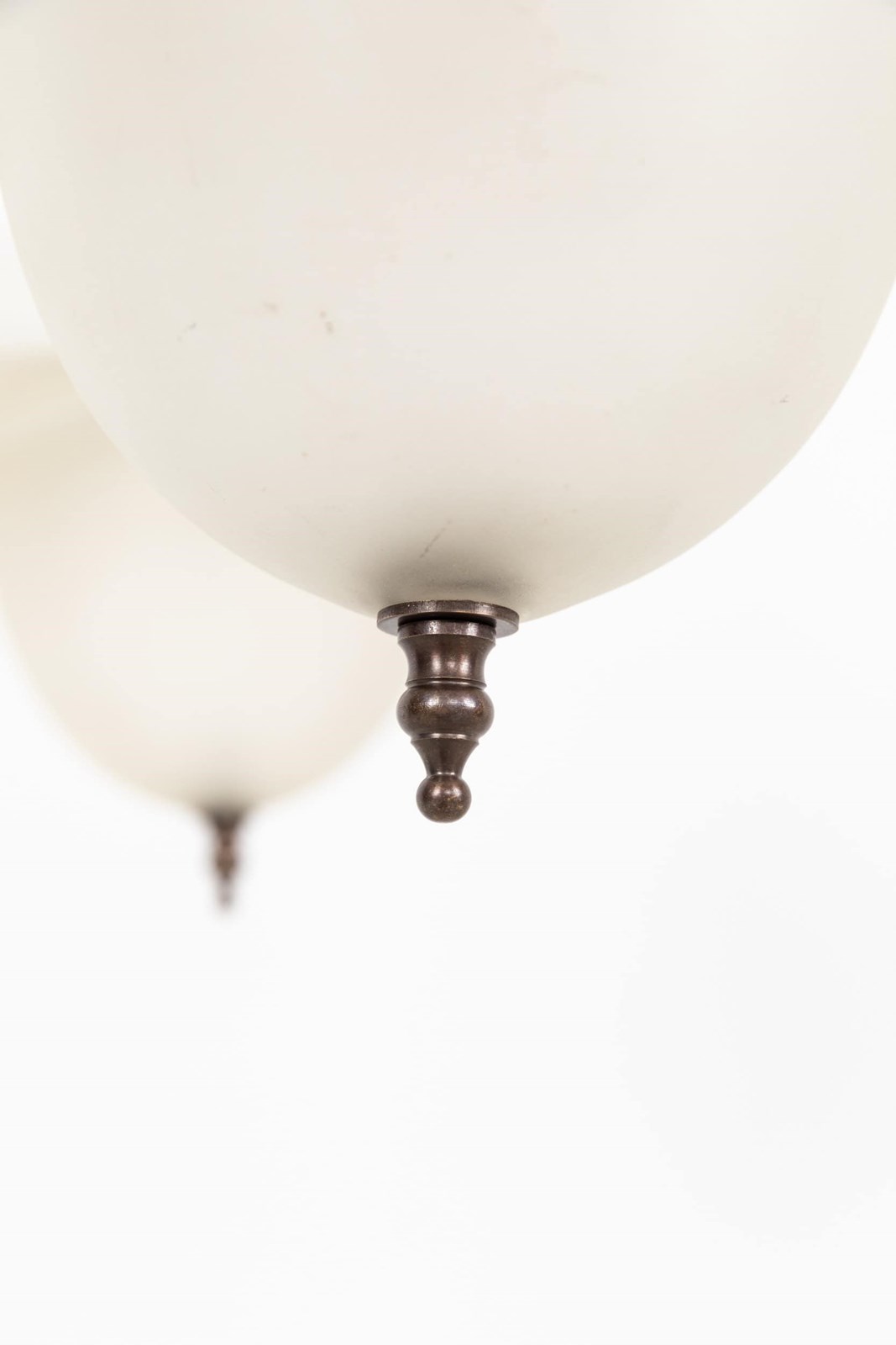 Elegantly formed acorn shaped tri-tone 'Viktoria' opaline pendant lights made in Sweden by ASEA. c.1920