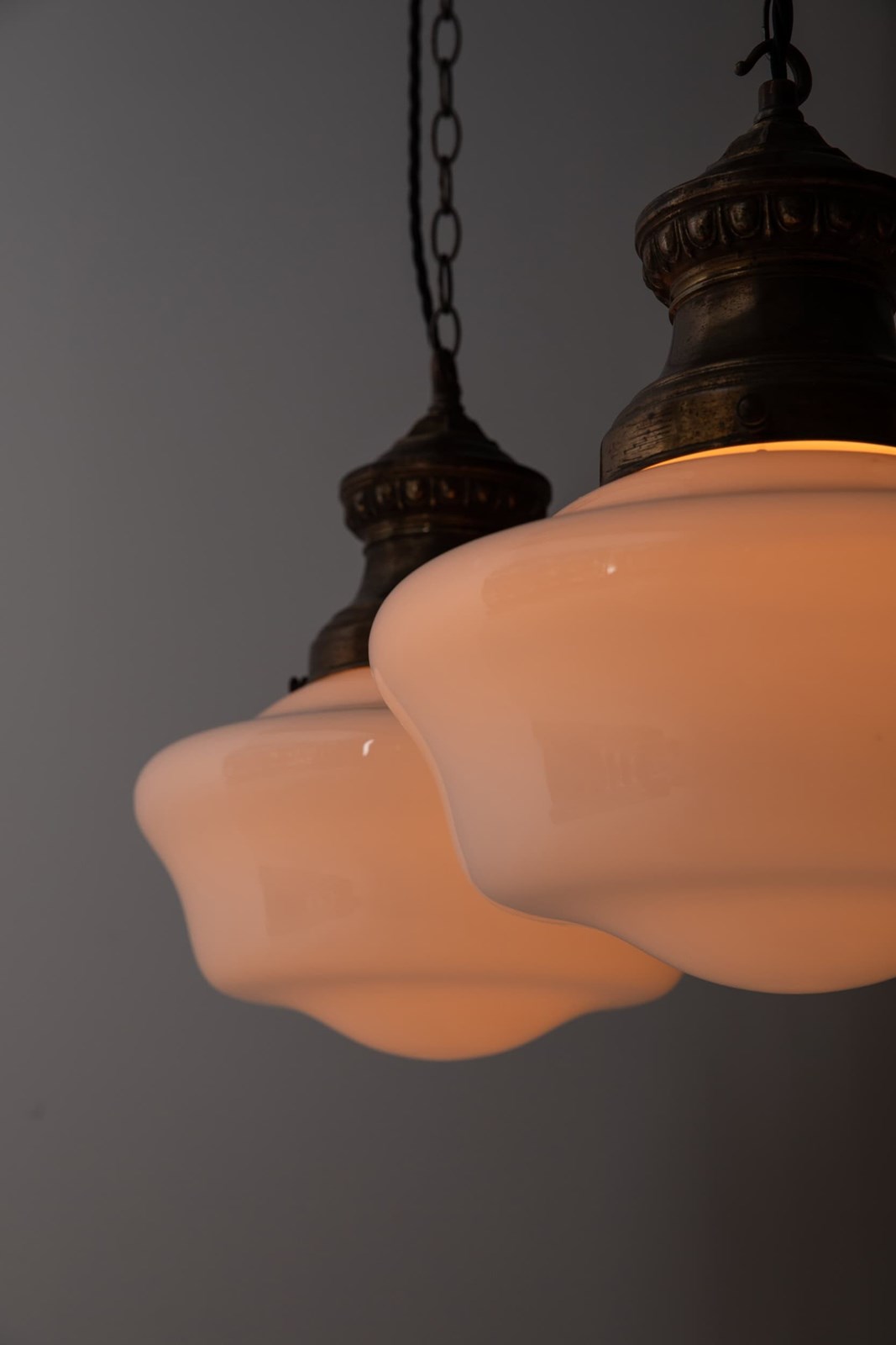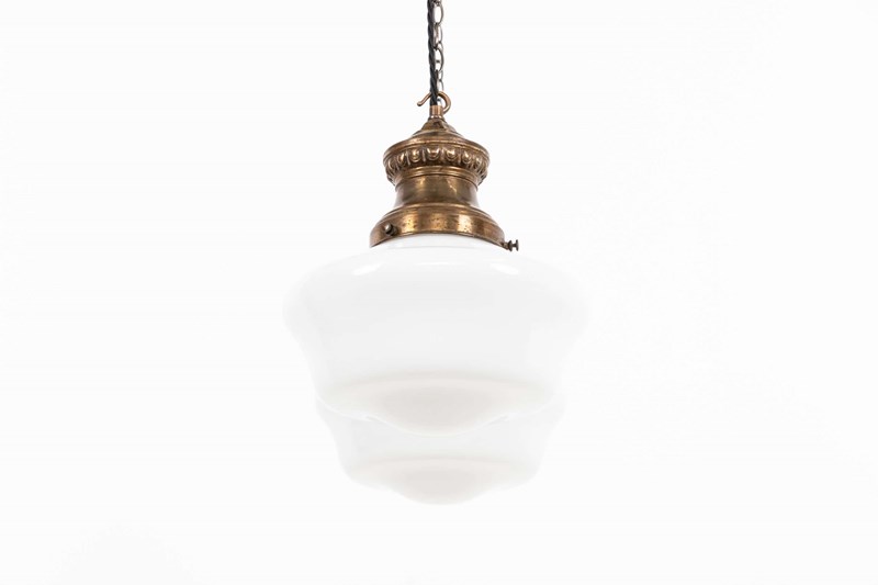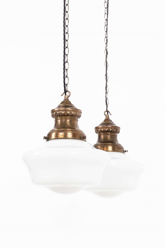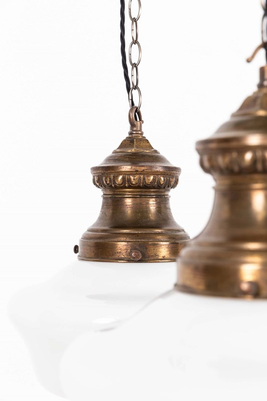 Pair Of GEC Church Opaline Glass Pendant Lights