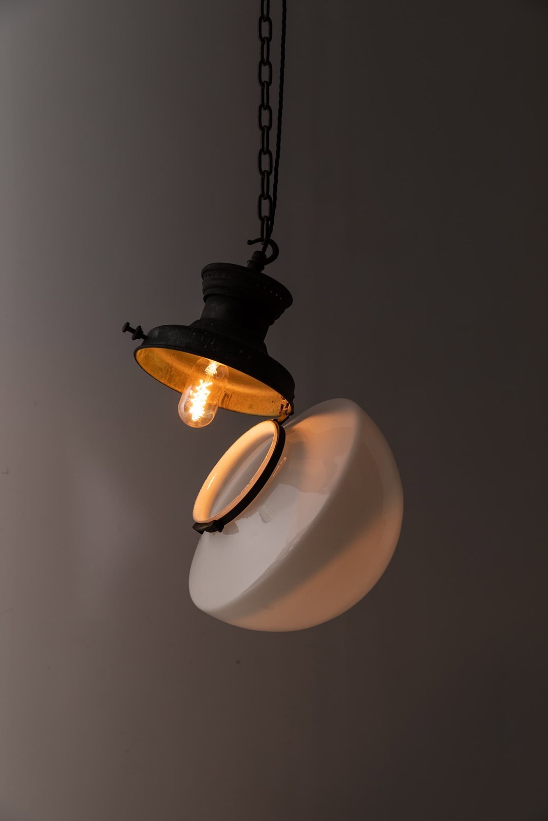 Semi-Spherical Art Deco Opaline Glass Pendant Light