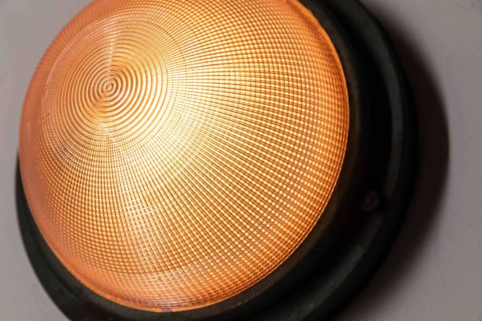 Decorative copper flush mounted Holophane wall/ceiling light. c.1920.