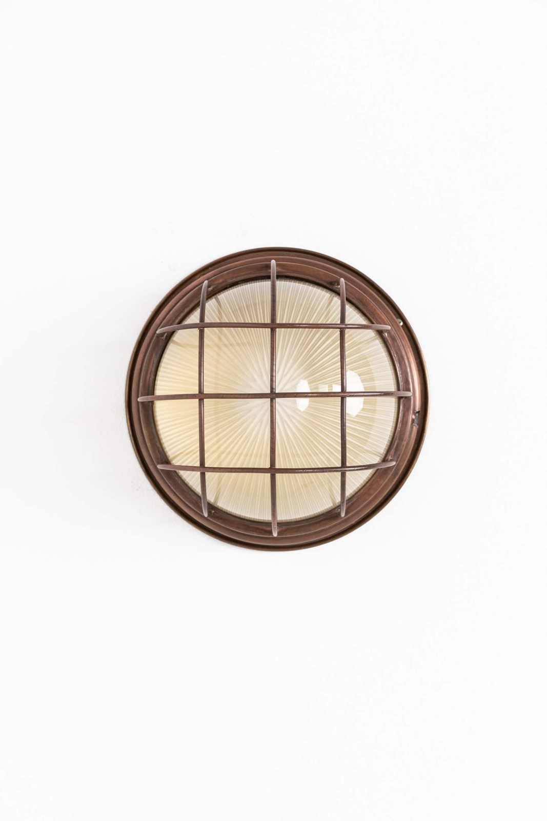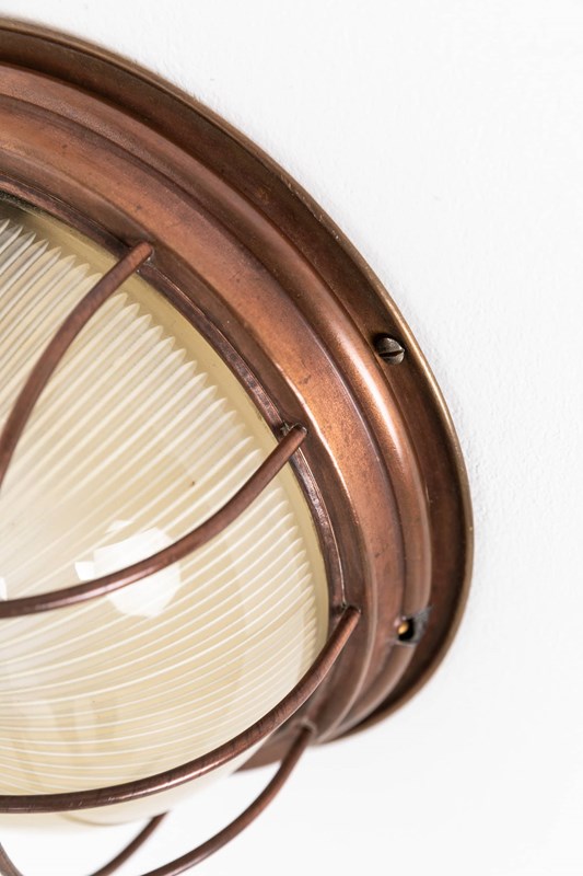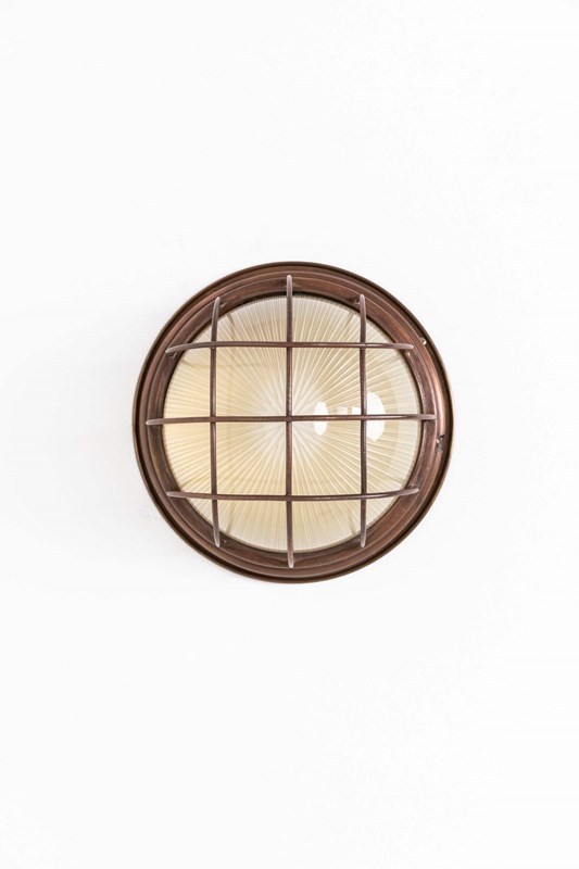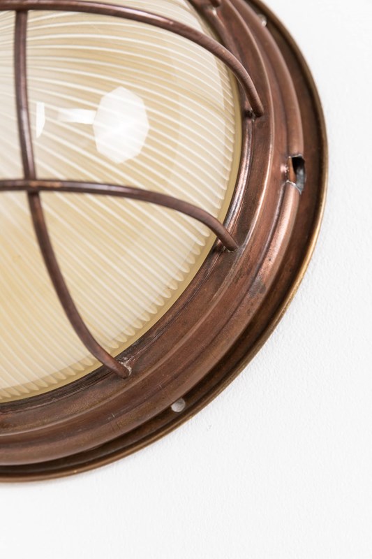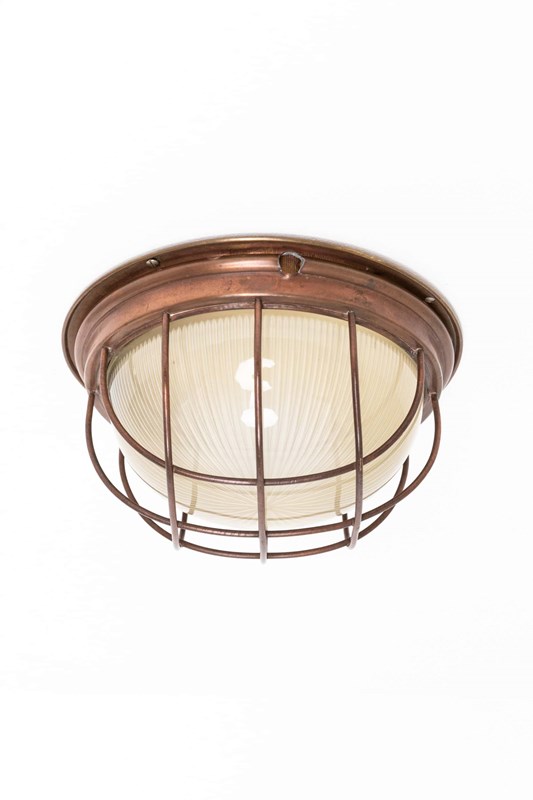 A copper flush mounted Holophane wall/ceiling light. c.1920.