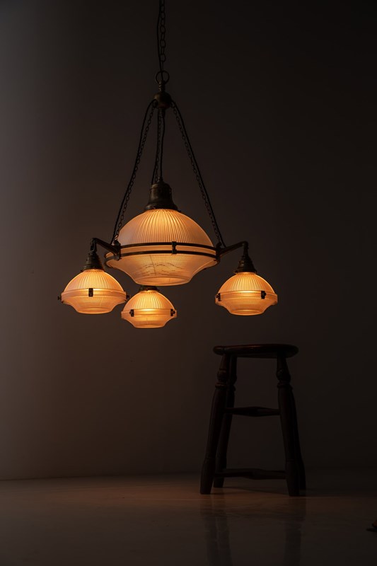 XL Holophane 'Reflector-Refractor' Chandelier Light Fitting