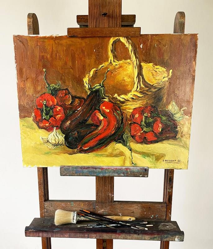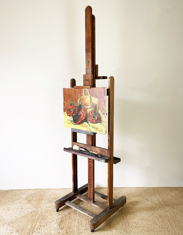 A lovely 19th Century French double-sided Artist's Easel, constructed in oak. The facility for having a painting on both sides means that the artist can be working on two canvases at the same time, or at least simultaneously. These old easels can also make an interesting and decorative way to display a favourite painting in your sitting room. A work horse or a display piece? It's up to you! Circa 1870