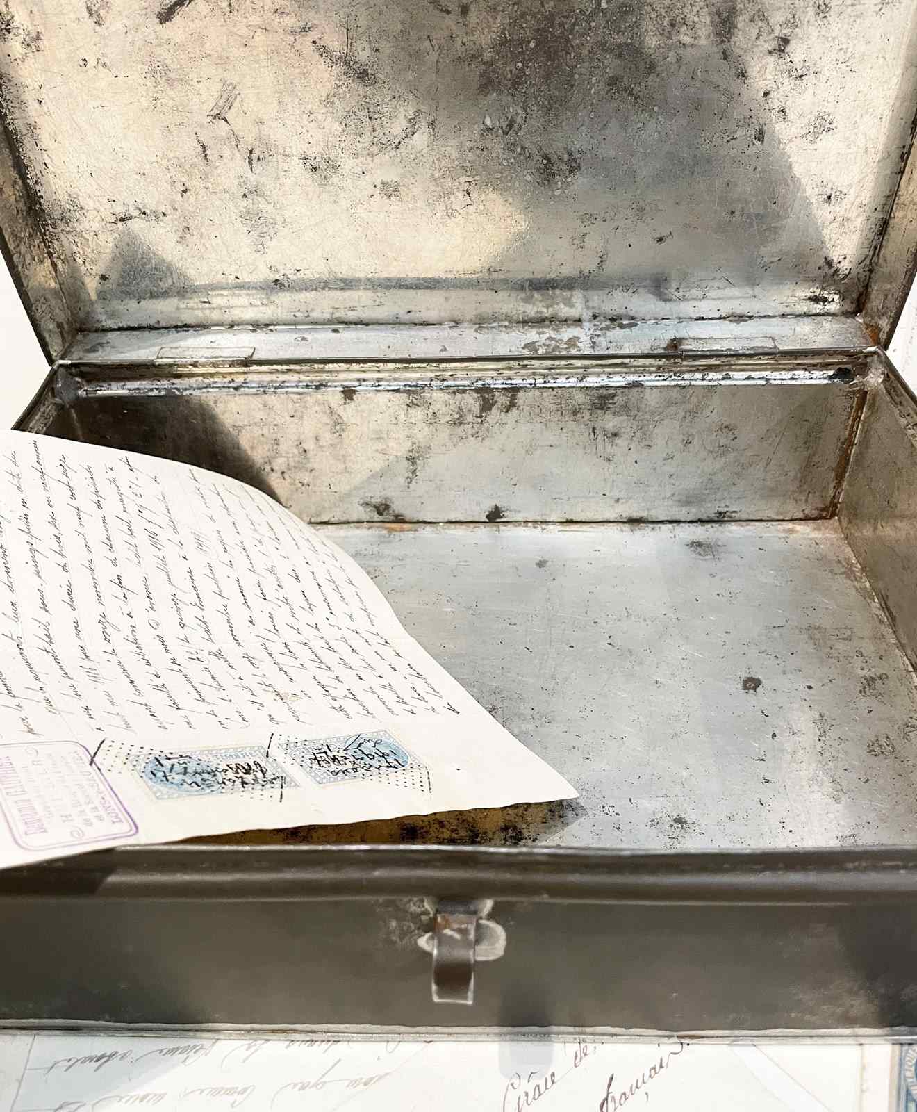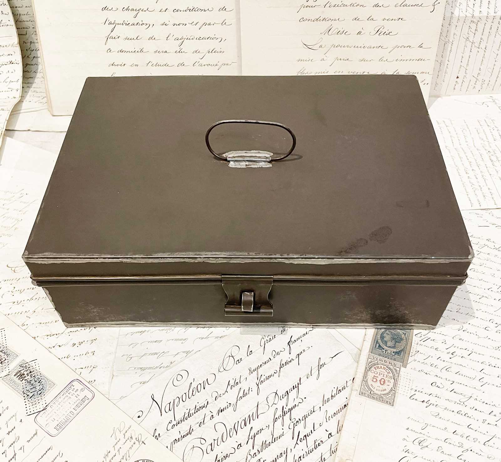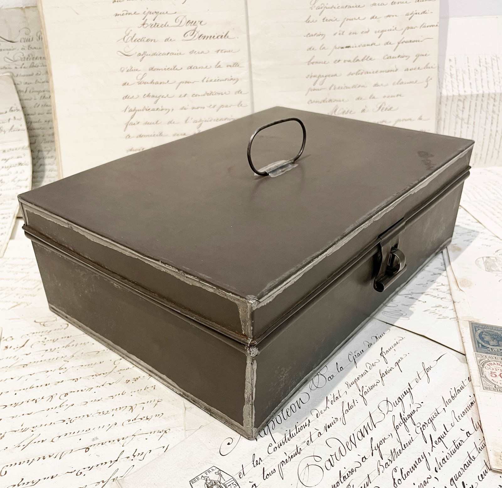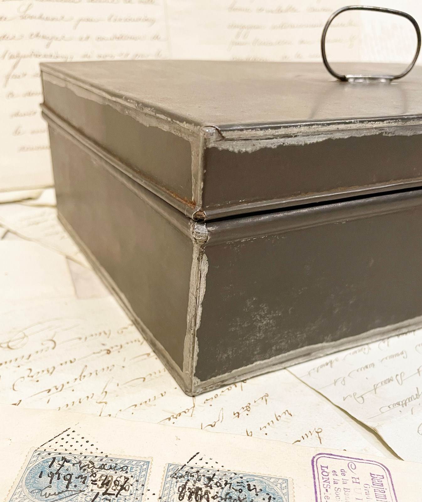 A medium sized 19th c French Tin or Tole-ware box - these Tin boxes would have been made to contain important documents. Beautifully constructed and an important piece of French history - Circa 1900