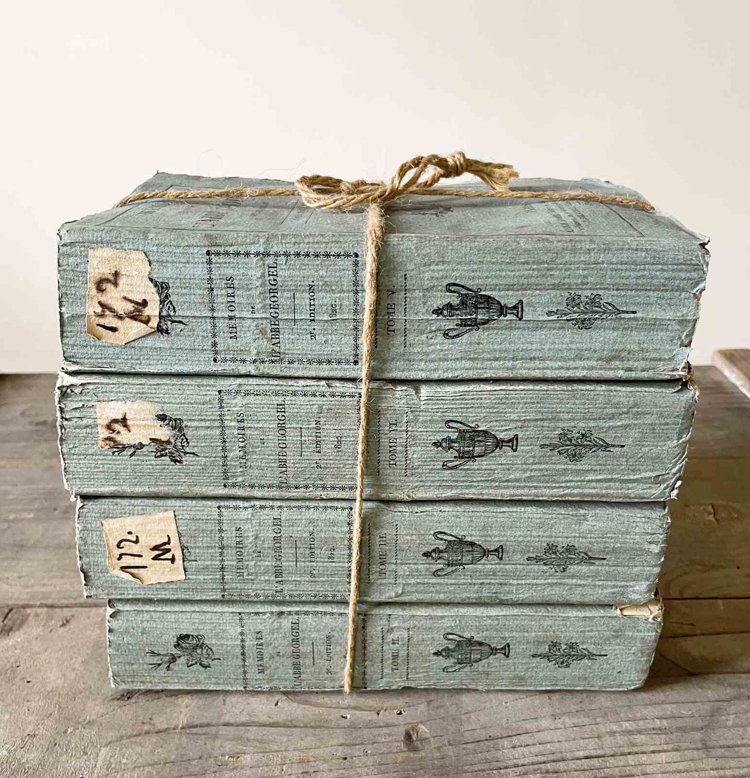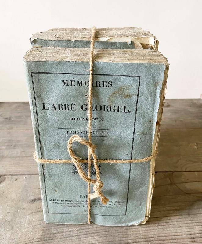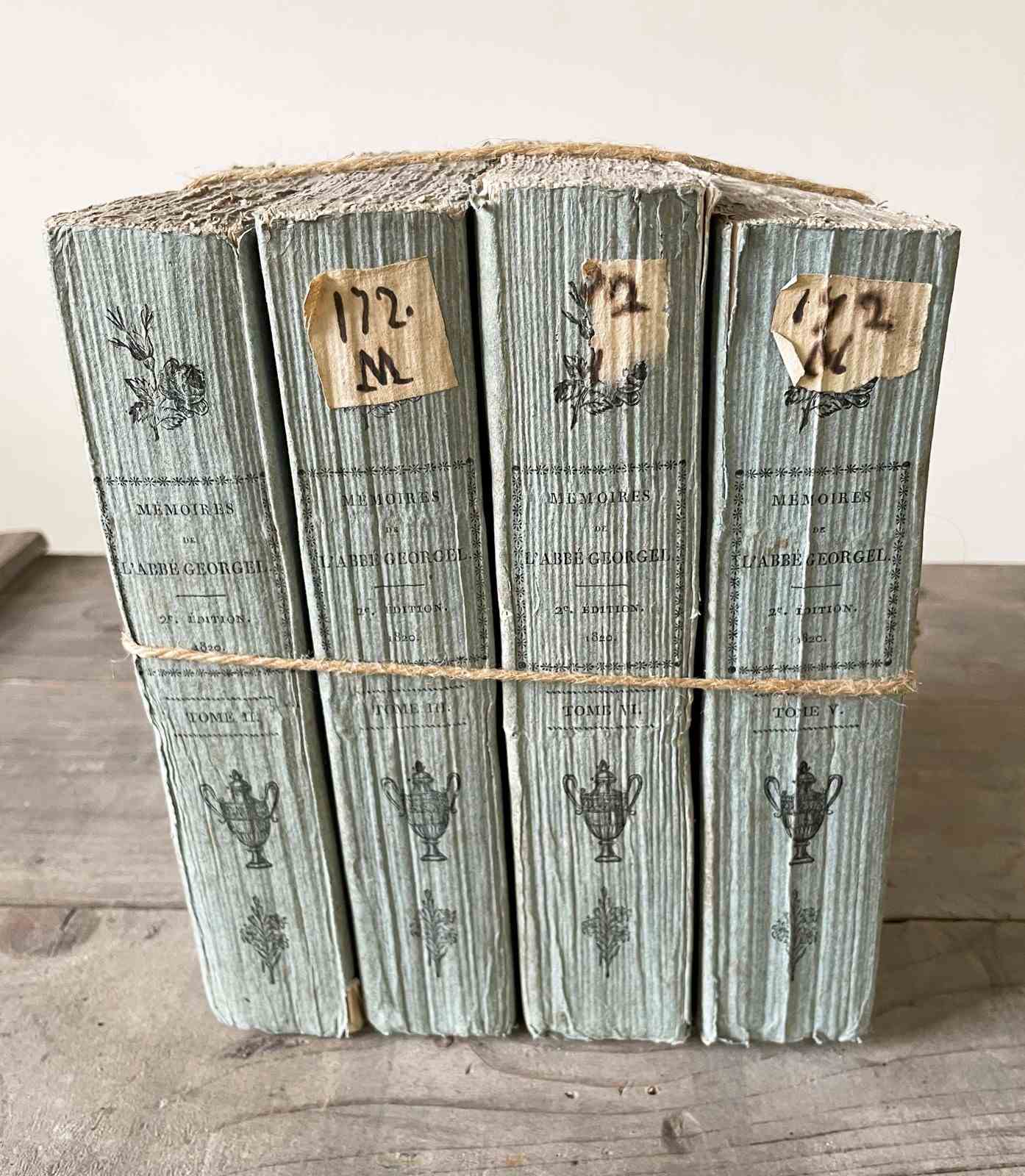 A bundle of 4 early 19th century French Books 'Mémoires L'Abbé Georgel' with faded blue paper covers. Entirely hand-printed on old Rag Paper. In good condition for their age and very decorative....
