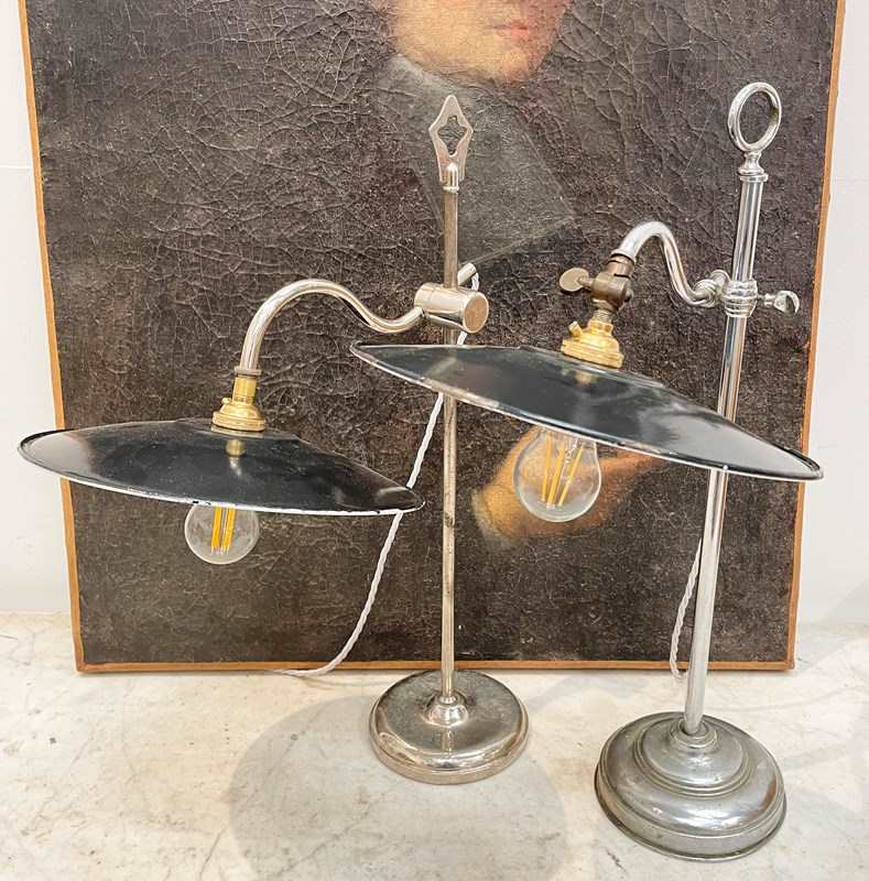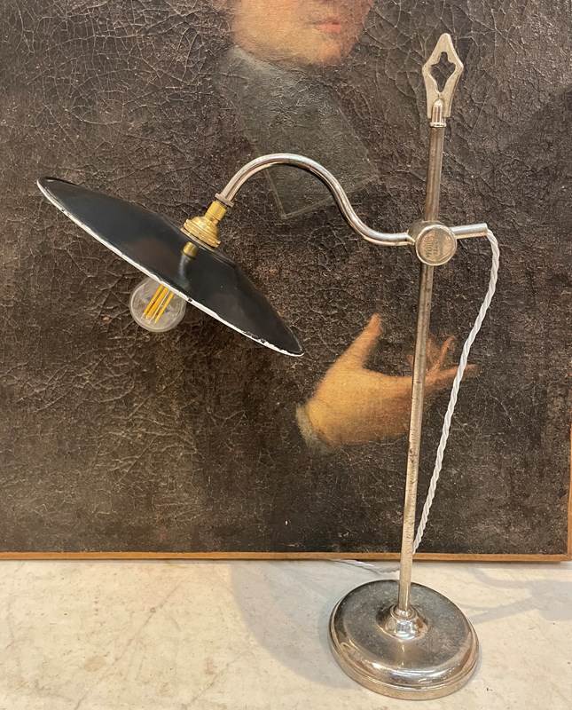 French mid 20th century Rise & Fall Retro Desk Lamp with original black Enamel Shade and weighted base - restored and re-wired including PAT tested and now in excellent condition - circa 1940