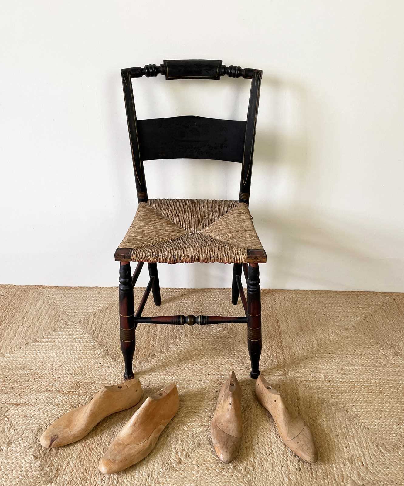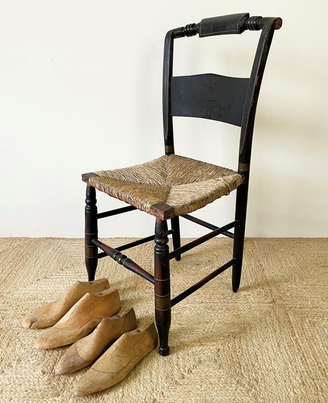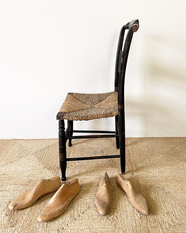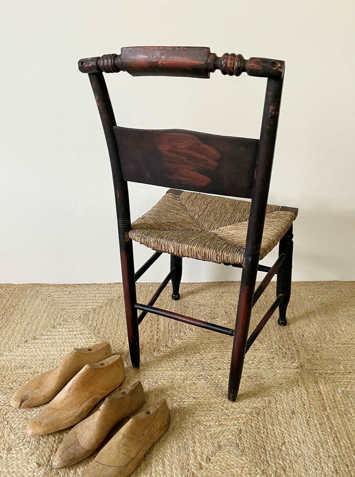 A pretty single 19th c English Chair - old matt black paint and rush seat. Perfect as a desk or dressing table chair or in a hall - circa 1880