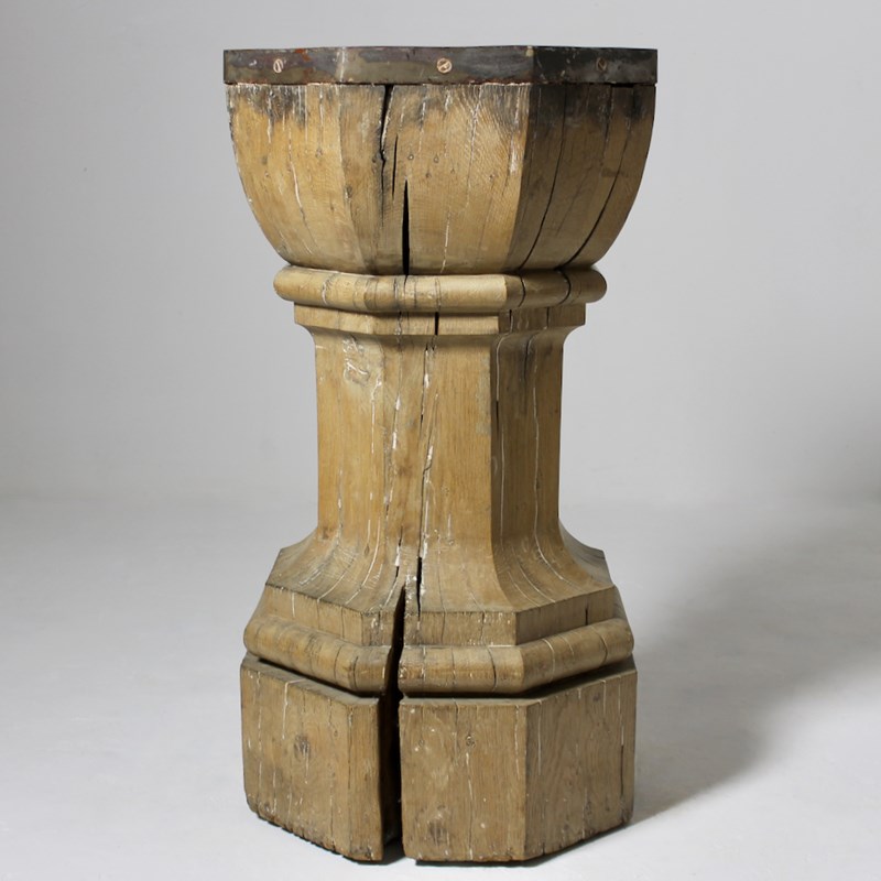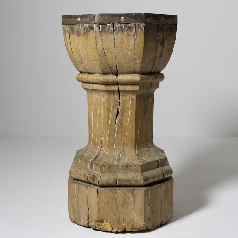 17Th Century English Oak And Marble Floor Standing Pedestal Mortar