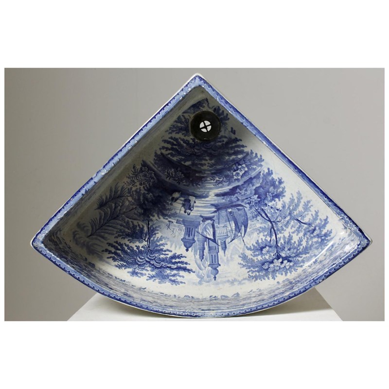 Early To Mid 19Th Century Staffordshire Blue And White Corner Sink