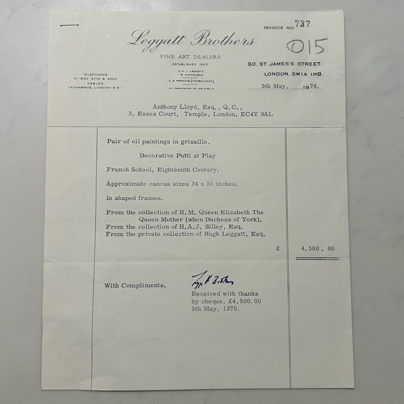 In very good restored condition, re-lined, some age varnish discolouration, the work most probably done by Leggatt Brothers in the 1970's, original sales invoice supplied to purchaser.