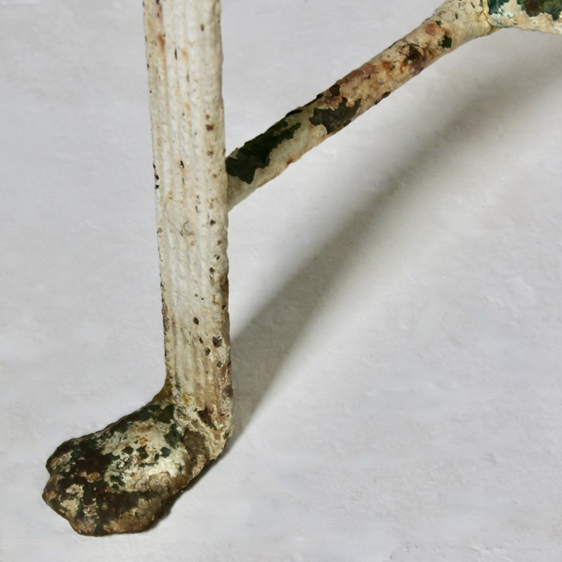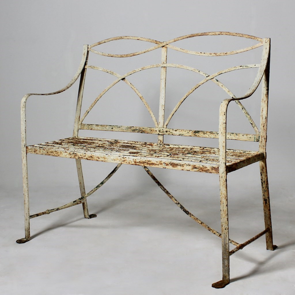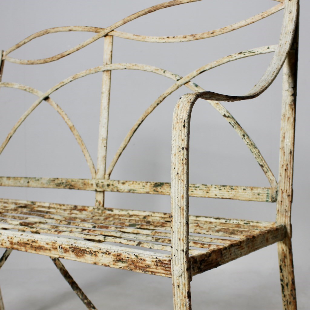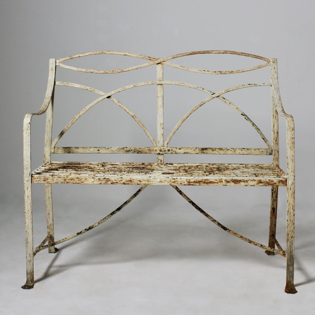 A wonderful, early 19th century, Regency period, garden bench seat. Constructed in reeded wrought iron and standing on its original lions paw feet ( one later ), the whole in very good untouched condition.