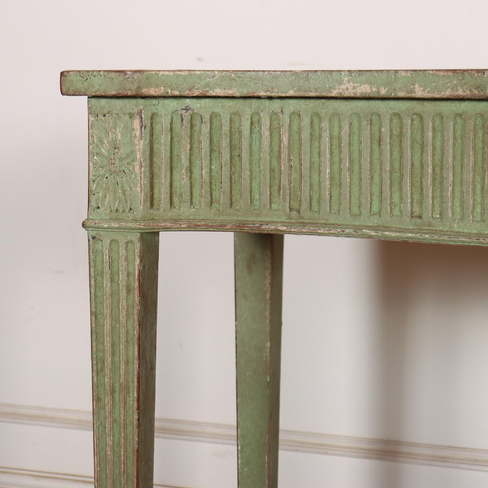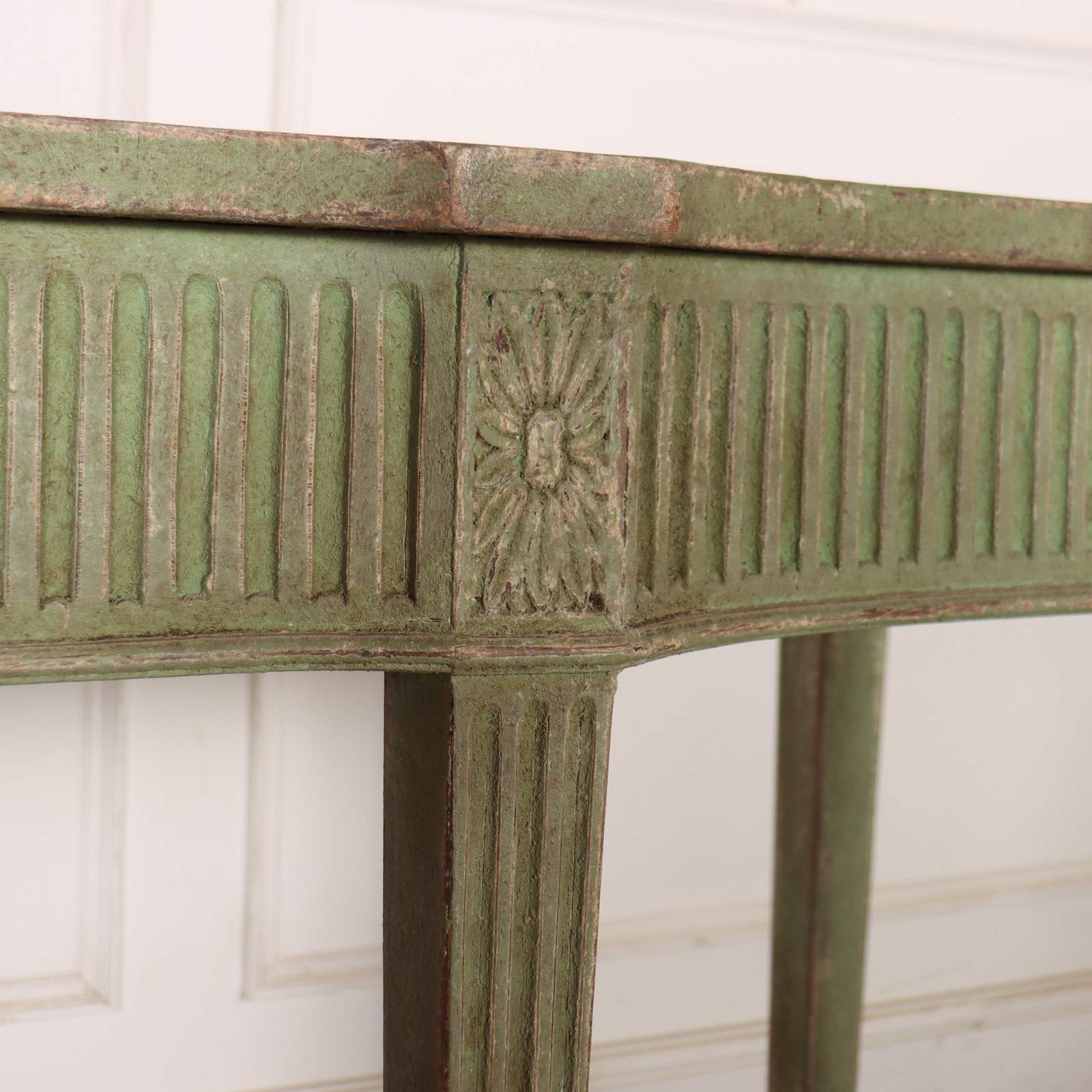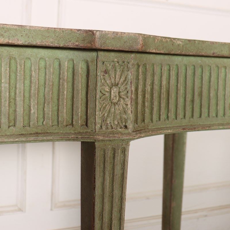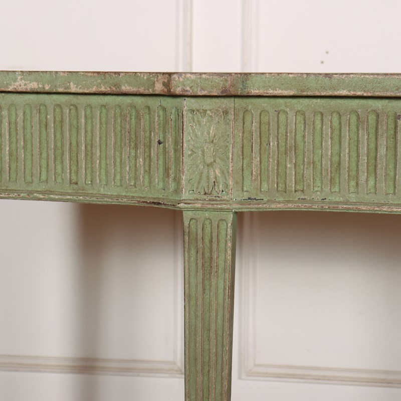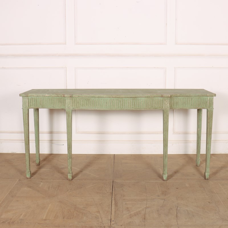 Late 18th century English painted oak console table with fluting to the legs and frieze. 1790.
