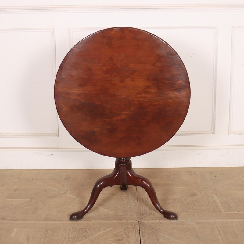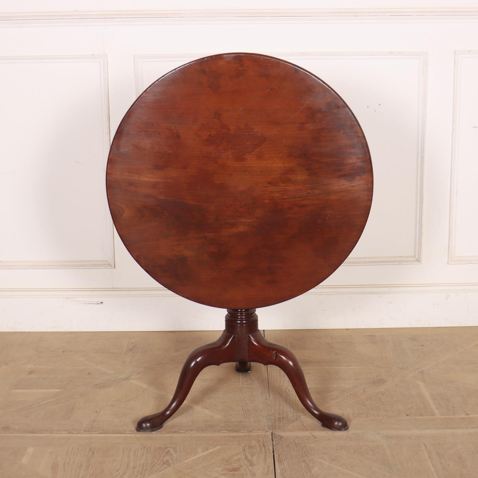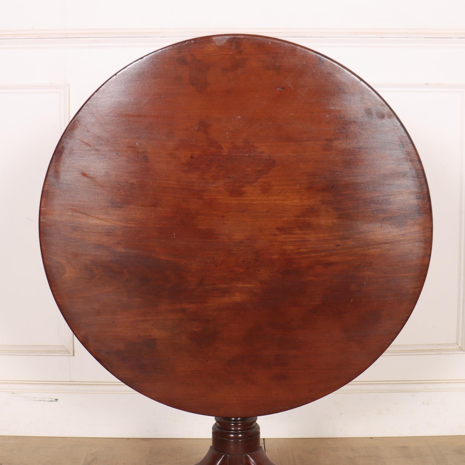 Good 18th century English mahogany tripod table with a one piece top. 1780.