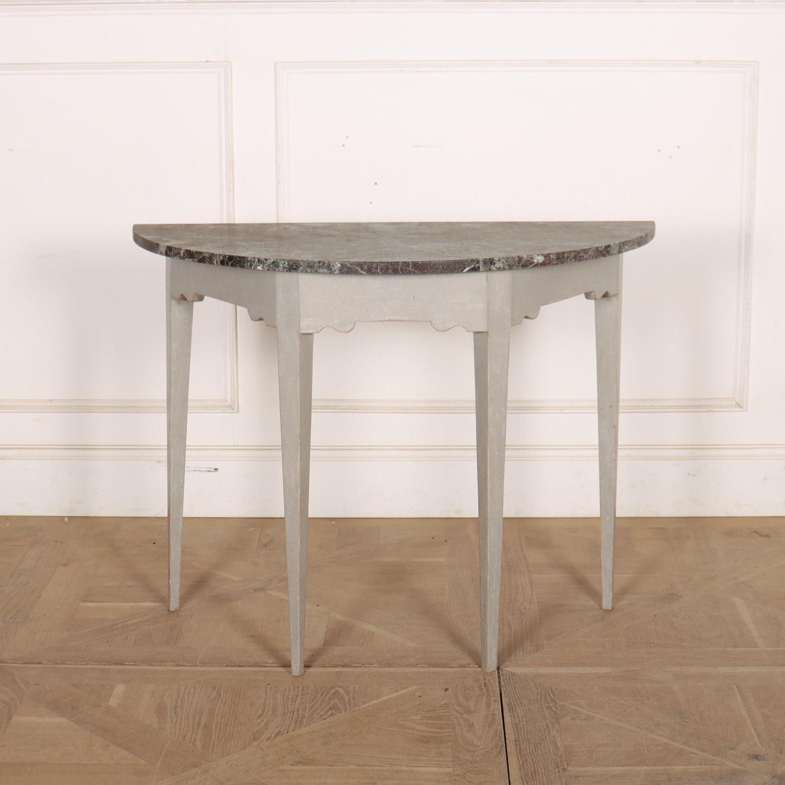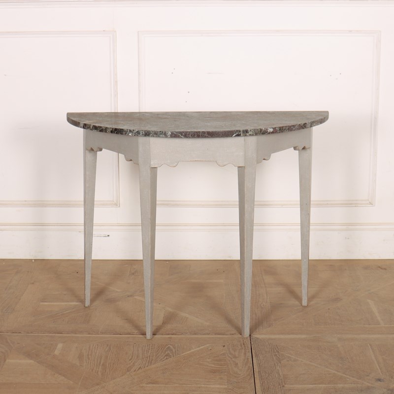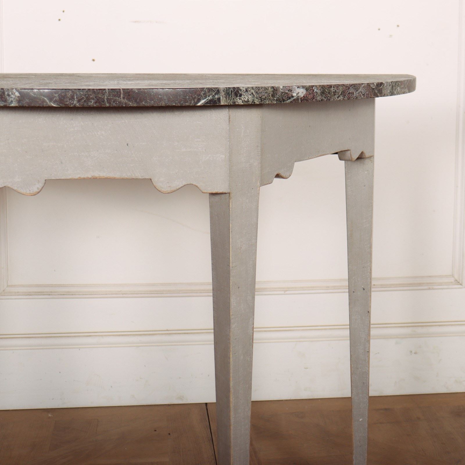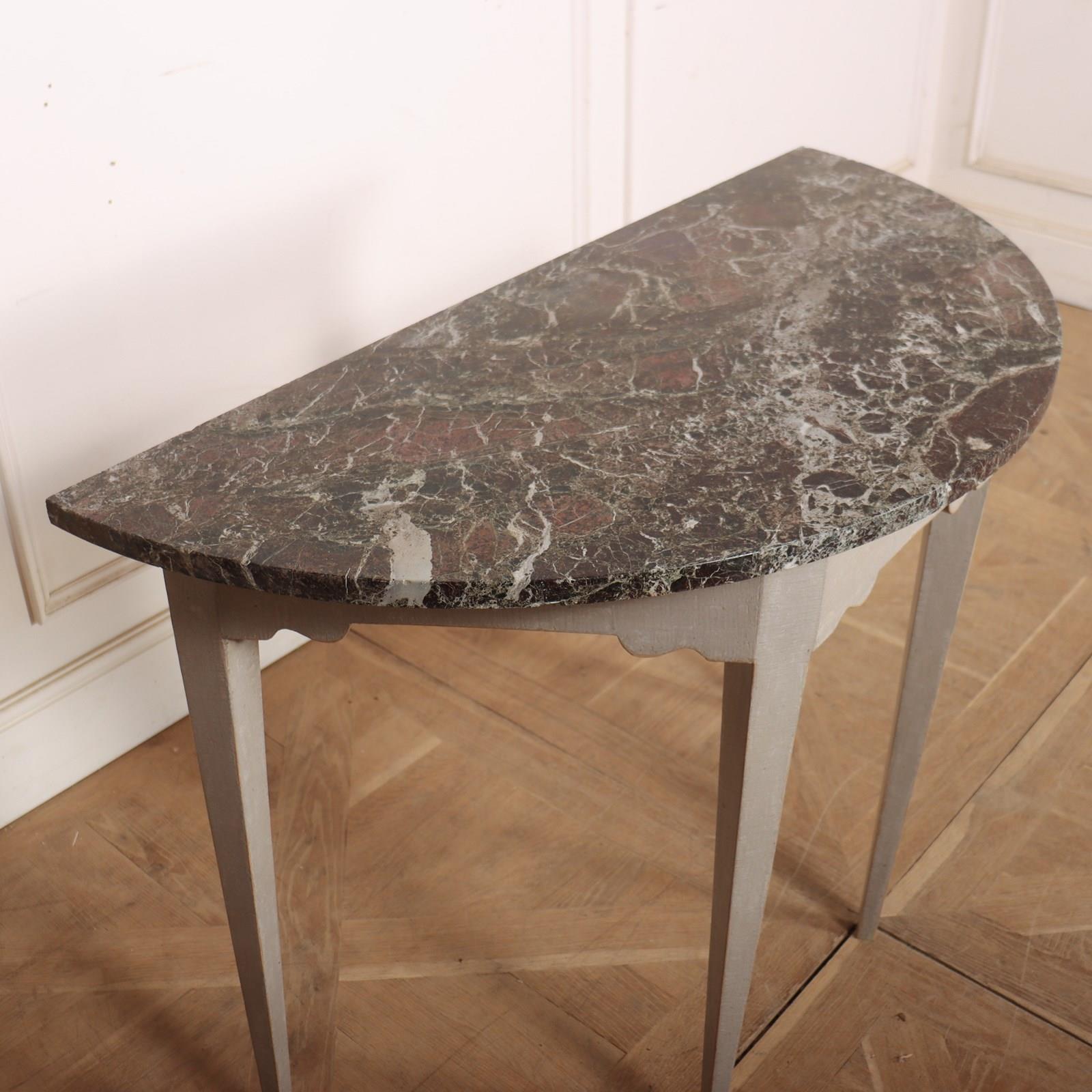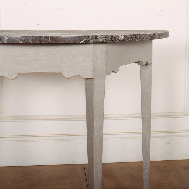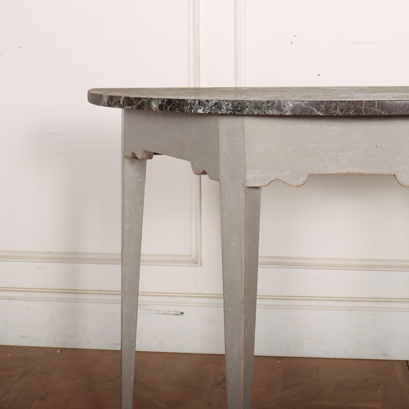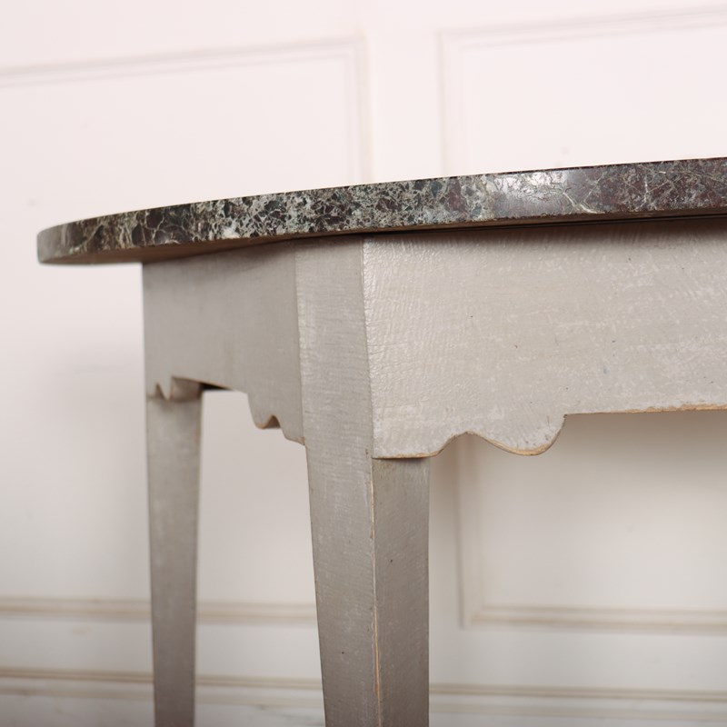 Small 19th century English console table with a brown and grey flecked marble top. 1900.