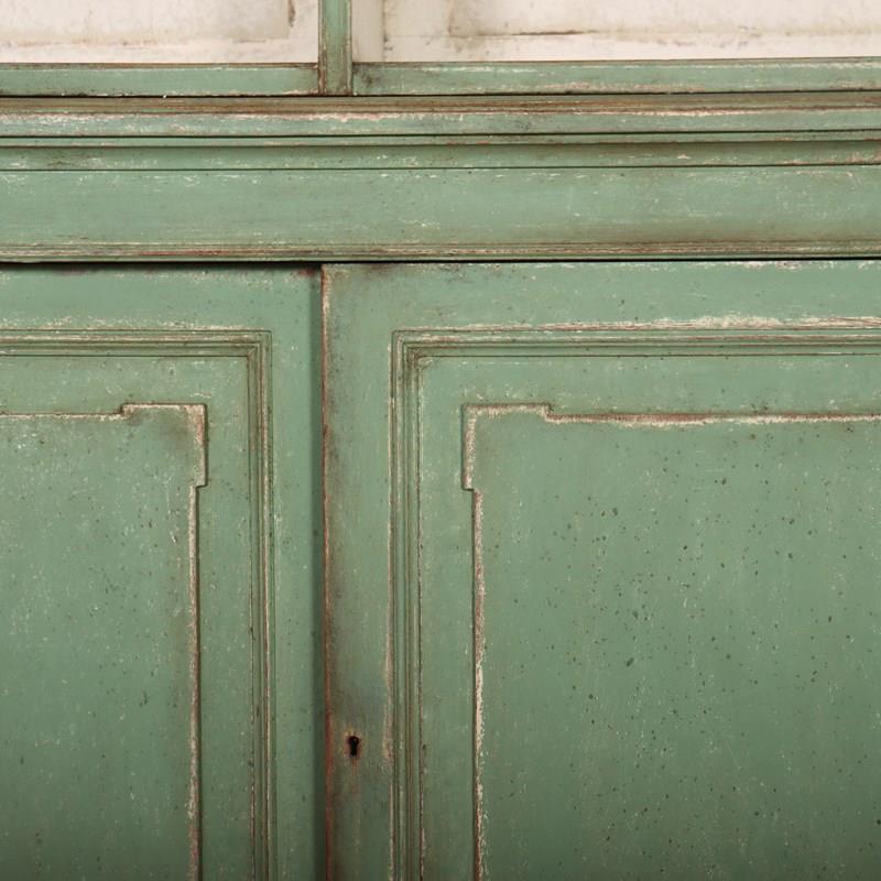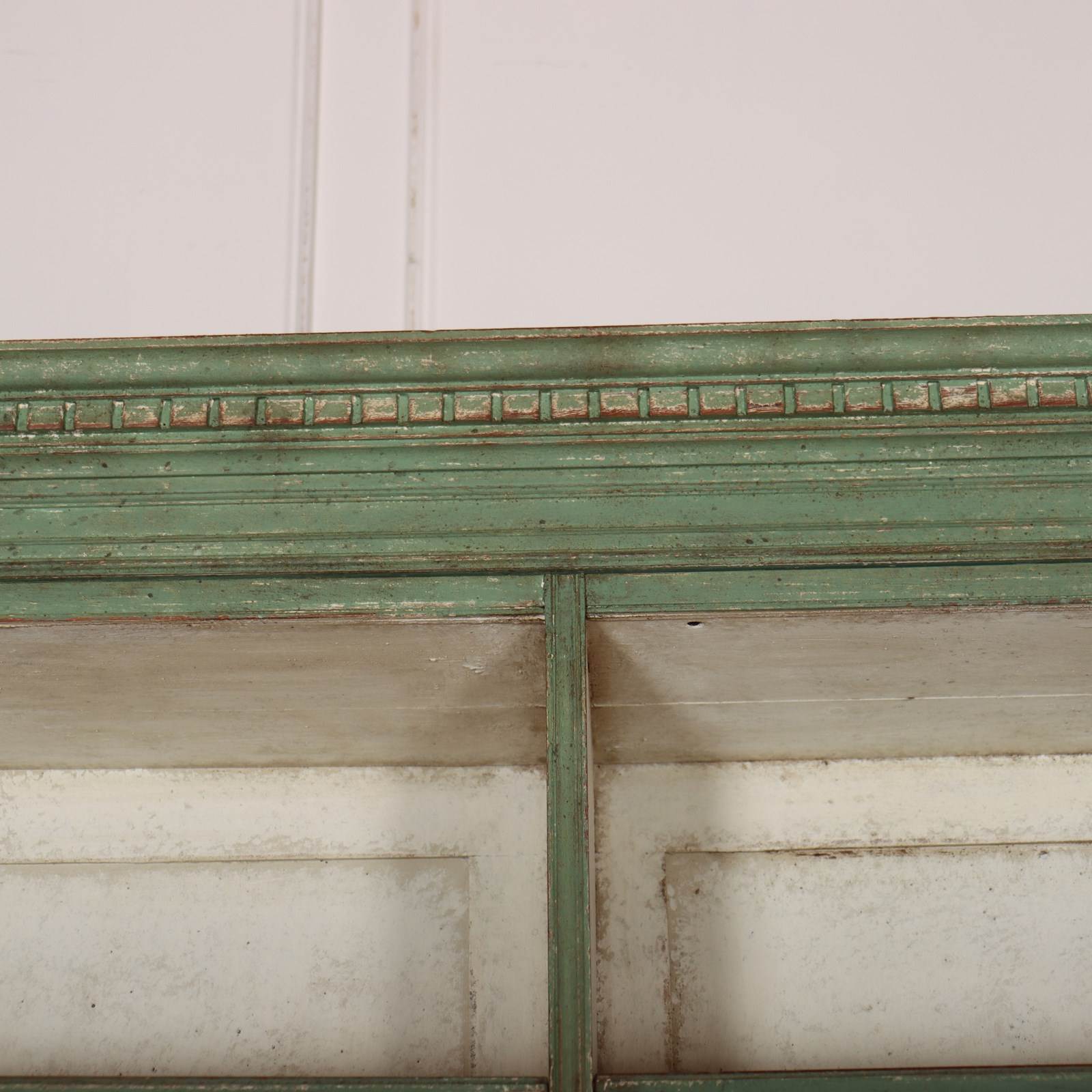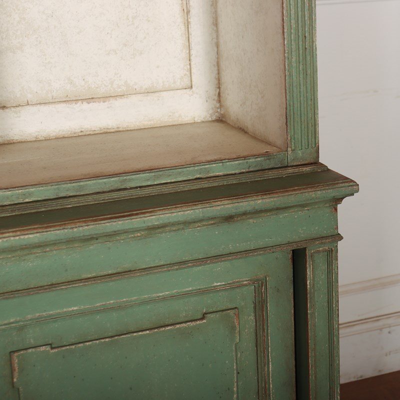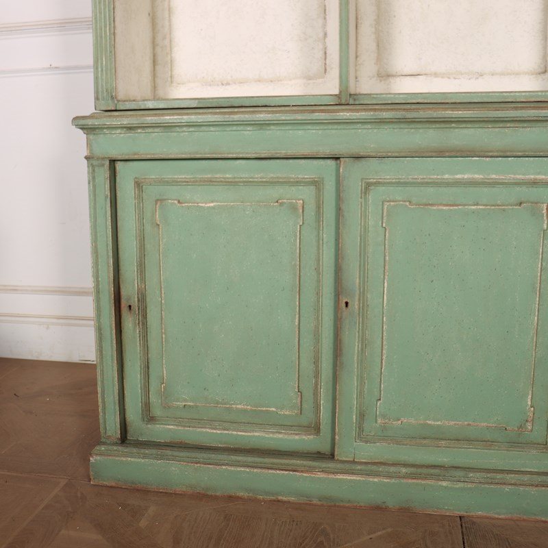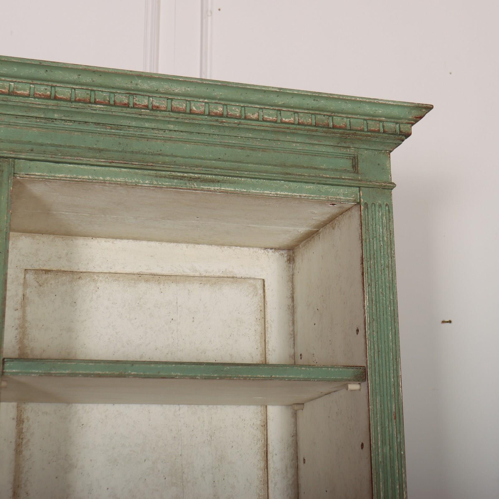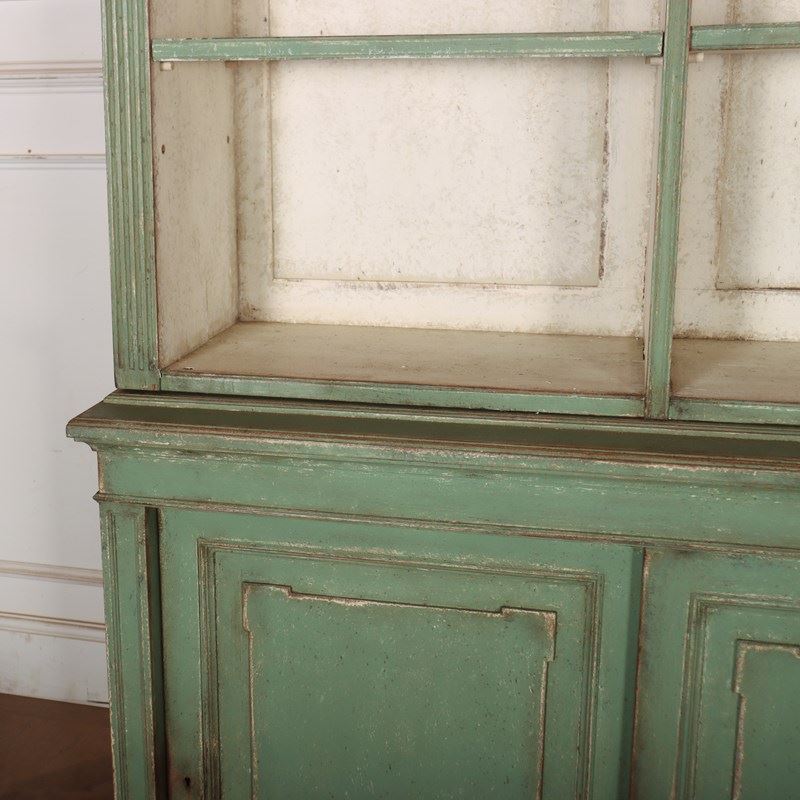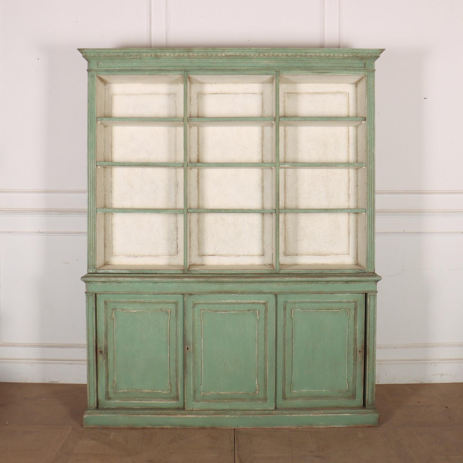 Very good 19th century English painted pine open bookcase with adjustable shelving and sliding doors. 1840.