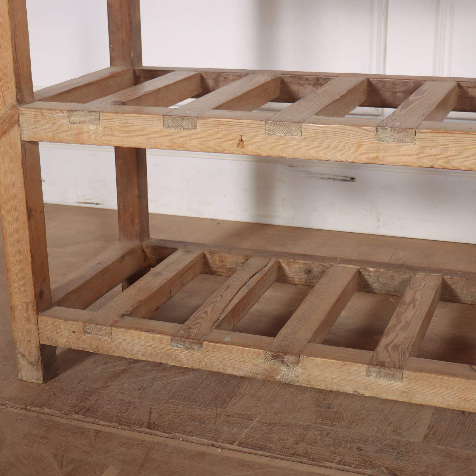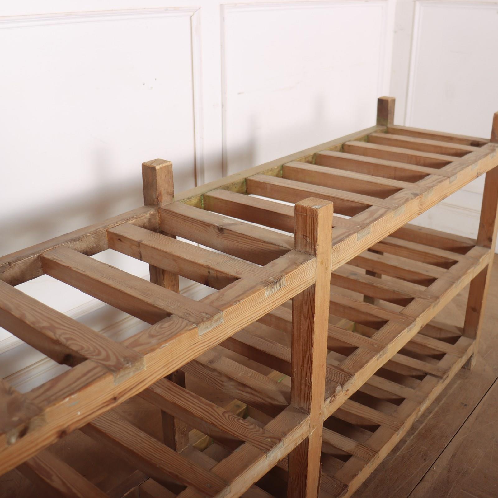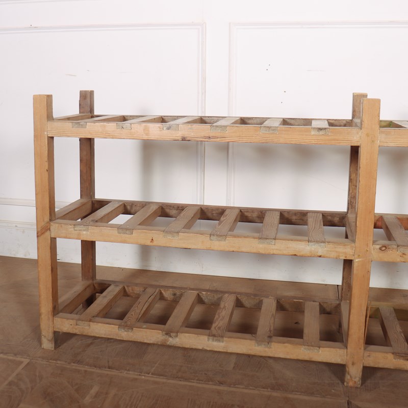 Interesting 19th C Scottish pine shoe rack with 25cm spacing between the tiers. 1890