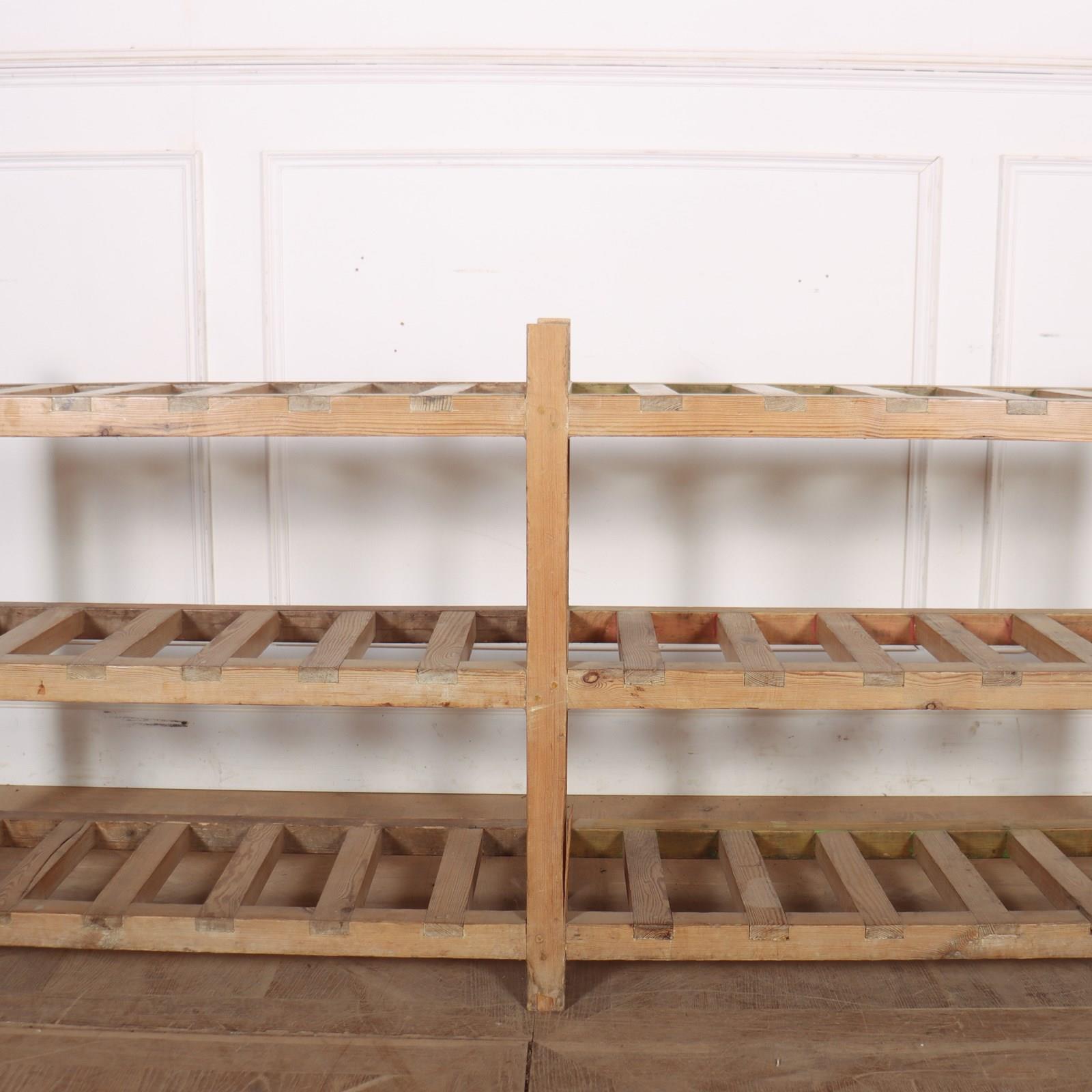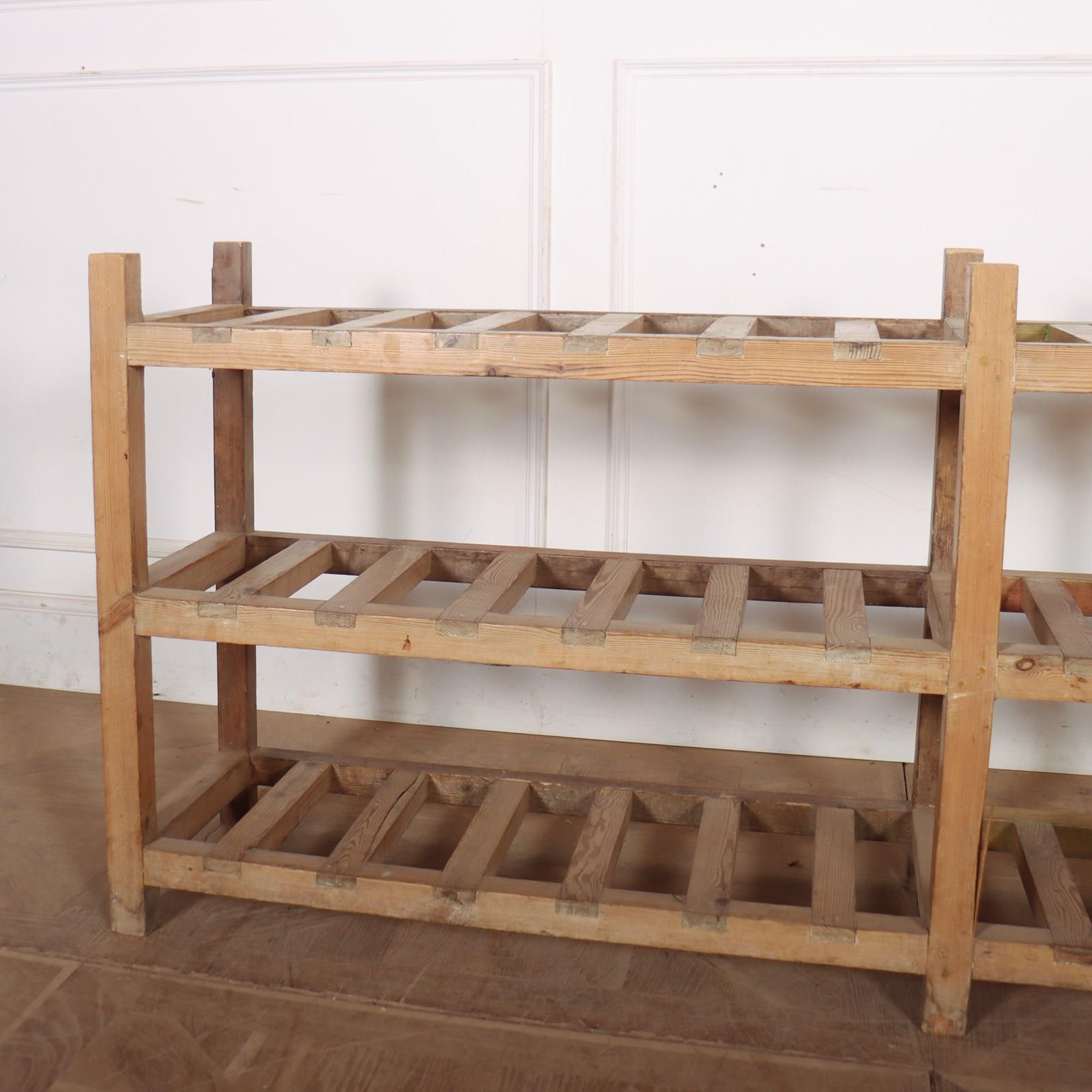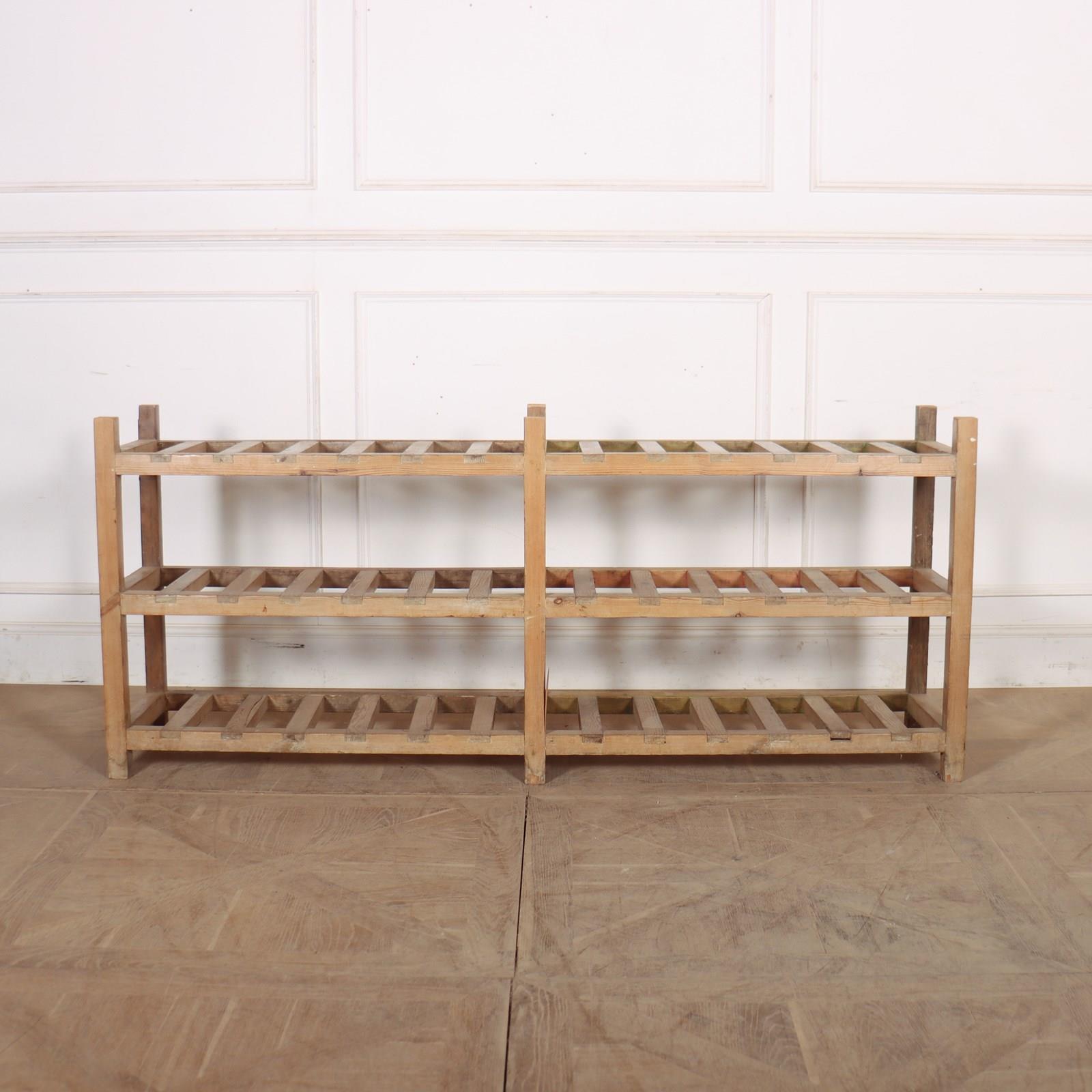 Interesting 19th C Scottish pine shoe rack with 25cm spacing between the tiers. 1890