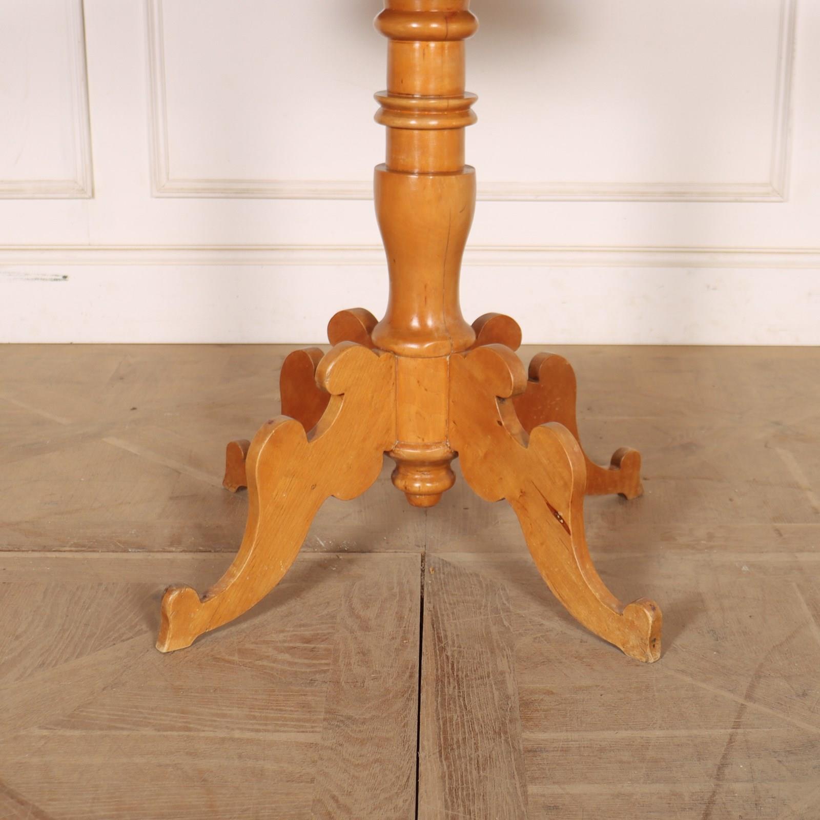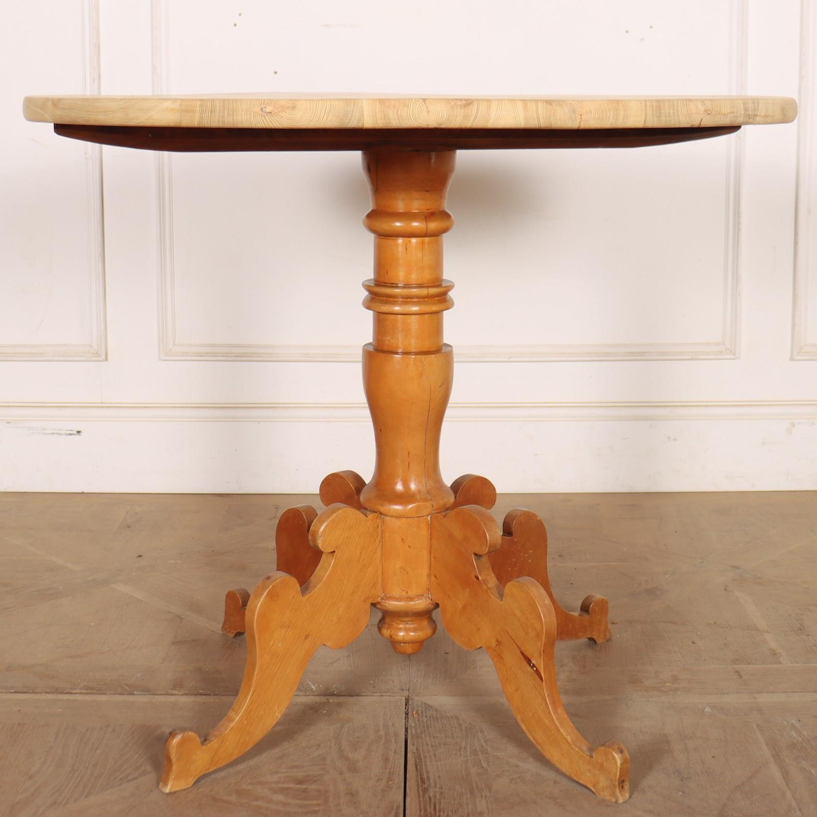 Early 19th century Swedish pine and beech lamp table with a good scrubbed top. 1840.