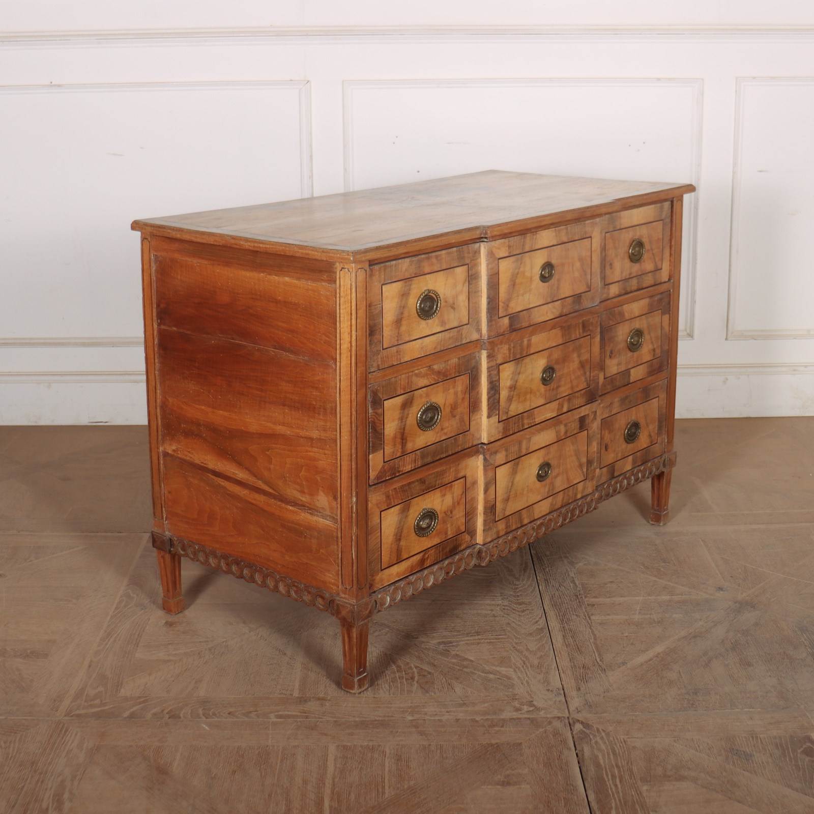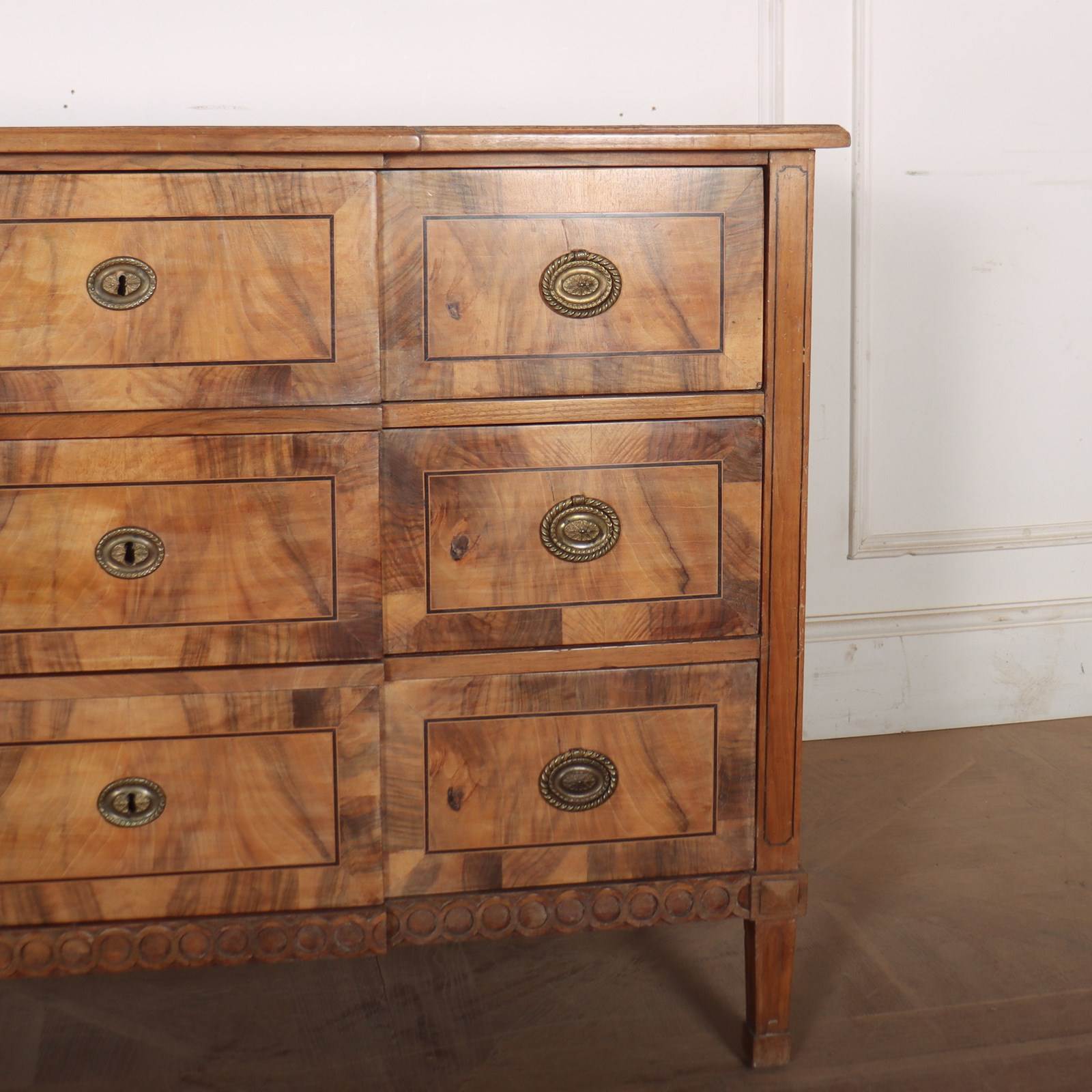 Wonderful Austrian 18th century pale walnut breakfront commode. 1790.