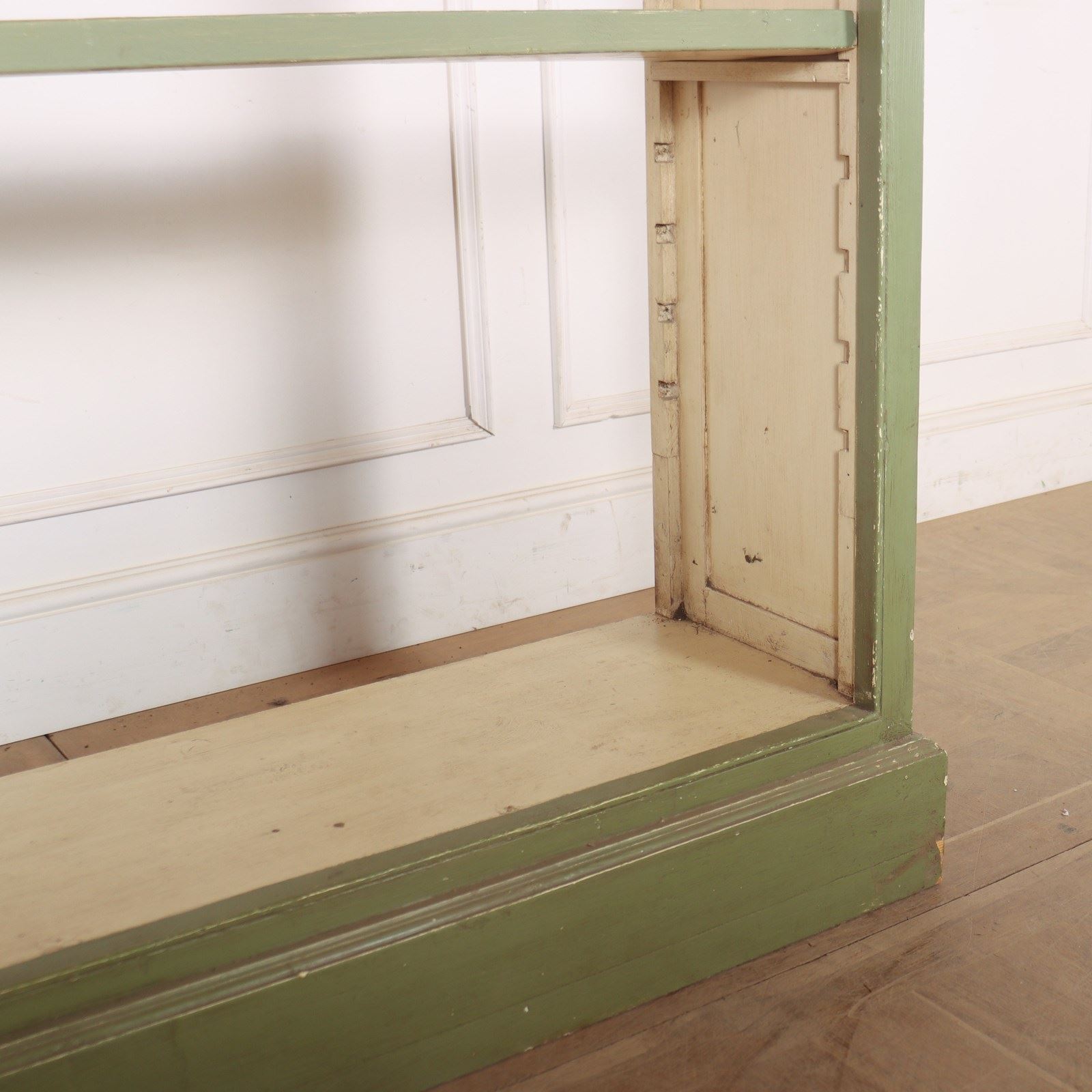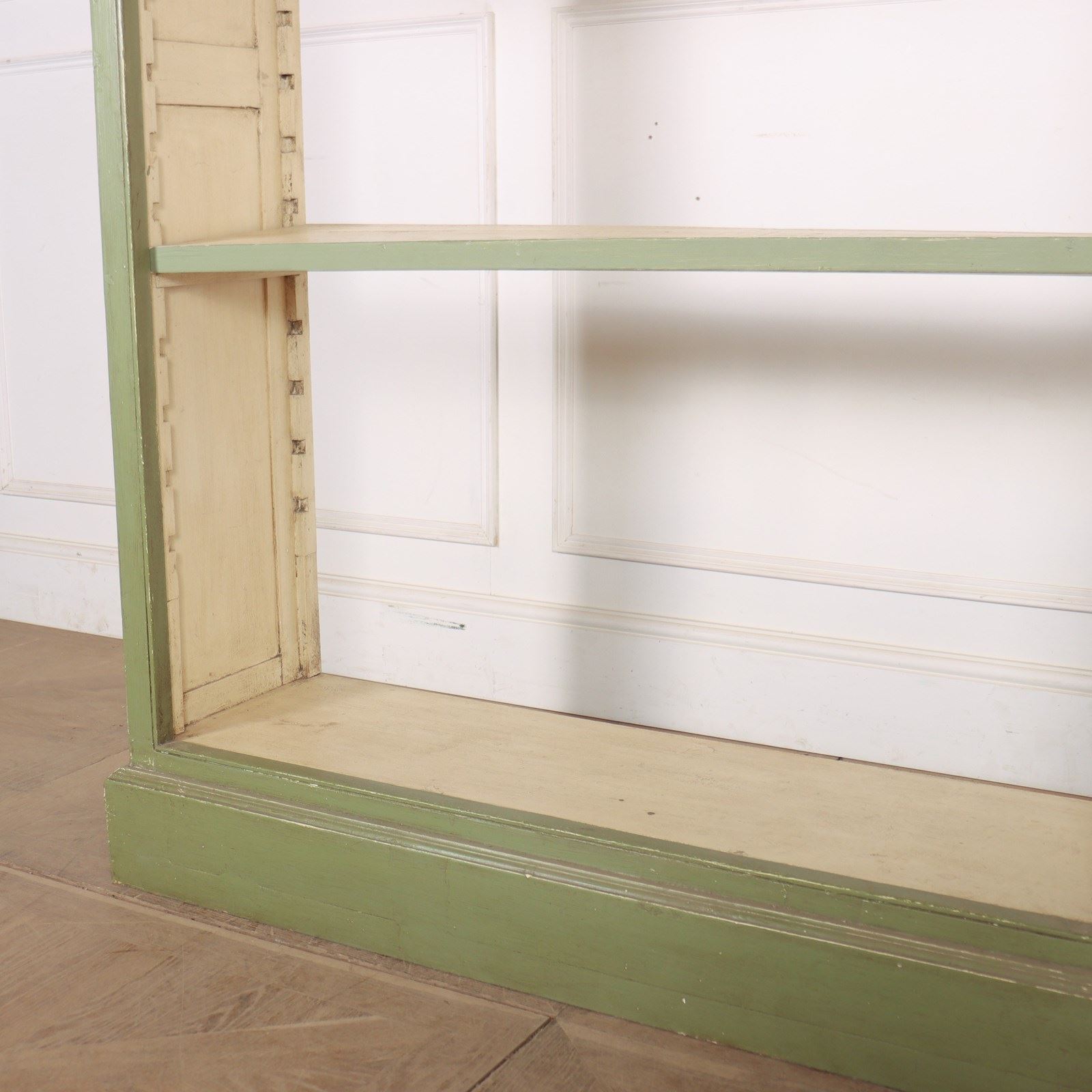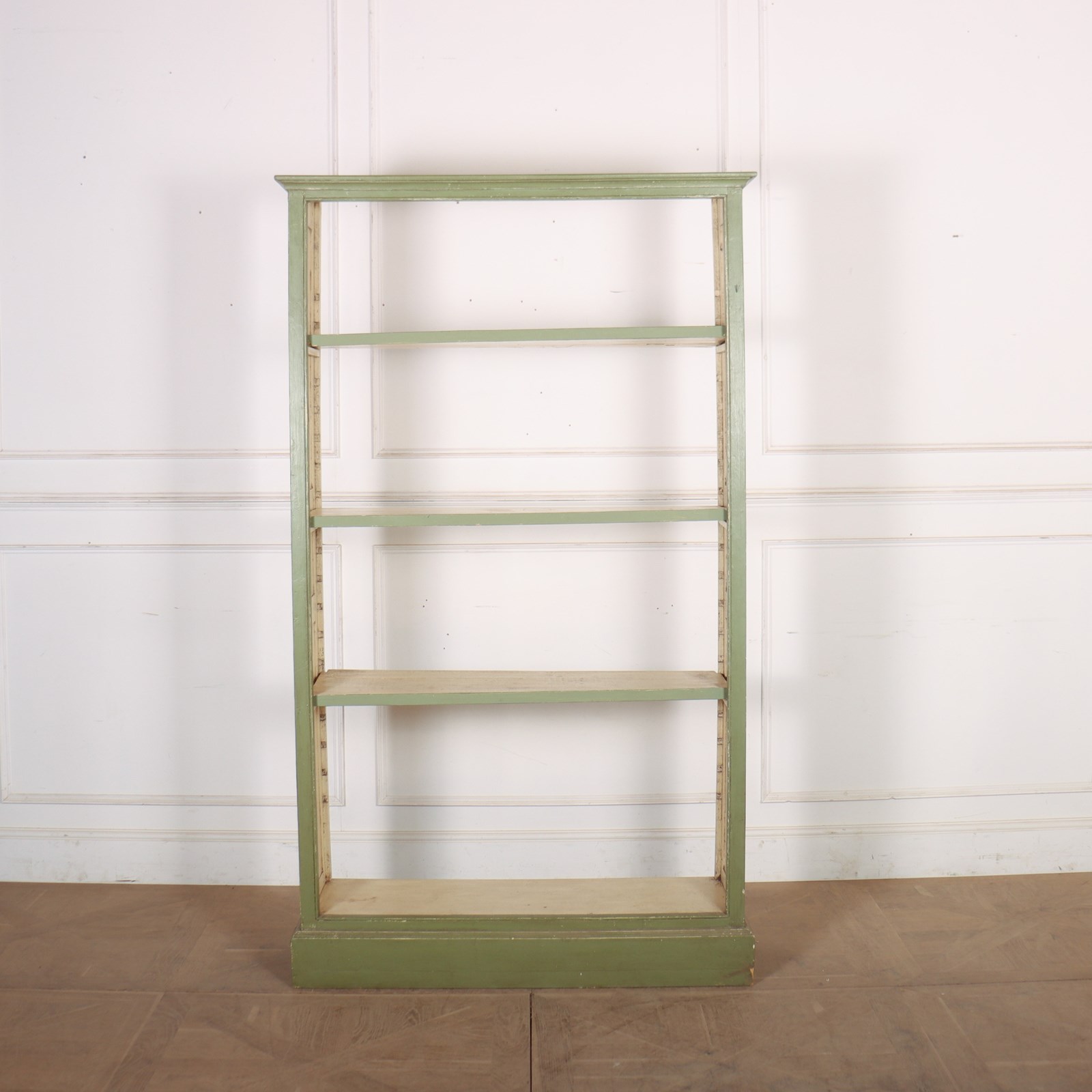 Custom made narrow painted open bookcase.