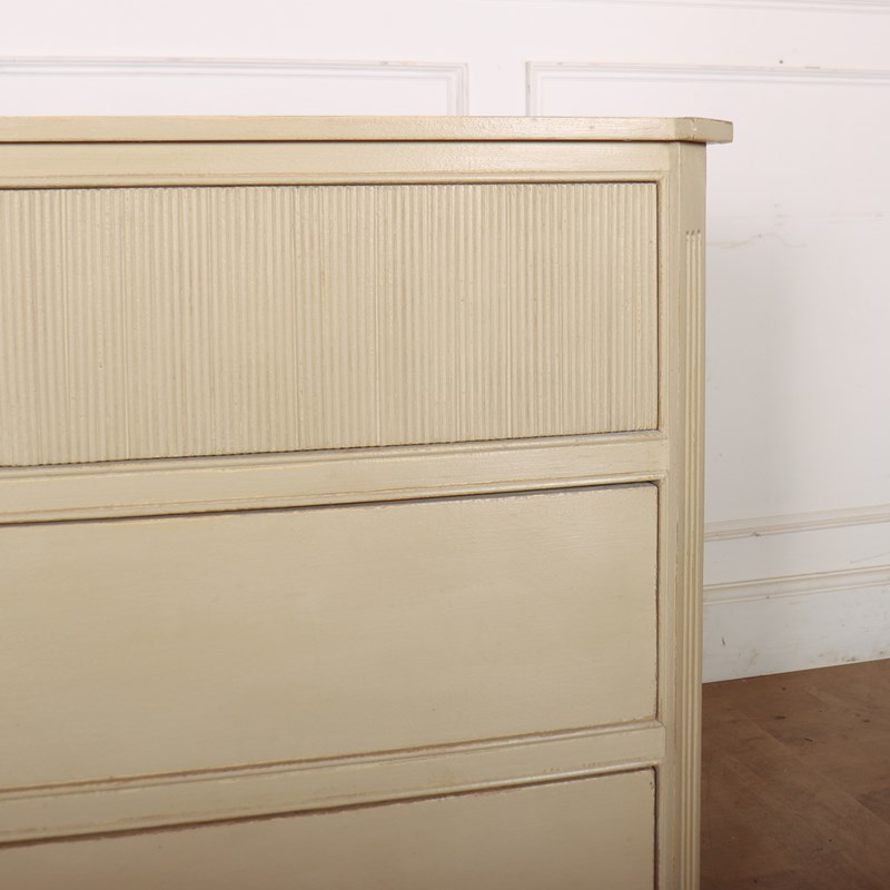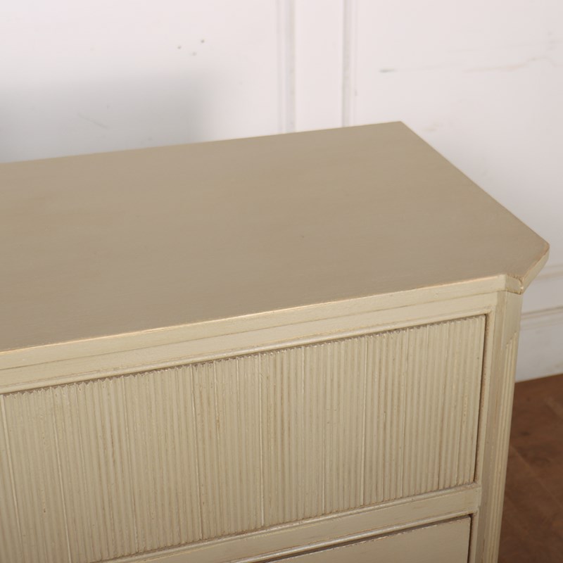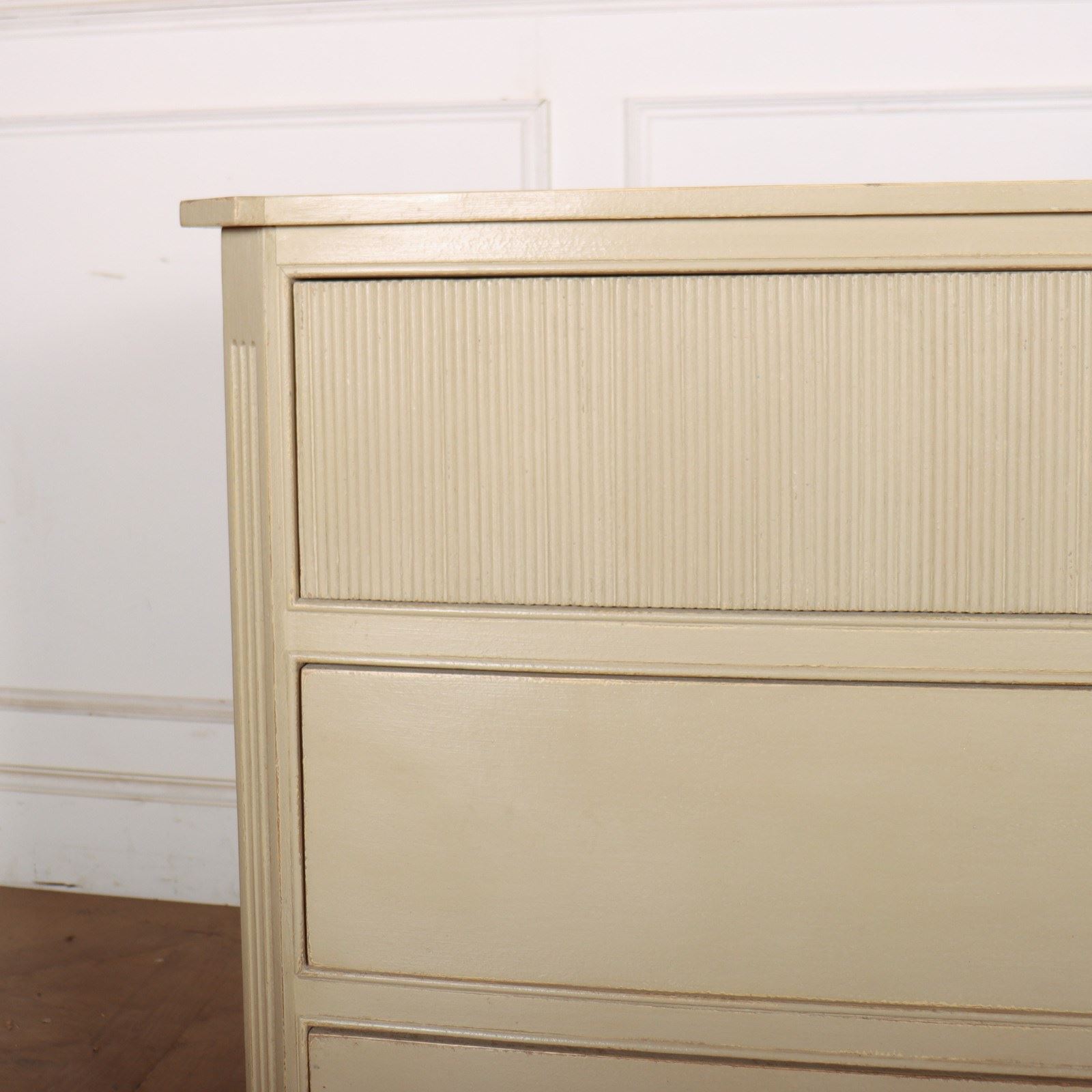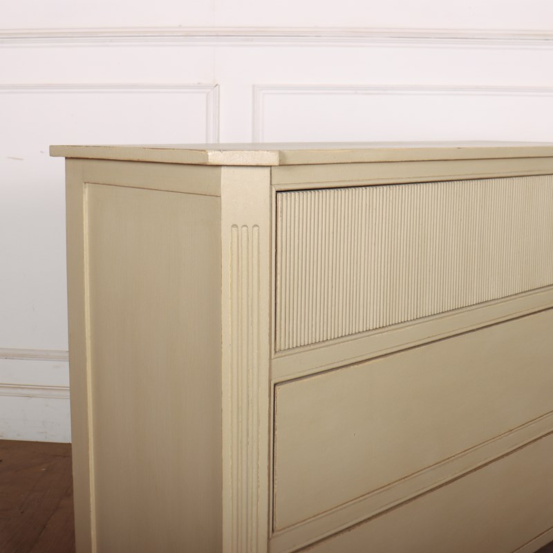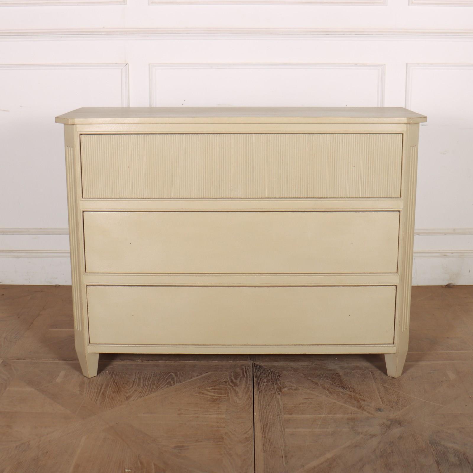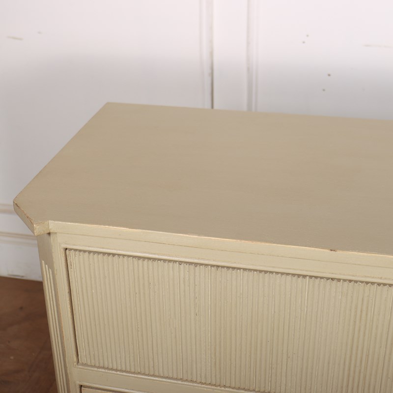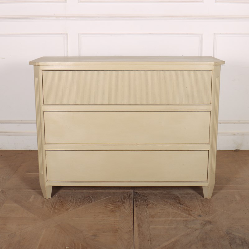 Bespoke Swedish style three drawer commode with a reeded top drawer and panelled sides.