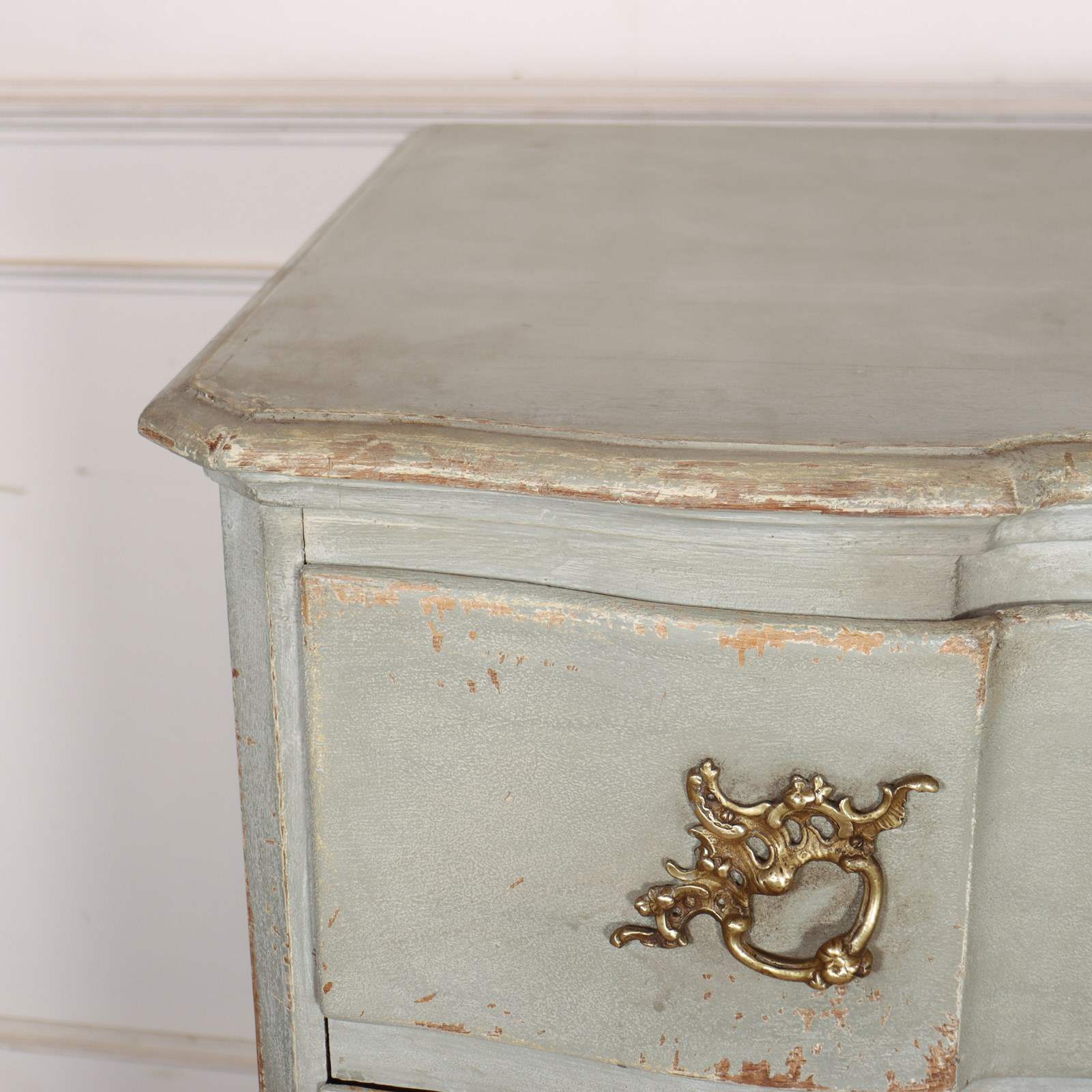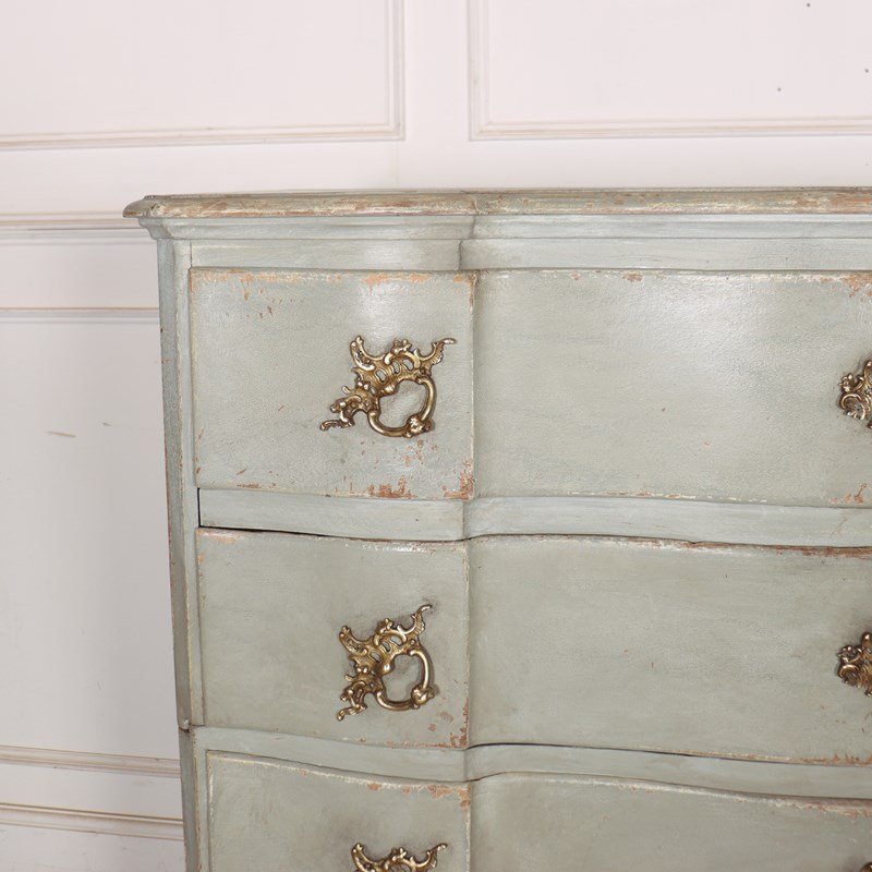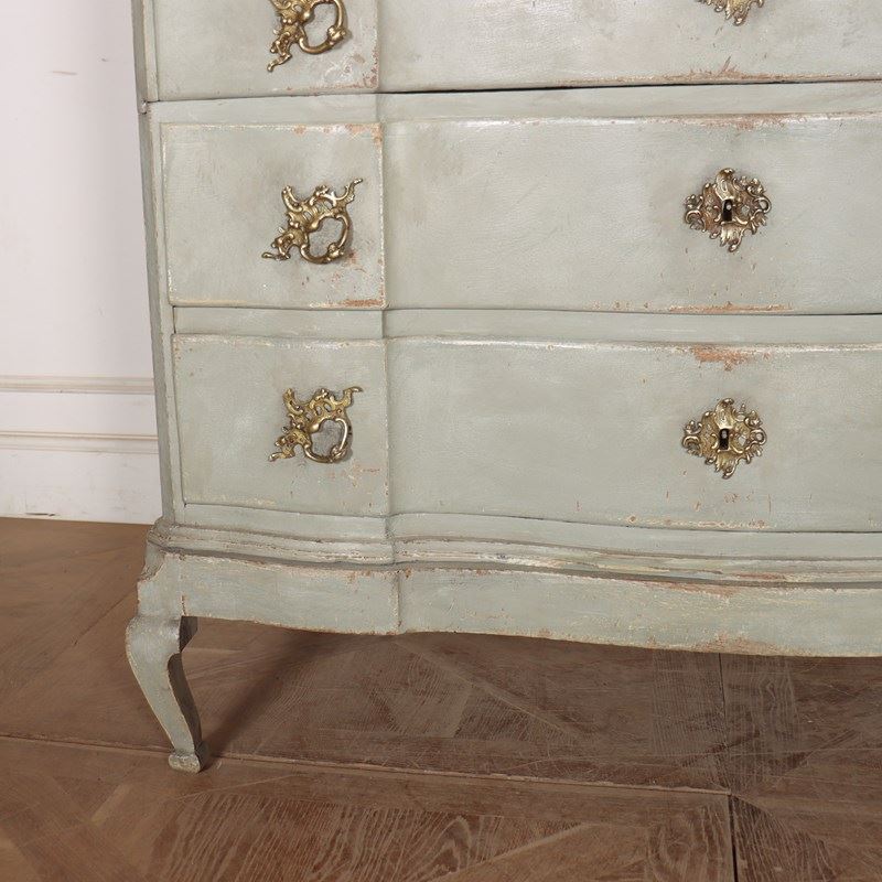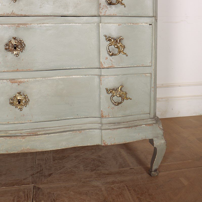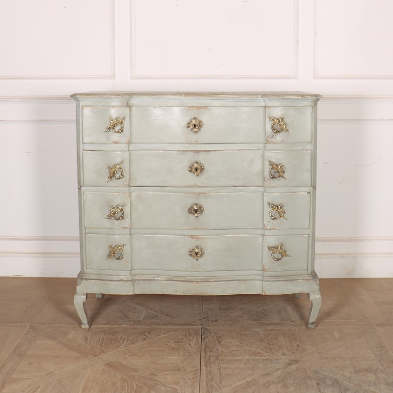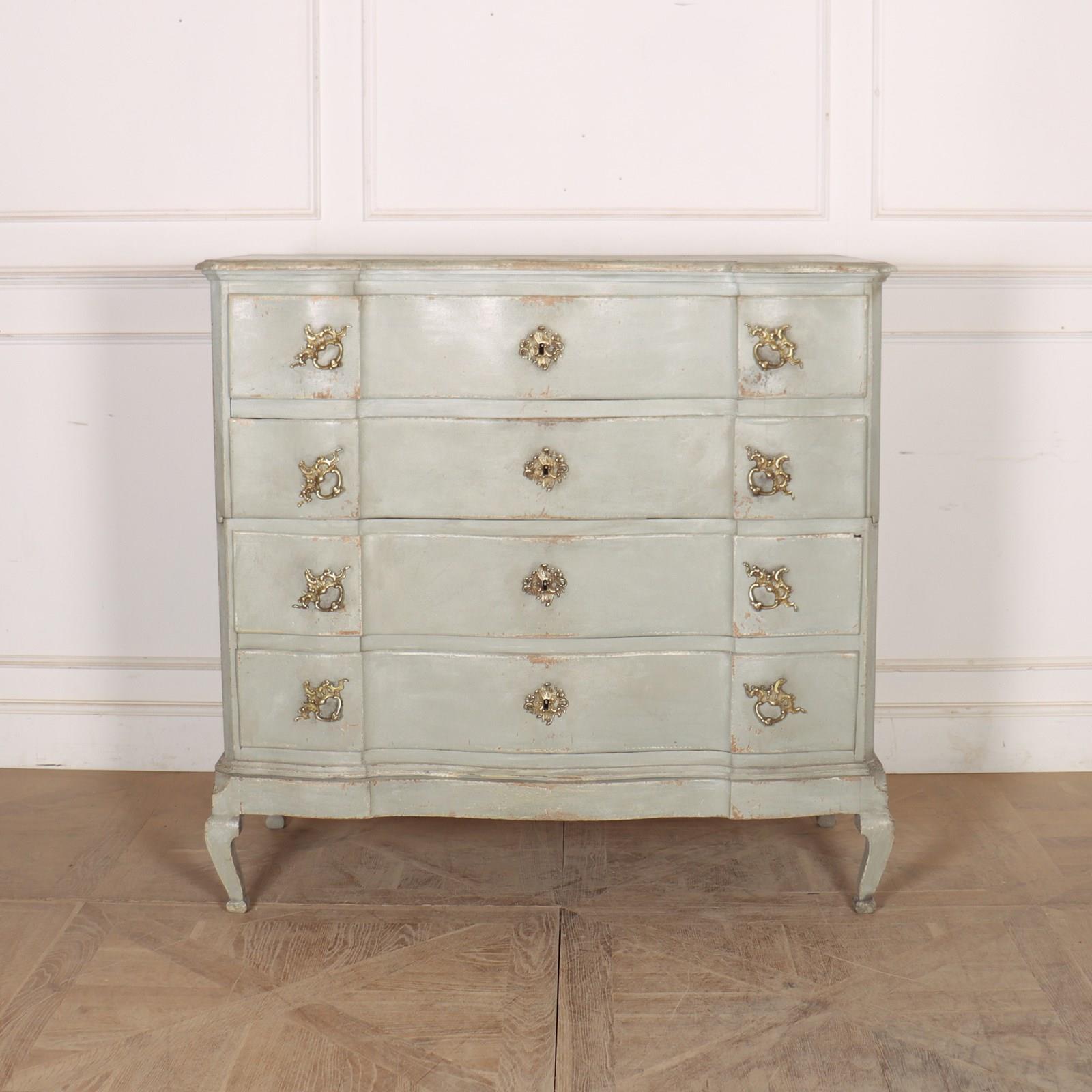 19th century Danish painted oak serpentine front four drawer commode. 1880.