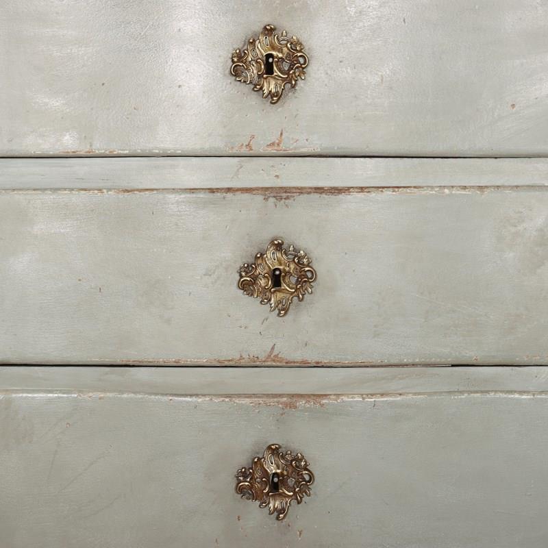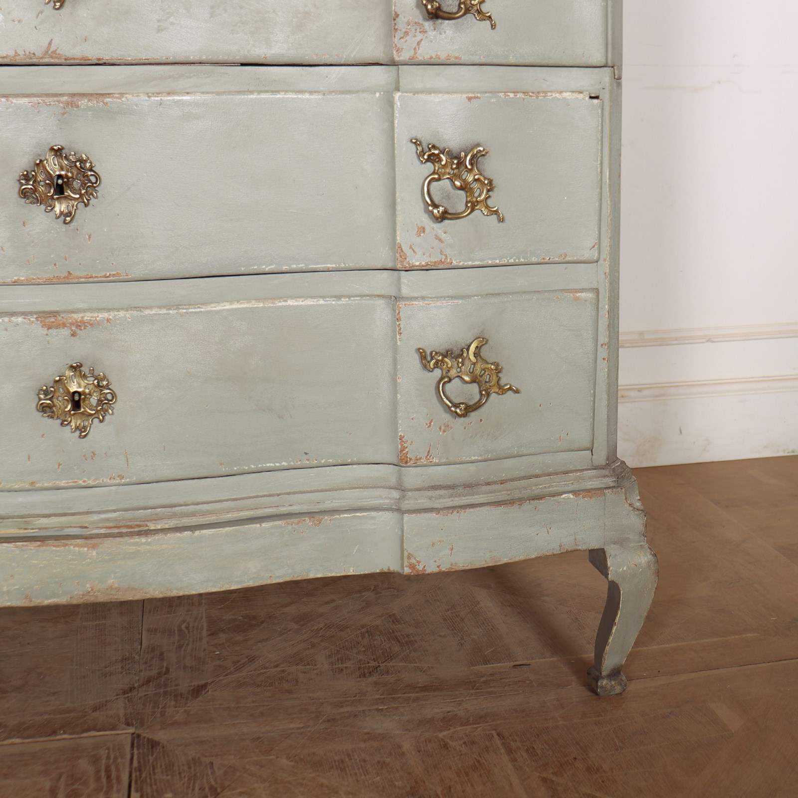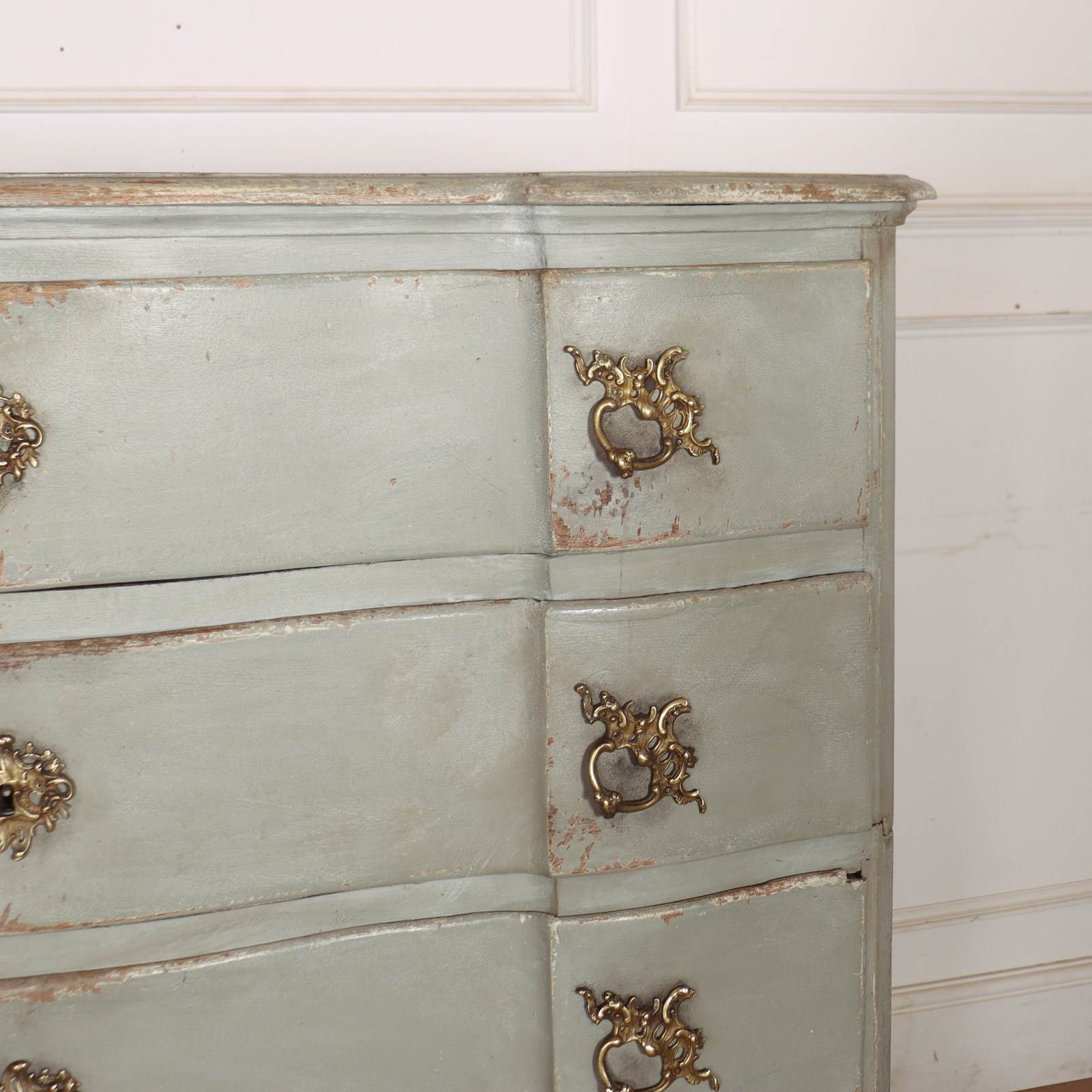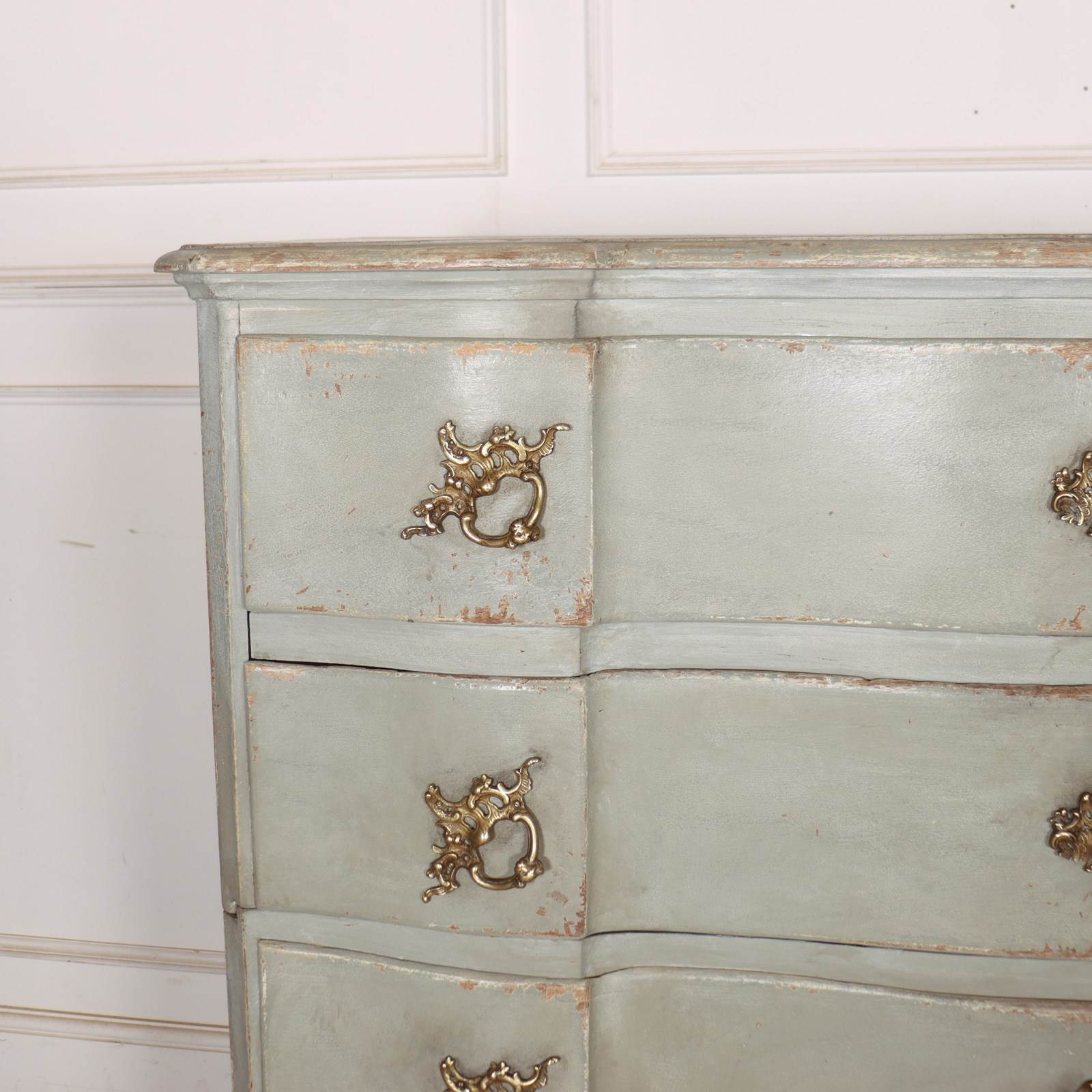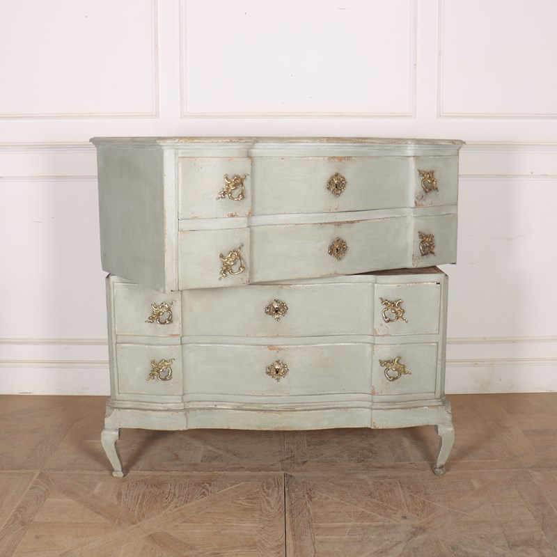 19th century Danish painted oak serpentine front four drawer commode. 1880.