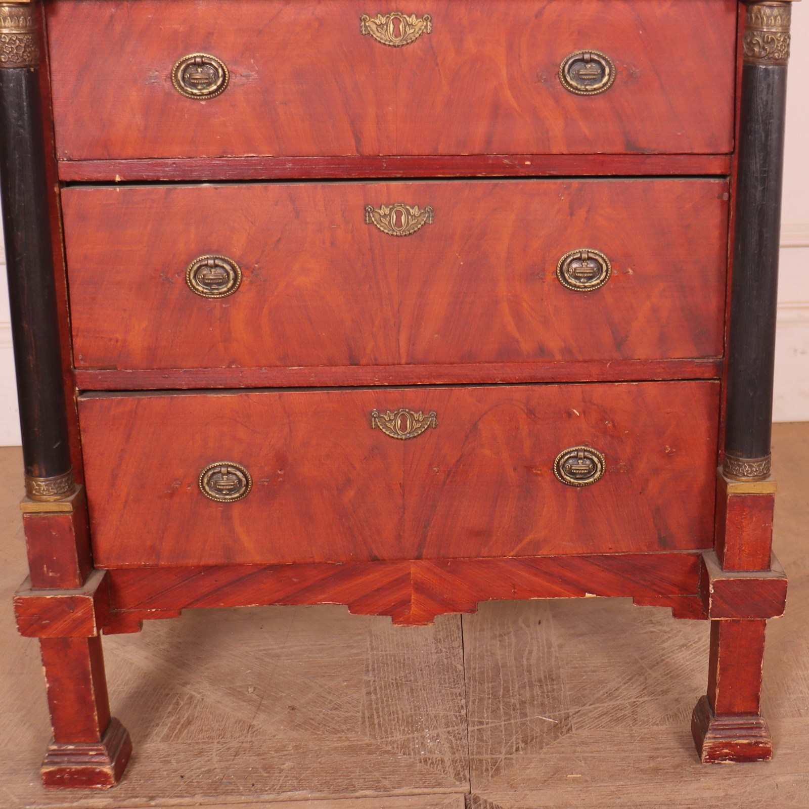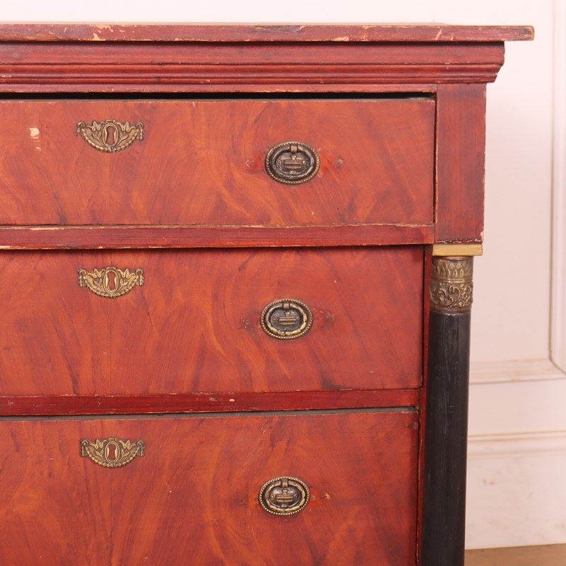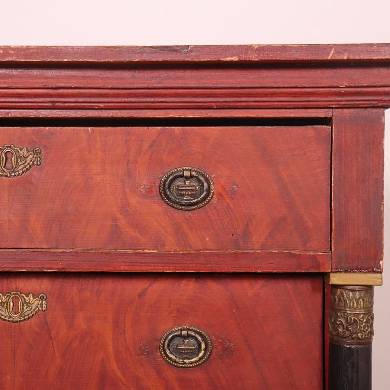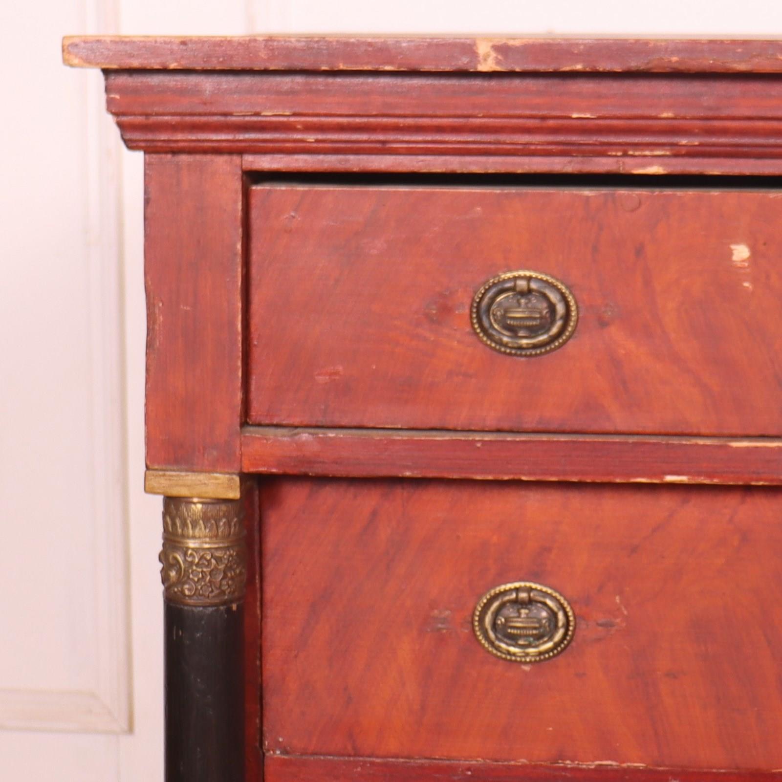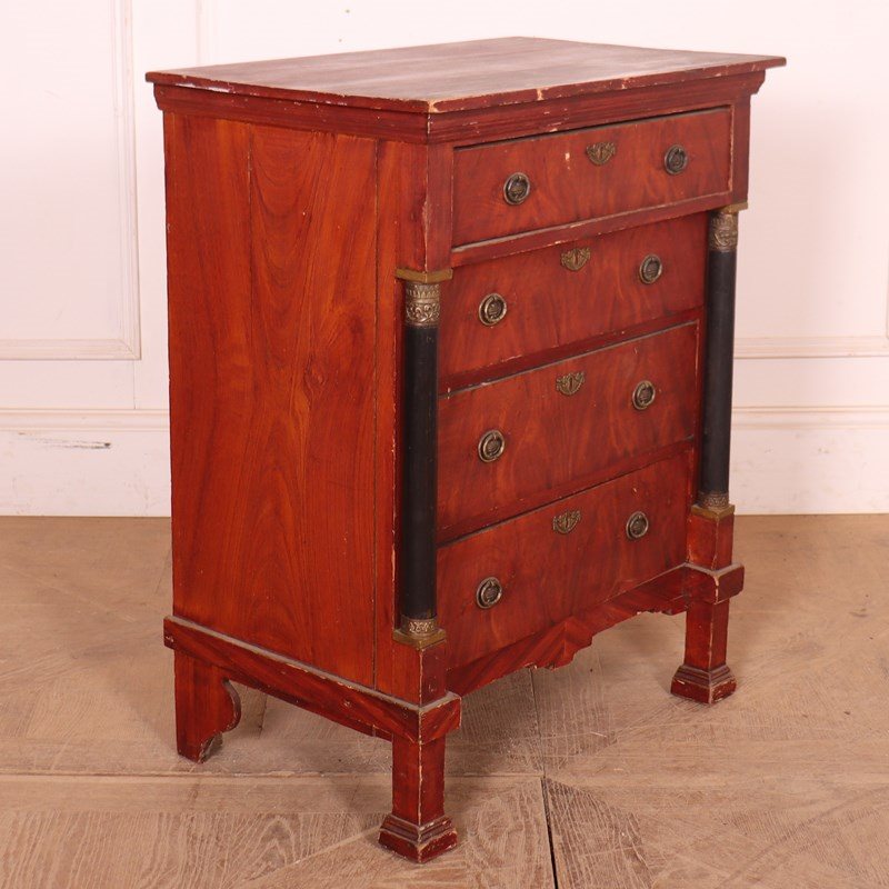 Small, early 19th C Dutch empire style 4 drawer pine commode. 1860