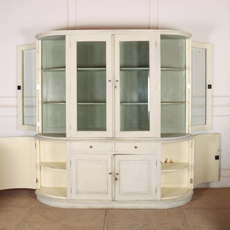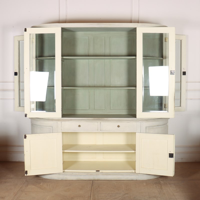 Late 19th century Dutch painted pine kitchen dresser with wonderful bowed ends. Very stylish and great storage. 1890.
