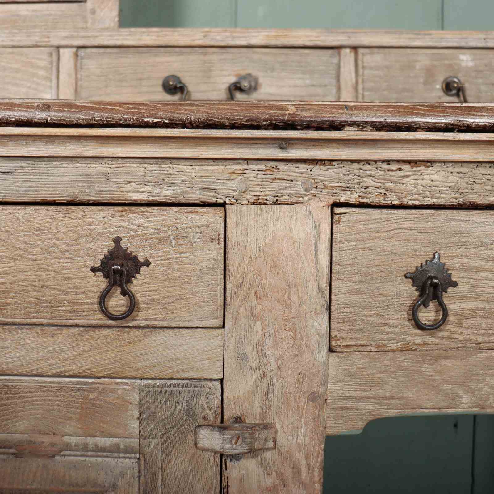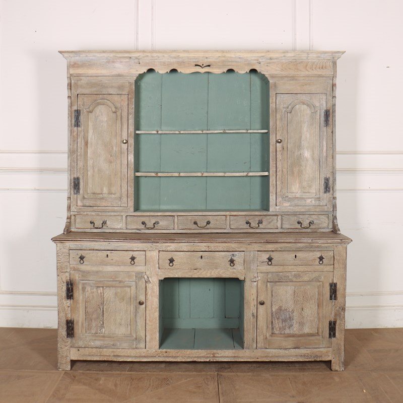 Late 18th century English bleached oak dresser with a wonderful aged oak finish.