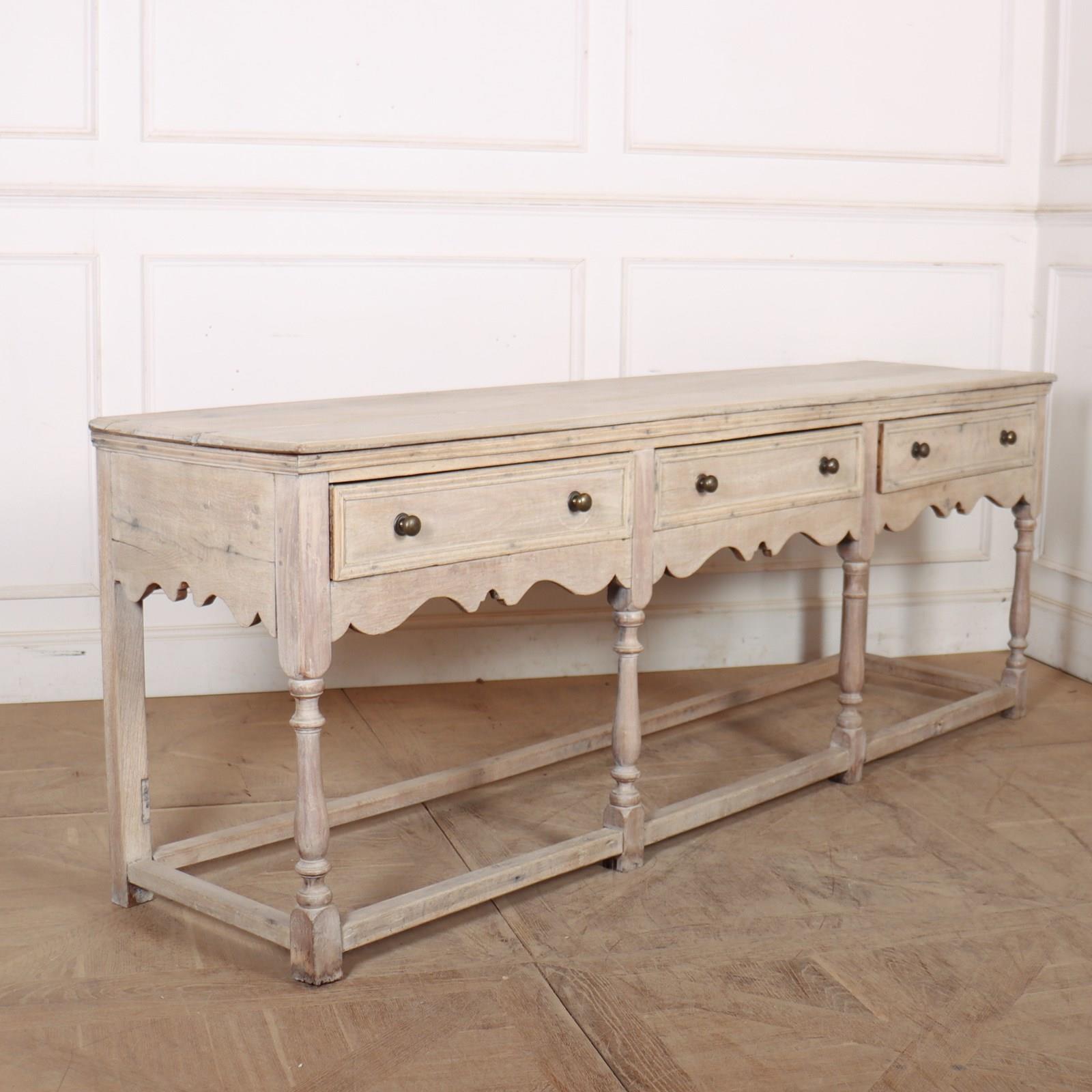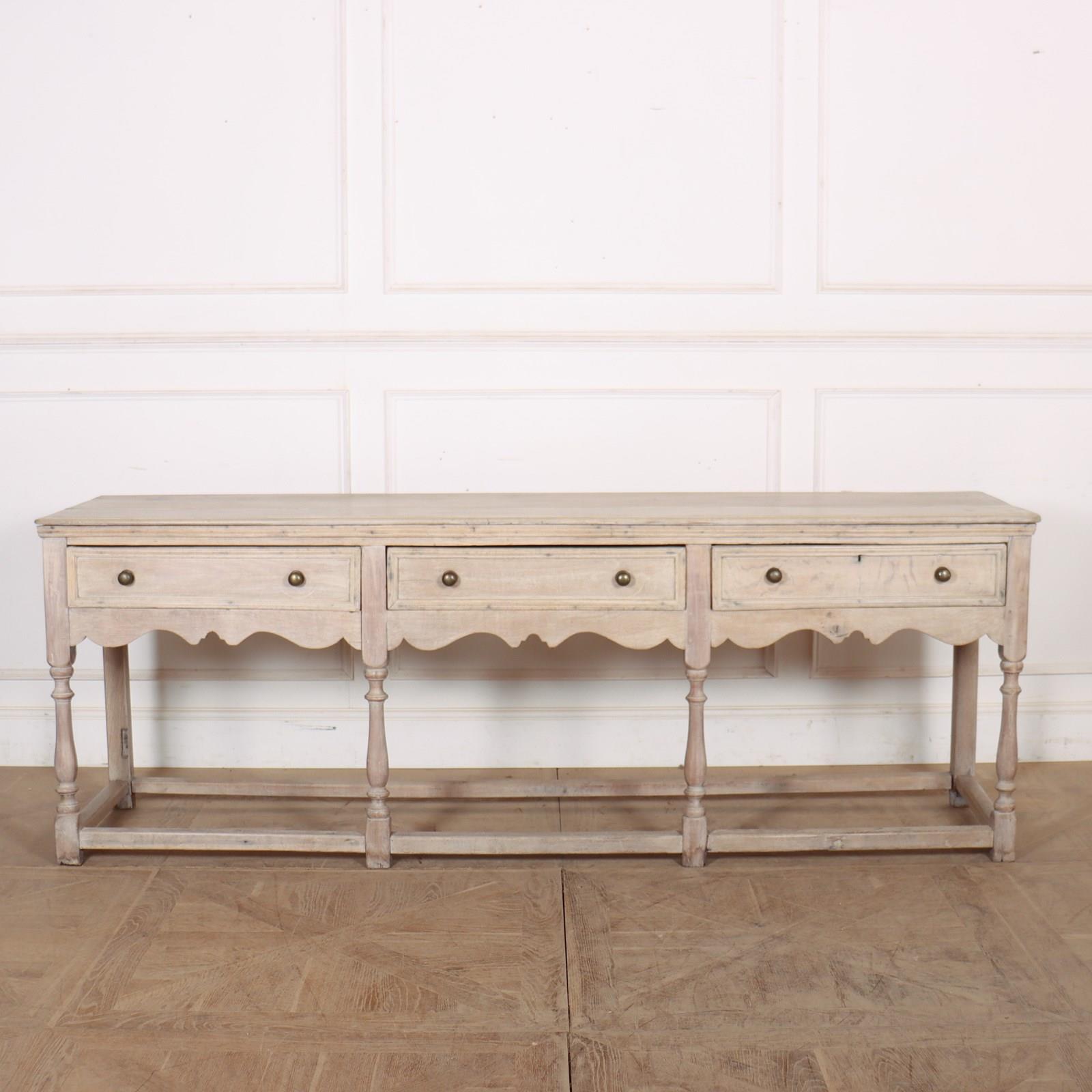 Long 18th Century English bleached oak 3 drawer dresser base 1760