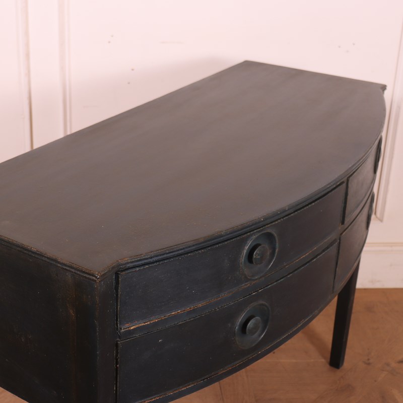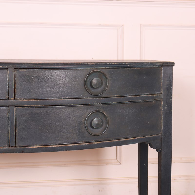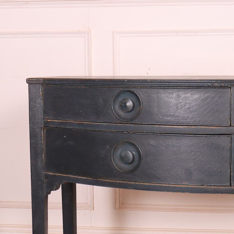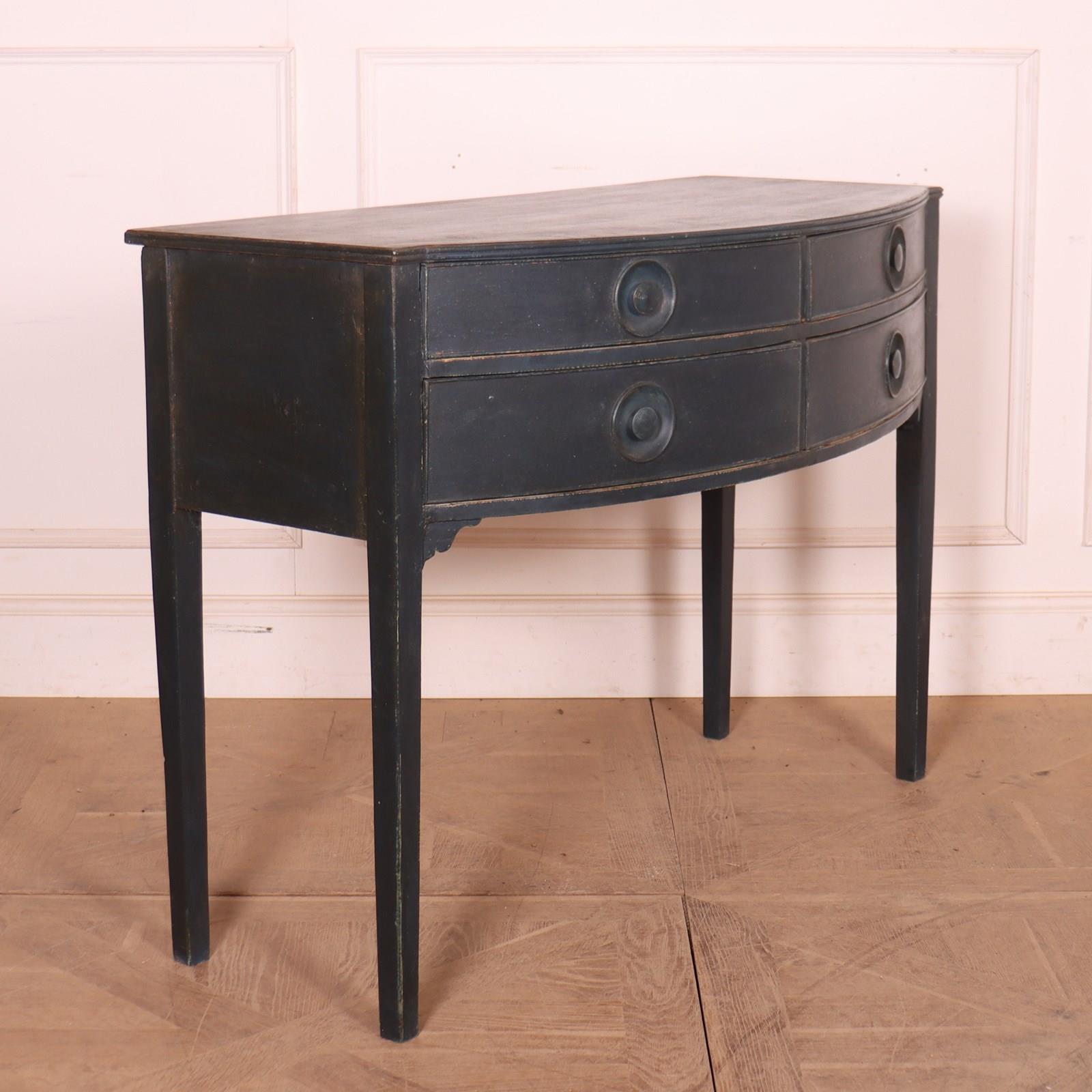 Unusual 19th C English 2 drawer bowfronted oak and pine lamp table. 1830