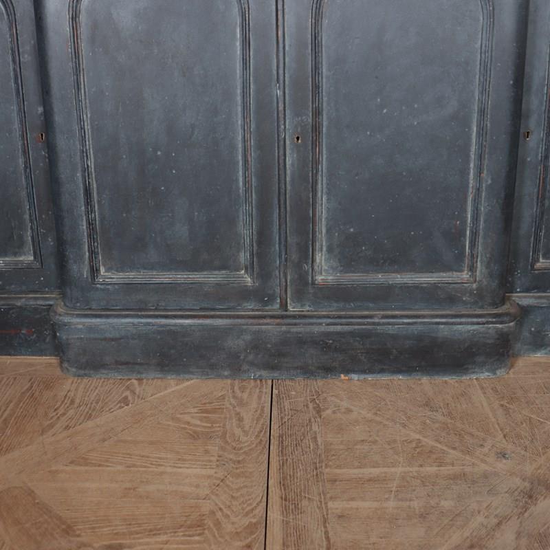 19th century English breakfront painted oak dresser base with four arched doors. 1850.