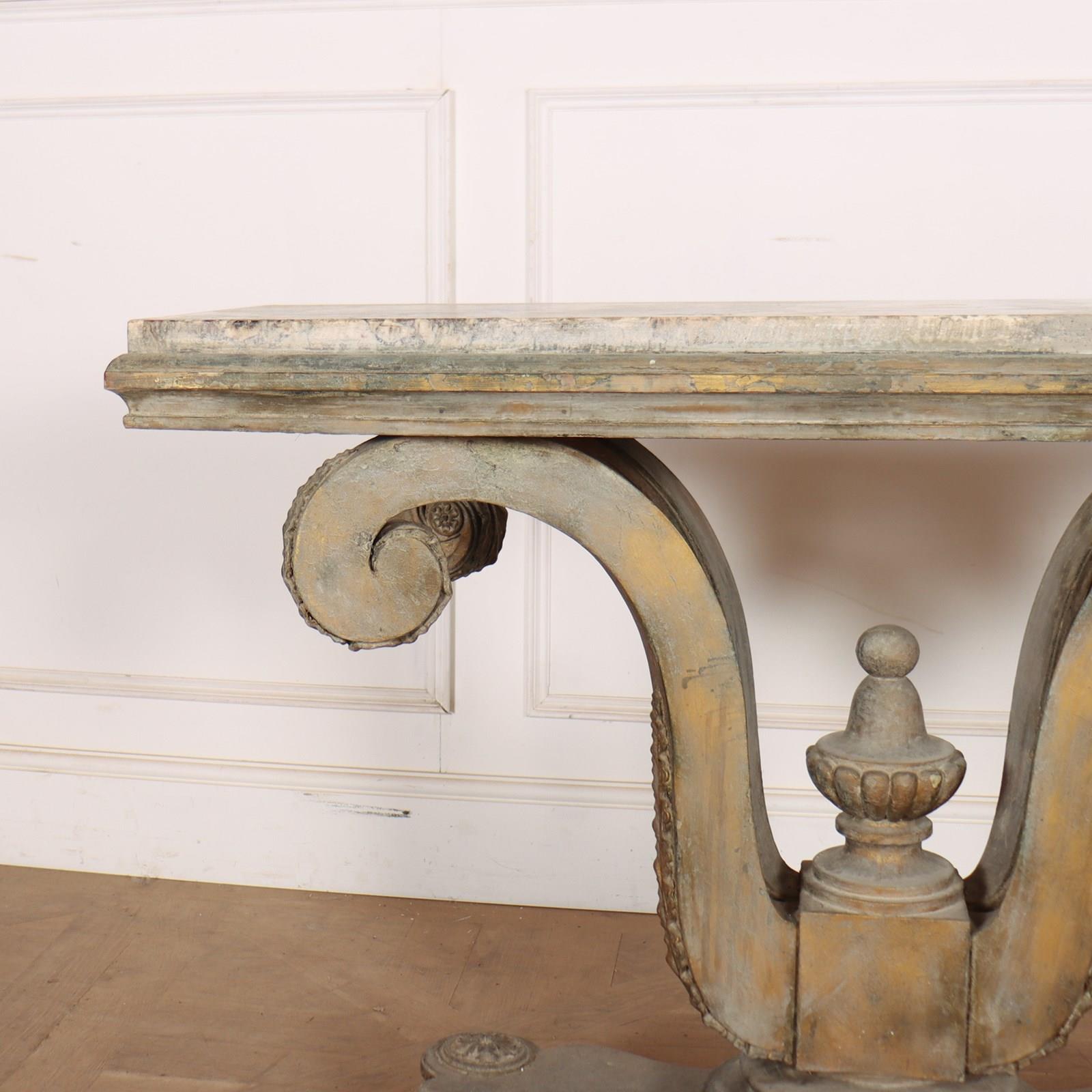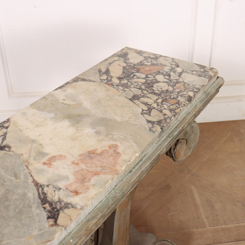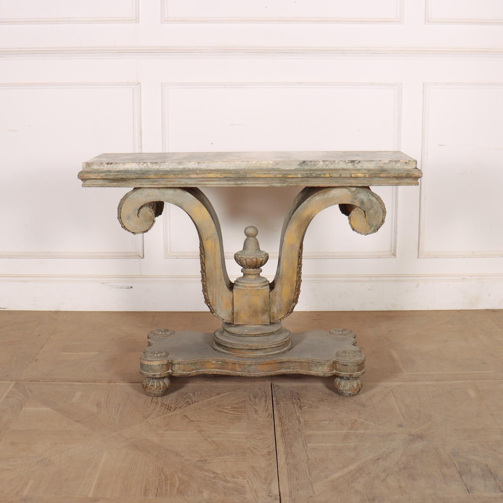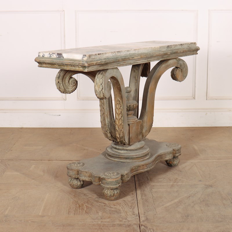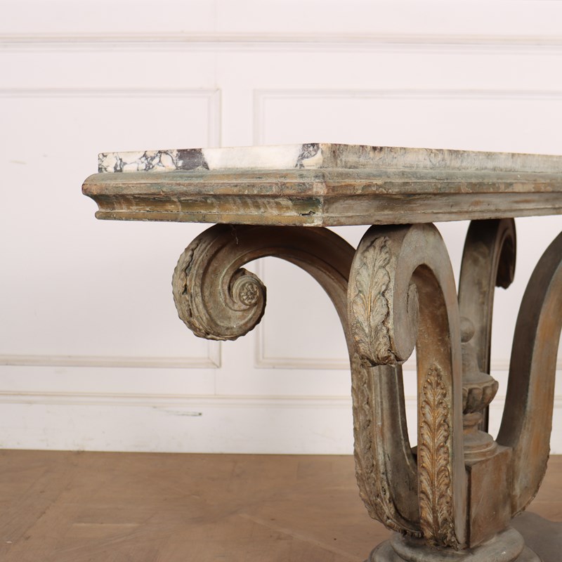 Wonderful early 19th century English carved wood console table with an interesting marble top. 1840.